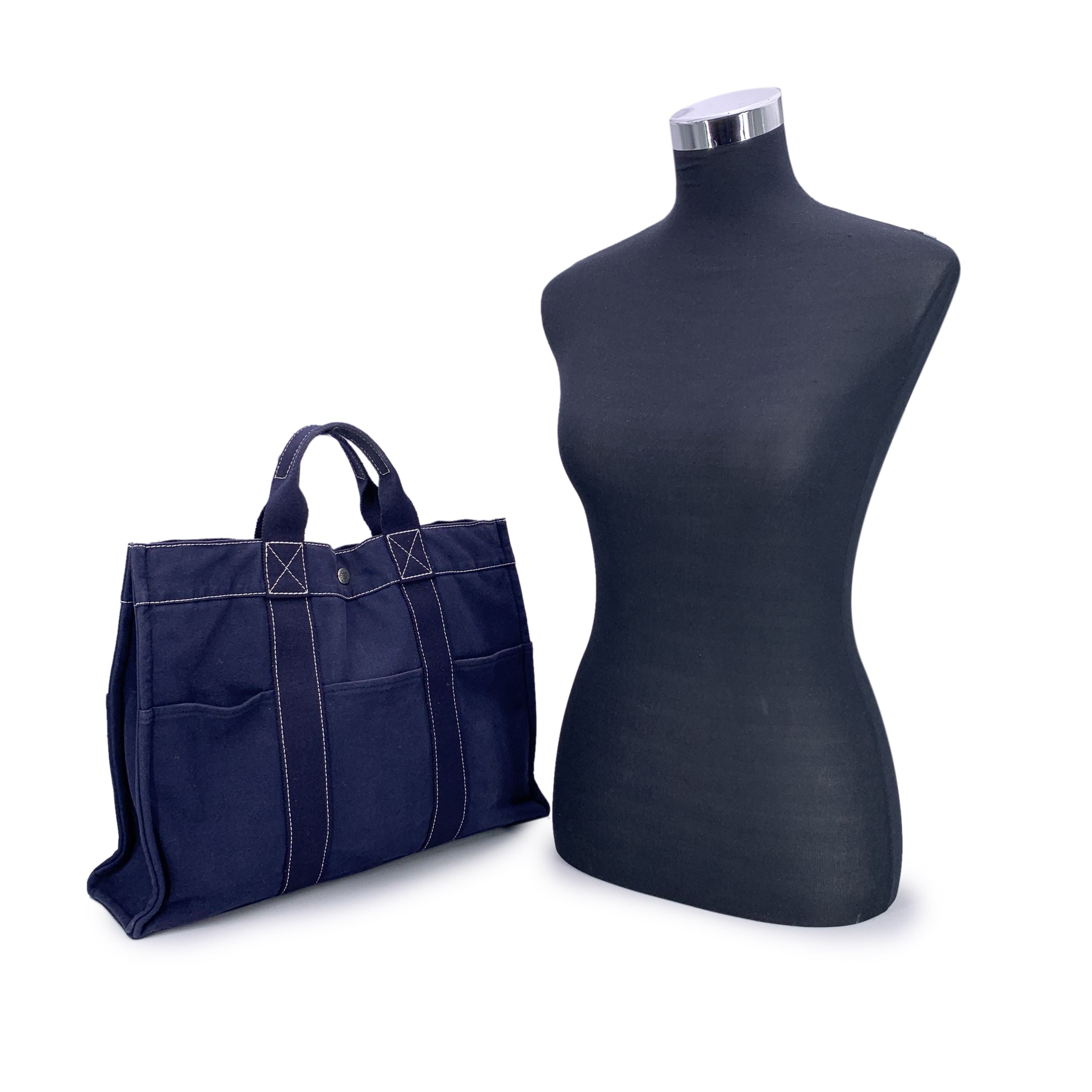 Hermès Paris Vintage Fourre Tout Mm - A Timeless Everyday Classic Step Into The Charm Of Effortless Parisian Style With This Vintage Hermès Fourre Tout Mm Tote, a Beloved Classic From The House Of Hermès. Crafted In France From 100% Cotton Canvas, This Tote Radiates Understated Sophistication In a Rich Blue Hue, Accented By White Contrast Stitching That Nods To Traditional Craftsmanship. The Fourre Tout Mm - Meaning "Carry-all" In French - Lives Up To Its Name With a Clever, Utilitarian Design: Three Pockets On The Front And Three On The Back, Offering Practical Organization With a Touch Of Vintage Flair. Side Snap Buttons Allow For Expansion, Making It As Adaptable As It Is Stylish. Its Durable Canvas Handles Make It a Go-to For Daily Errands Or Leisurely Weekends, While The Open Top With a Central Snap Closure Ensures Quick Access Without Sacrificing Structure. Inside, You'll Find a Canvas-lined Interior Complete With a Zip Pocket Featuring a Leather Zipper Pull, a Subtle Nod To Hermès' Fine Leather Heritage. An Authentic Hermès Tag Is Stitched Within - a Quiet Assurance Of Quality And Legacy. An Icon Of Casual Luxury, The Fourre Tout Mm Is Not Just a Tote - It's a Piece Of Hermès History, Perfectly Suited For The Modern Vintage Lover.