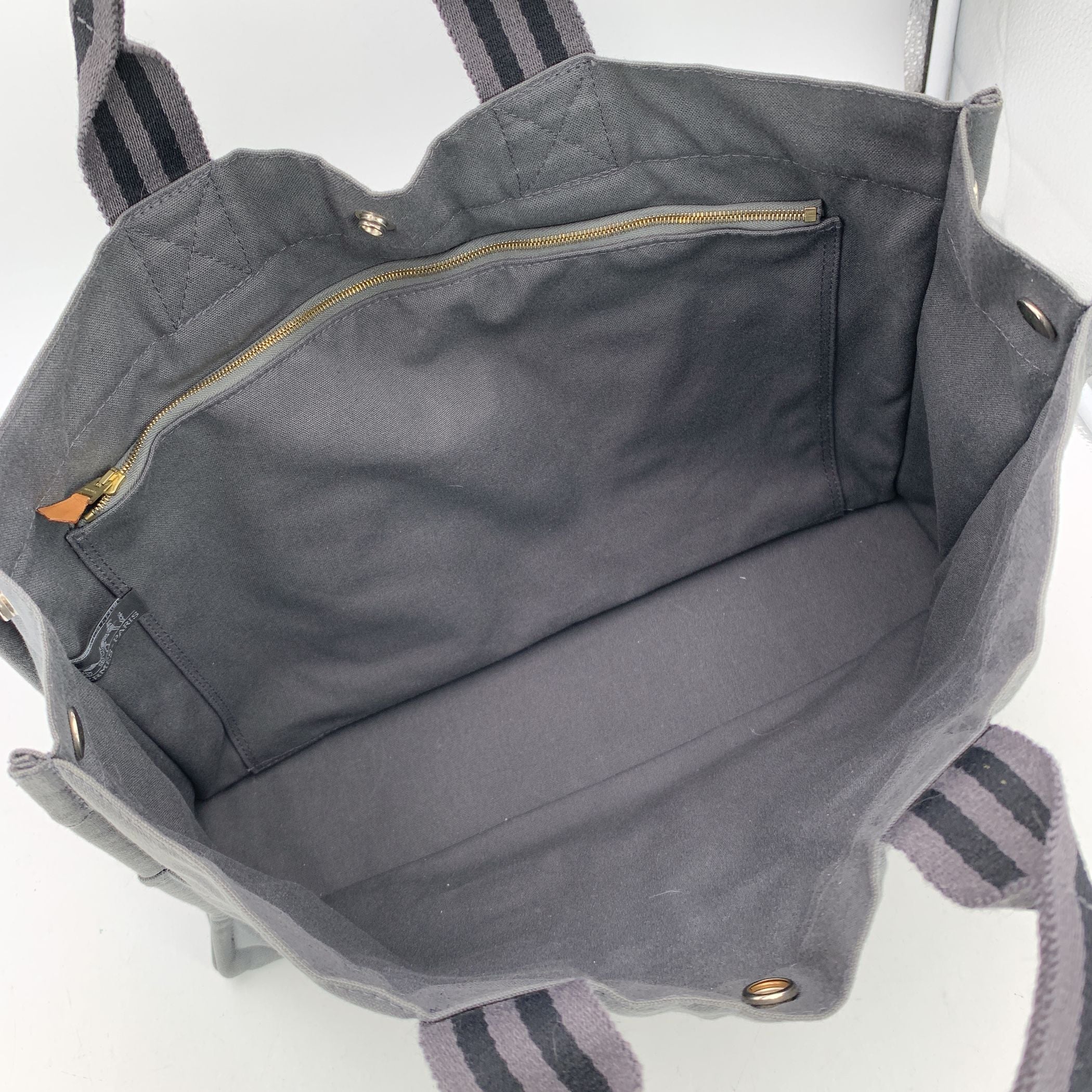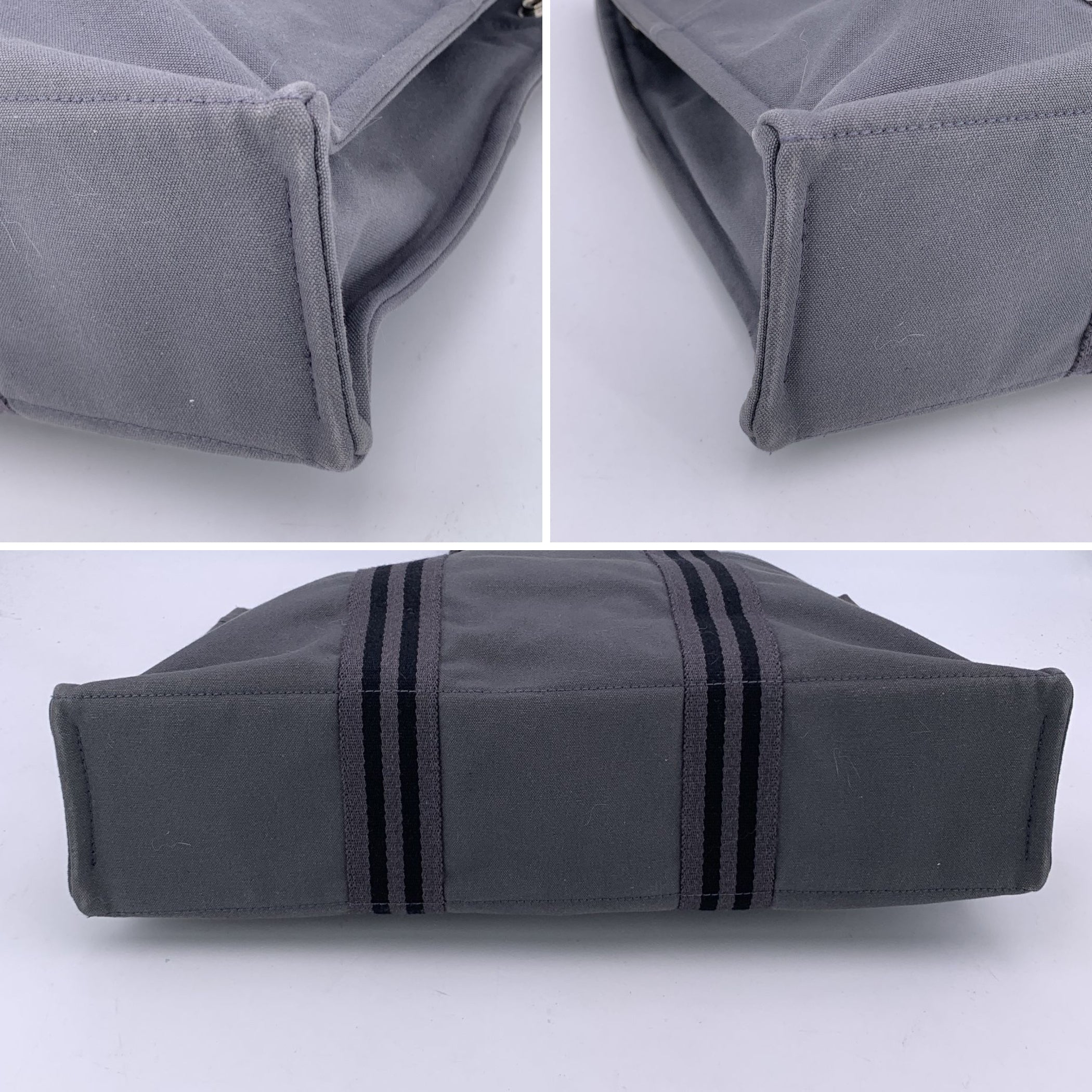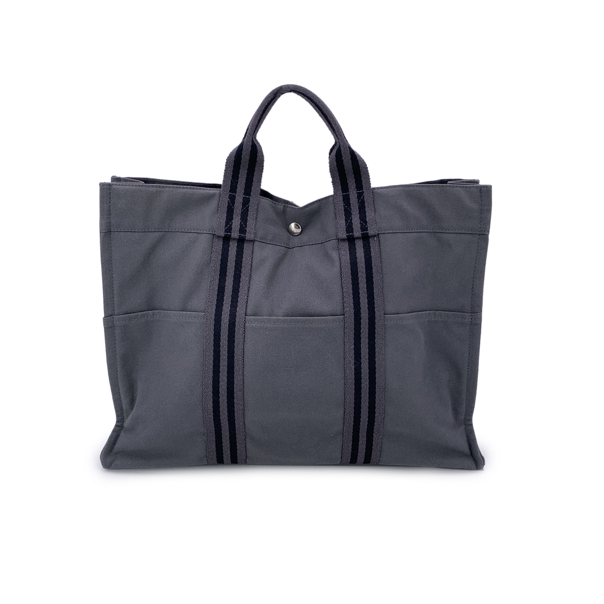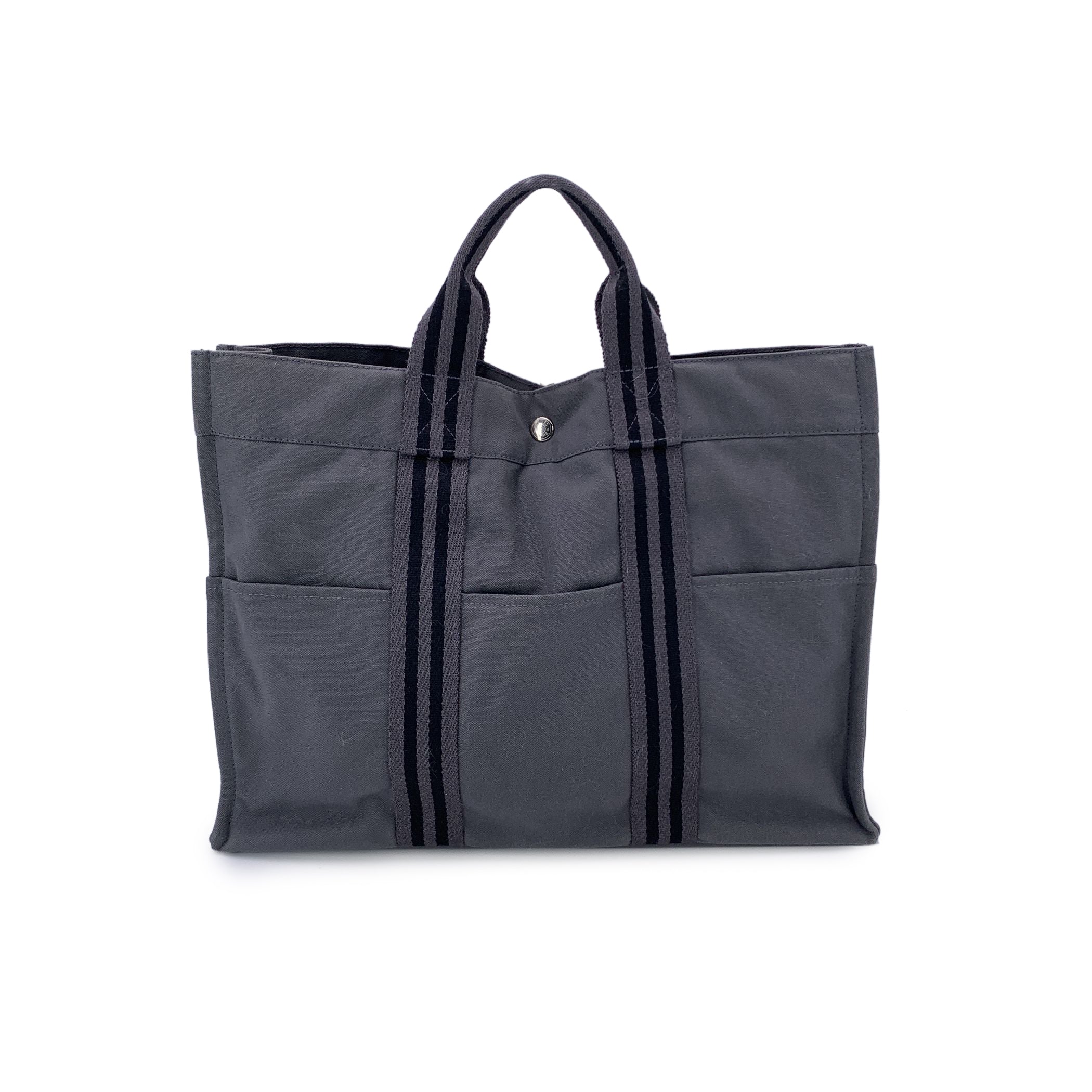 A True Icon Of Effortless Utility, The Hermès Fourre-tout Mm Tote Is a Staple Of Understated French Design. Crafted In France From Sturdy 100% Cotton Canvas, This Version Features a Versatile Grey Tone Accented With Classic Black Stripes-an Ideal Companion For Everyday Ease. Its Practical Structure Includes Three Open Pockets On Both The Front And Back, While Durable Canvas Handles Make It Perfectly Suited For Daily Wear. The Open Top Features a Central Snap-button Closure, With Additional Side Snaps For Expansion When You Need a Little Extra Space. Inside, The Canvas Lining Houses a Single Zip Pocket With a Leather Pull, Balancing Function With Subtle Luxury. The Hermès Fourre-tout Mm Is More Than a Tote-it's a Reliable Piece Of Design Heritage That's Ready To Move With You Through Every Part Of Your Day.