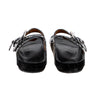 These black leather sandals from Isabel Marant feature studded silver accents, round open toes, two adjustable buckle straps and flat heels for comfort.