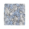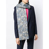 Issey Miyake silk scarf with blue and gray floral print and finished edges.
