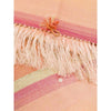 Issey Miyake pink, orange and gold-tone stripes lamè silk scarf with pink fringed edges.