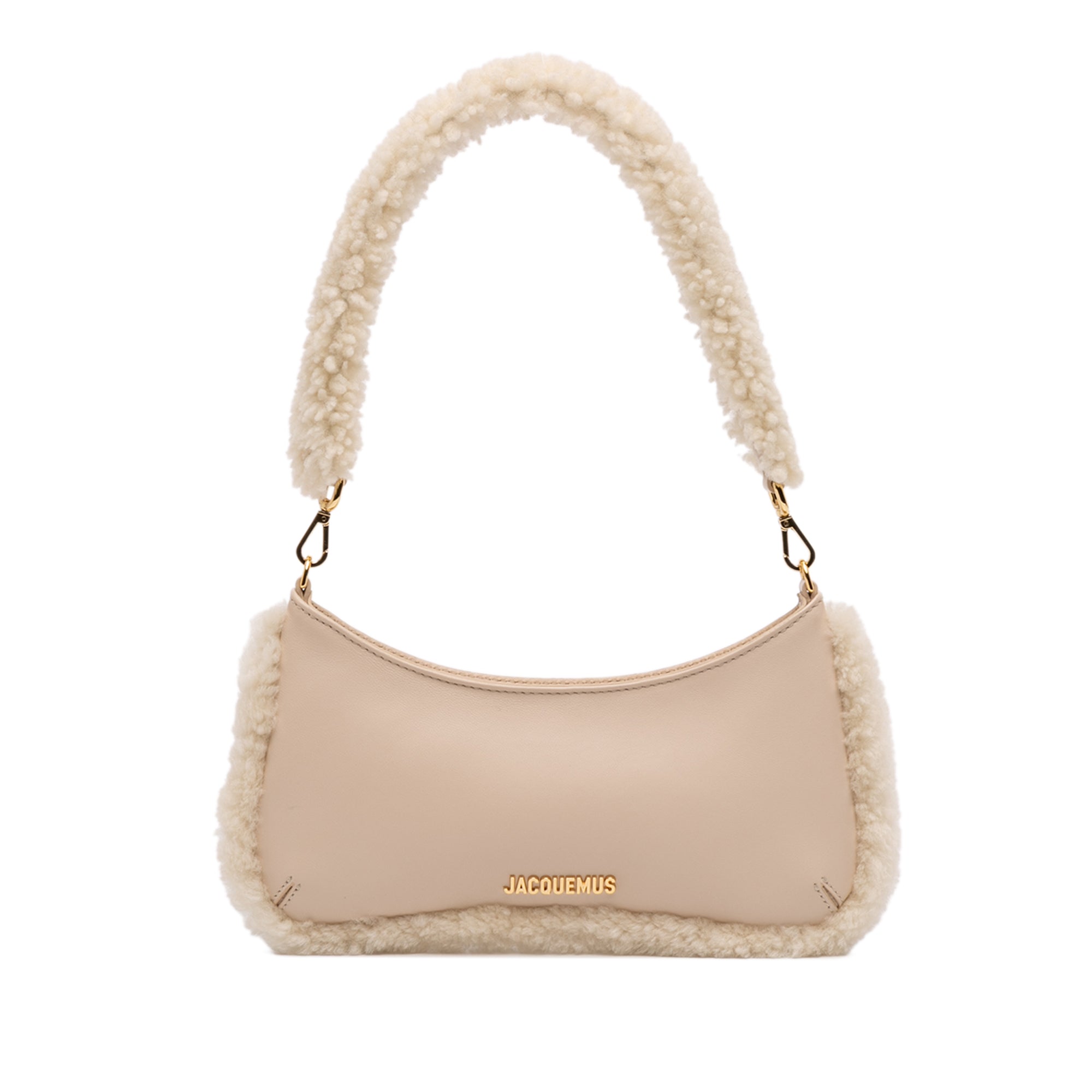 Jacquemus Leather Shearling Trimmed Le Bisou Doux Shoulder Bag
