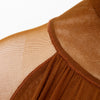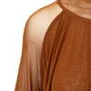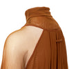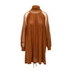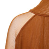 Jean Paul Gaultier 2000s Soleil mesh dress in rich brown nylon mesh. Features a fold-over high neck, raglan sleeves with gathered hems & a tie for versatile styling.
