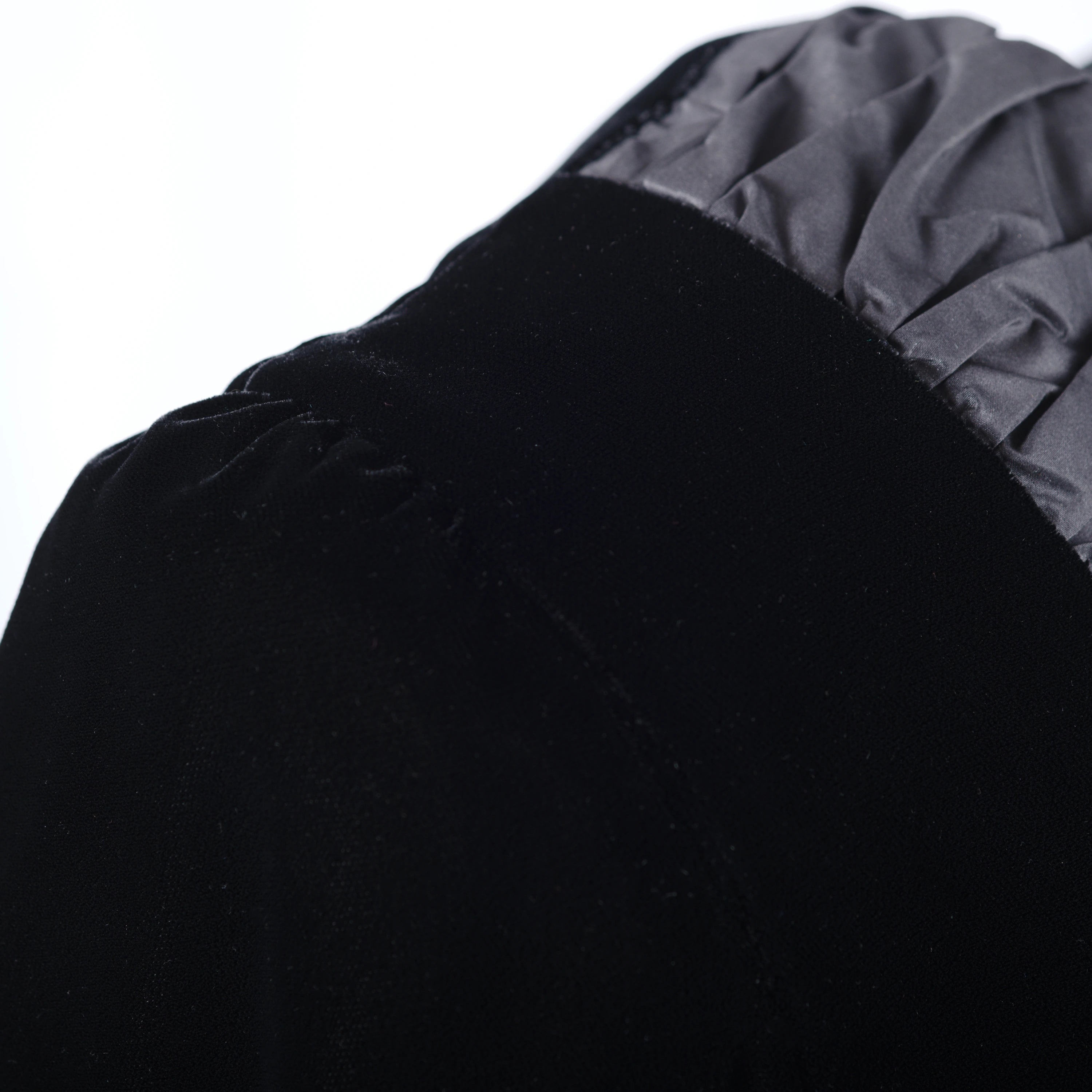 Black Jeunesse dress in velvet and satin with a decorative bow at the front. Made from high-quality fabric, soft and slightly glossy, it highlights the design details with elegance. The front bow adds an original and refined touch, while the midi length and precise craftsmanship emphasize the artisanal quality of the piece.