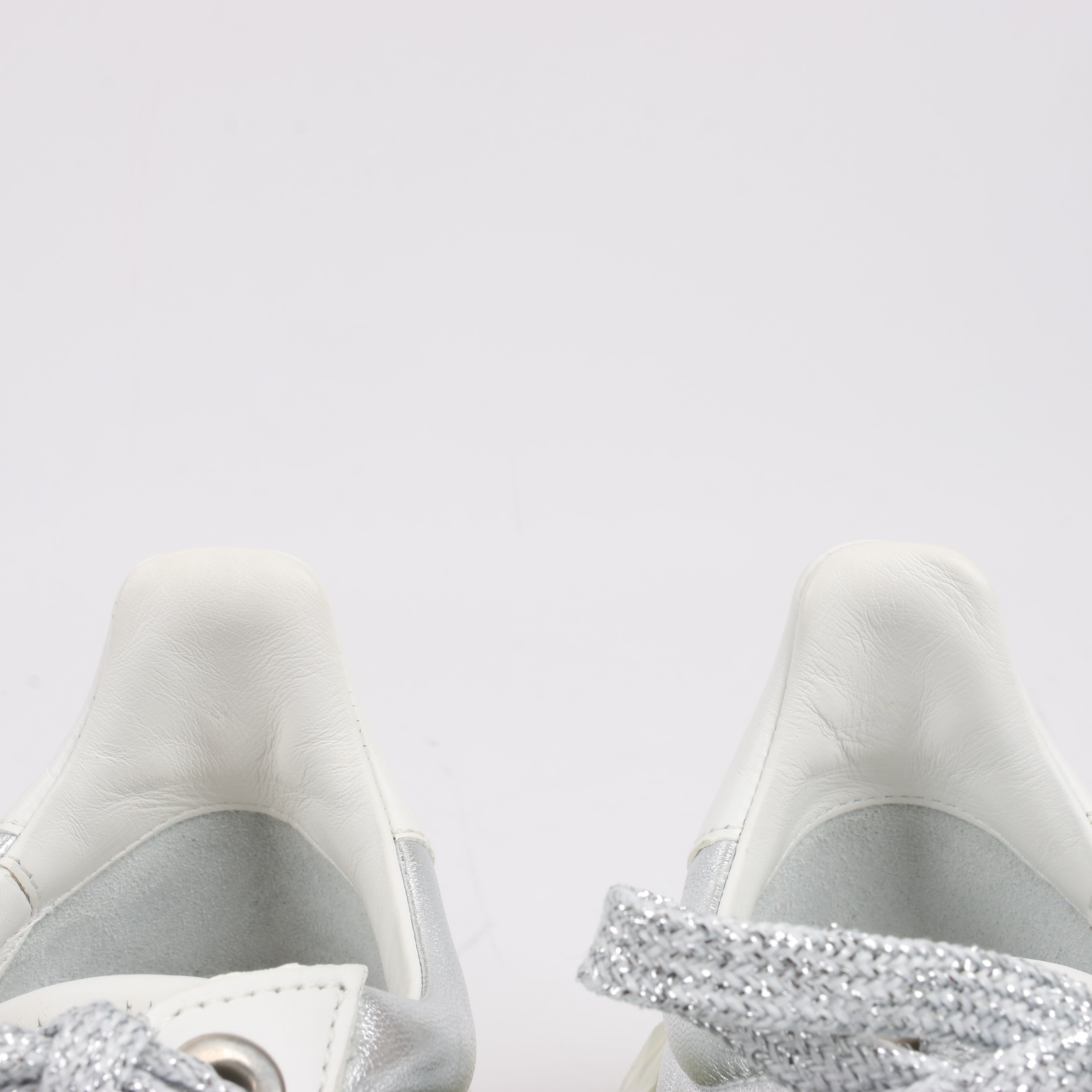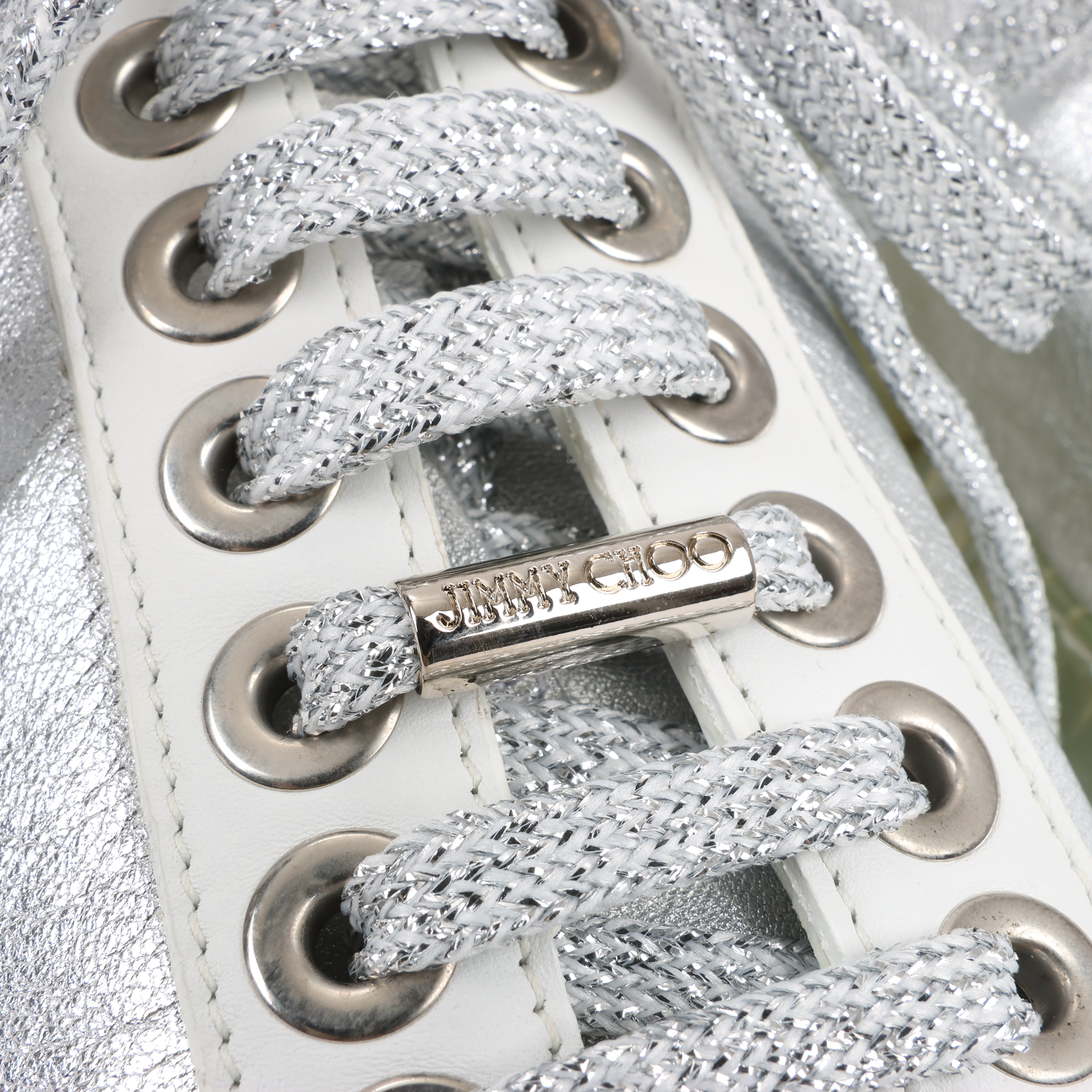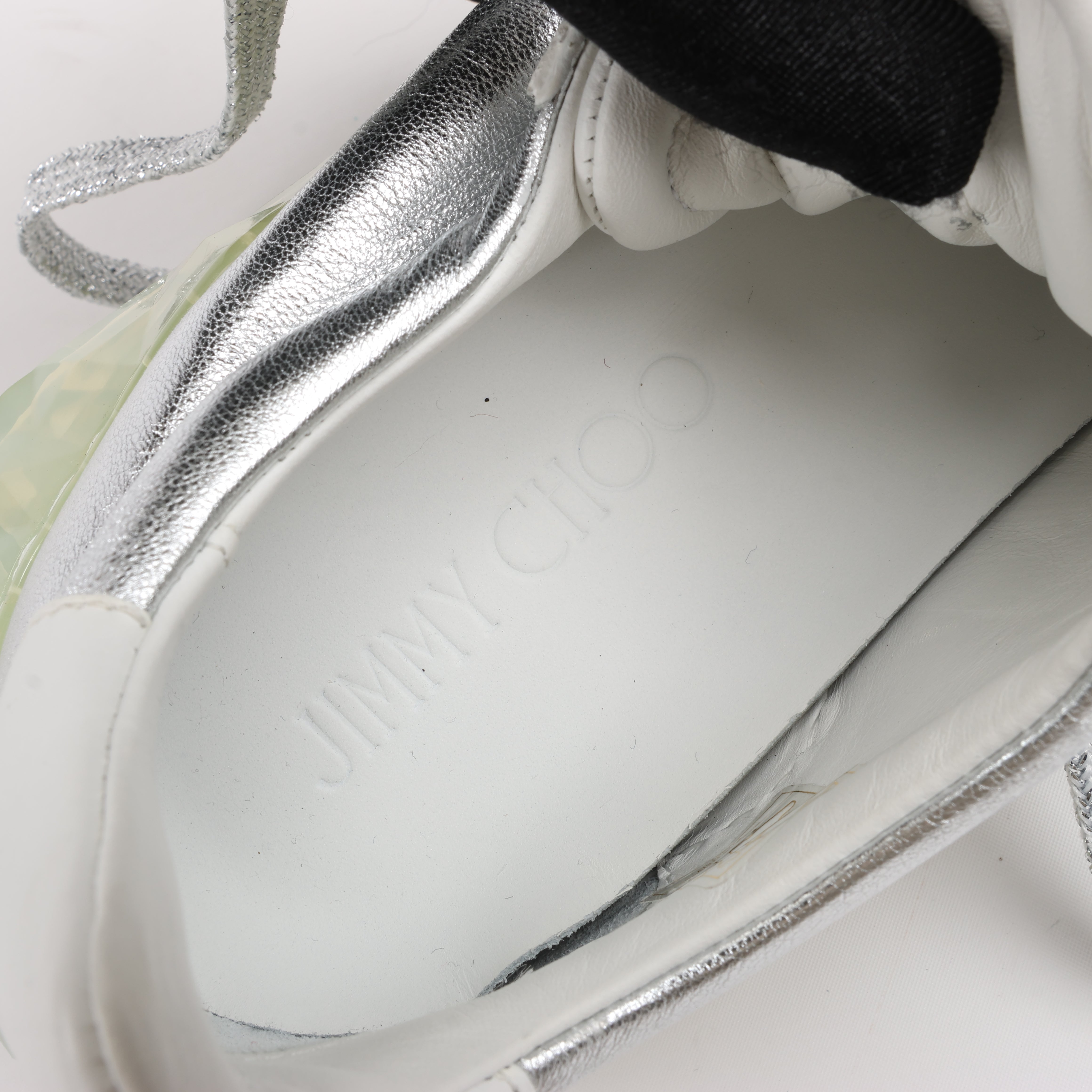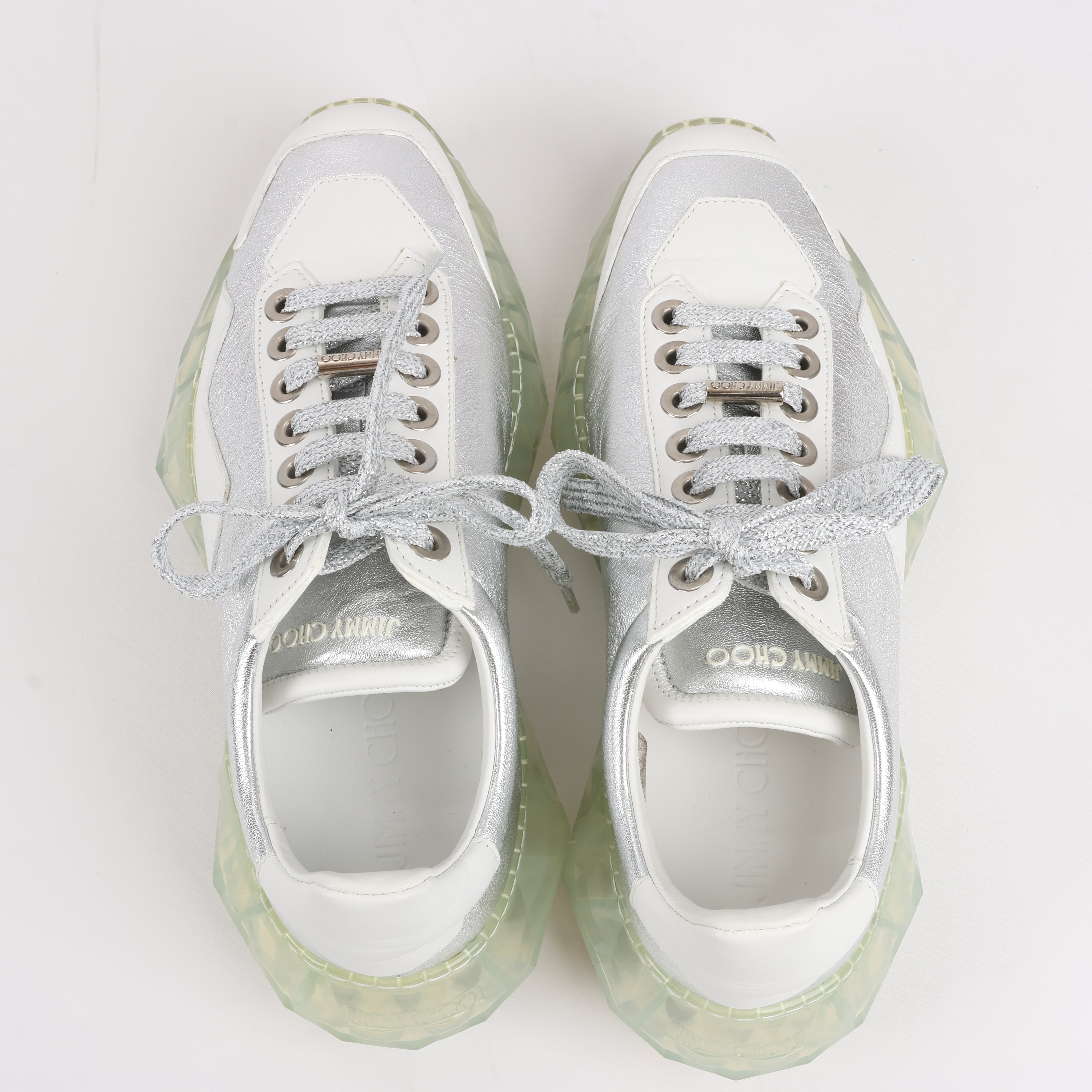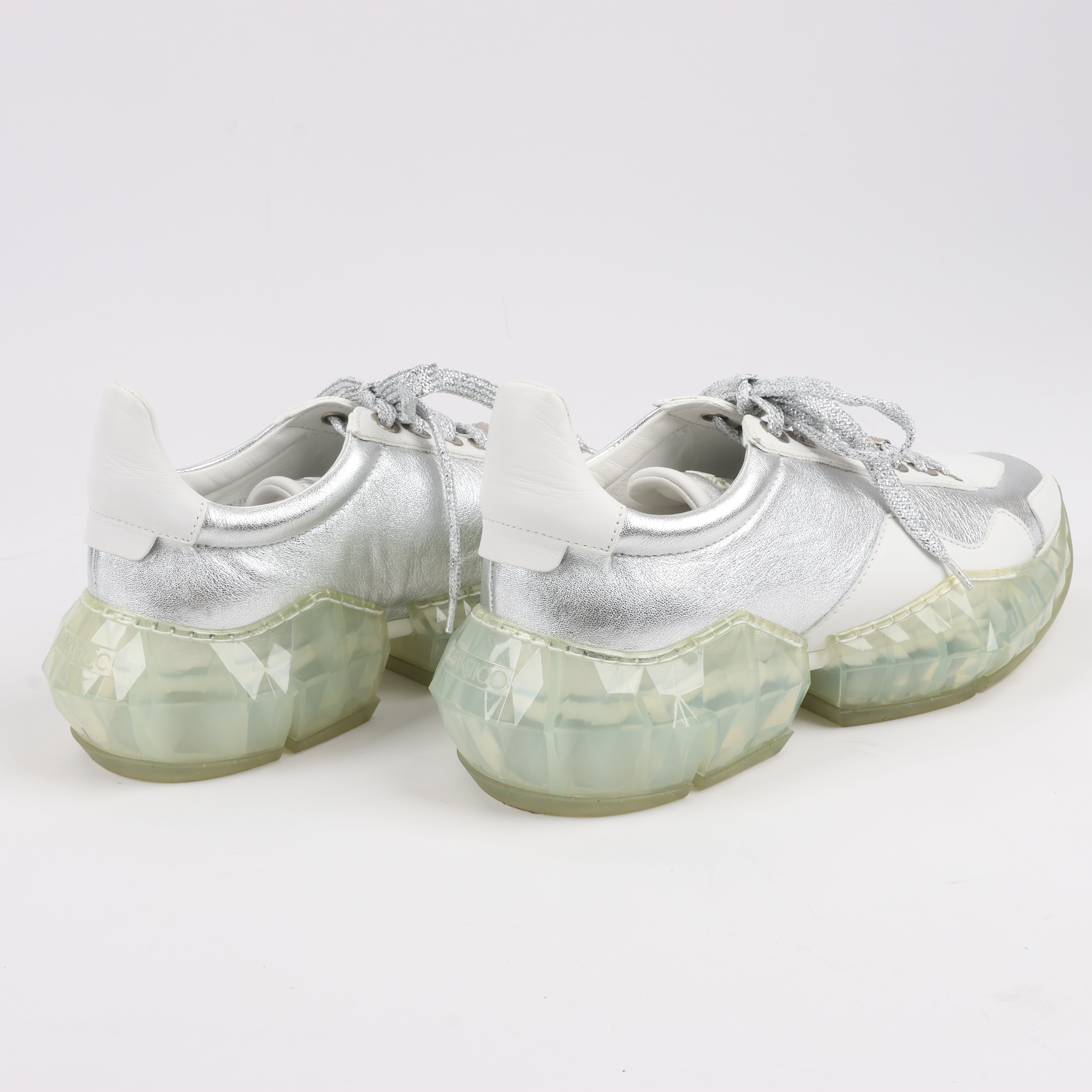Jimmy Choo Diamond Leather Sneakers in White x Silver, Size 38 EU