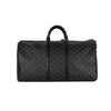 Redefining a chic travel companion is the spacious Louis Vuitton Black Monogram Eclipse Keepall Bandouliere 55 secured with zip fastening and a lock and key. The intricate detailing on the hardware such as the brand emblem carved on the outside lock, zip and strap connector, and the subtle sheen on the outside creates and elevates the anticipation to go on a journey.