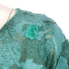Lanvin 2010s green silk blend upcycled dress. Lurex floral print and embroidered leaves details, three-quarter sleeves and front drapery with ribbon. Silk slip dress. Year: 2014 - The item has been upcycled with decorative embroideries.
