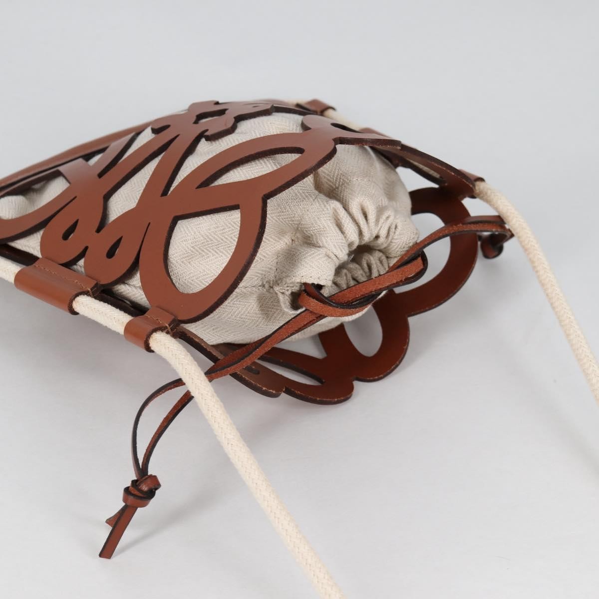 Brand : Loewe Model : Anagram Drawstring Bucket Crossbody Bag Style : Leather with Canvas Serial number : 657718 Inclusions : Dust bag