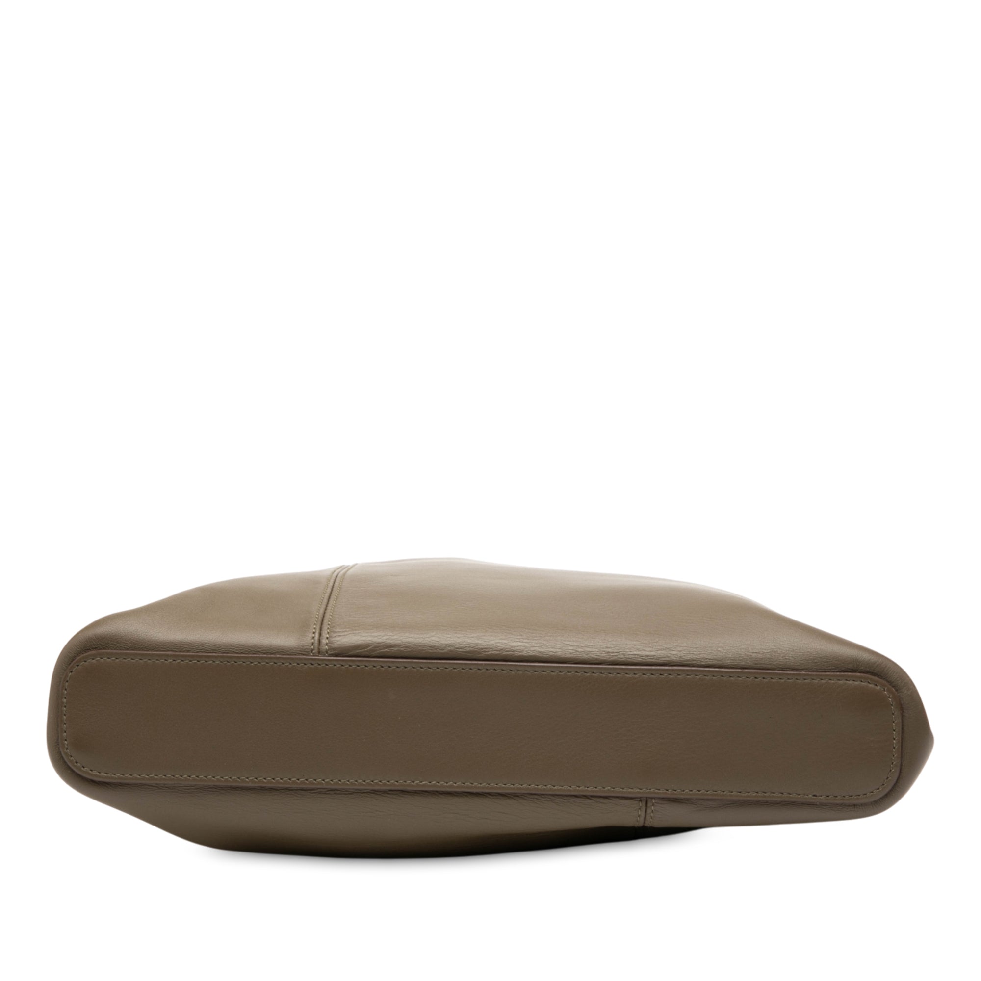 This tote bag features a leather body, flat leather top handles, an open top, an exterior slip pocket, and a pouch inclusion. Inclusion: Dust bag. Retail Price: 1600.00
