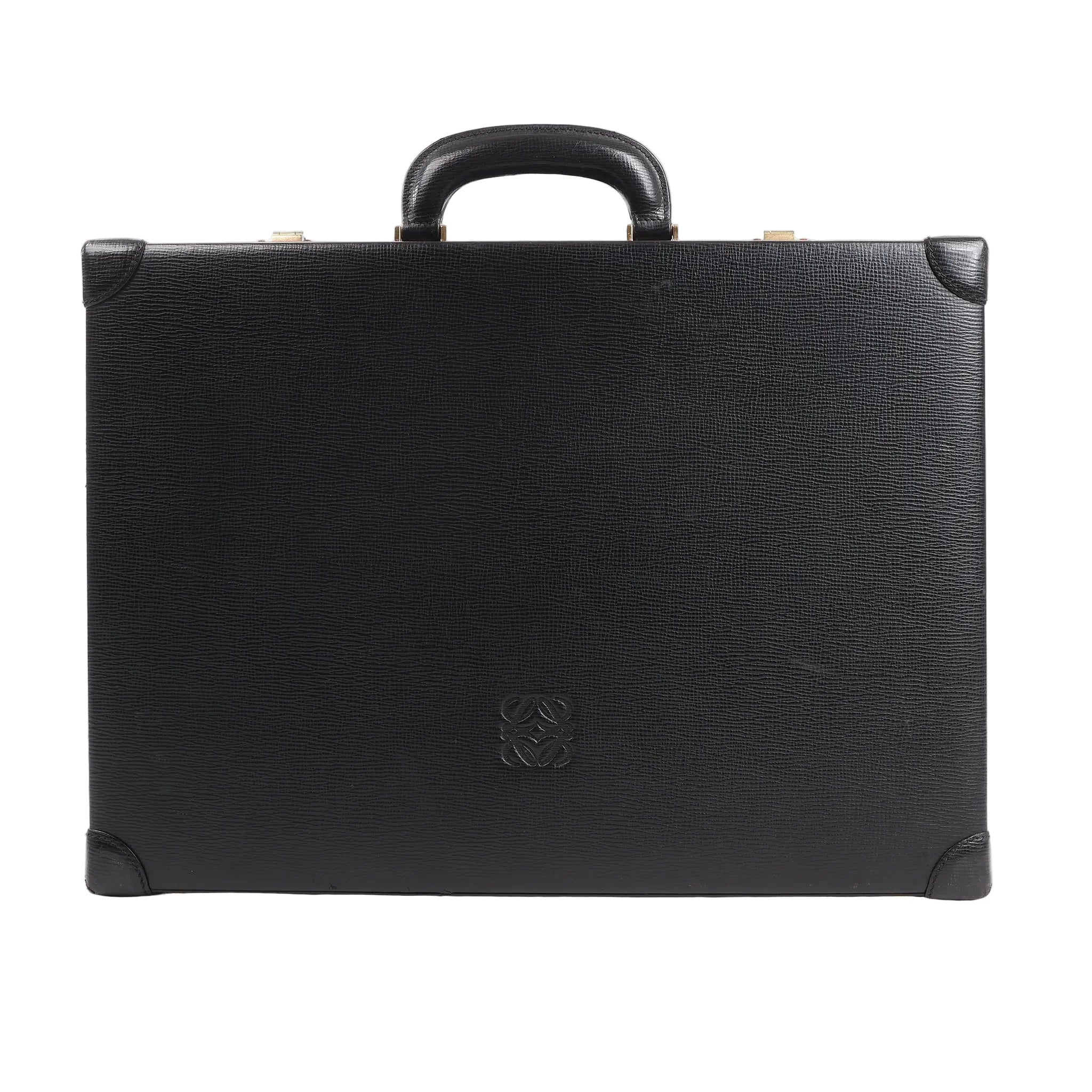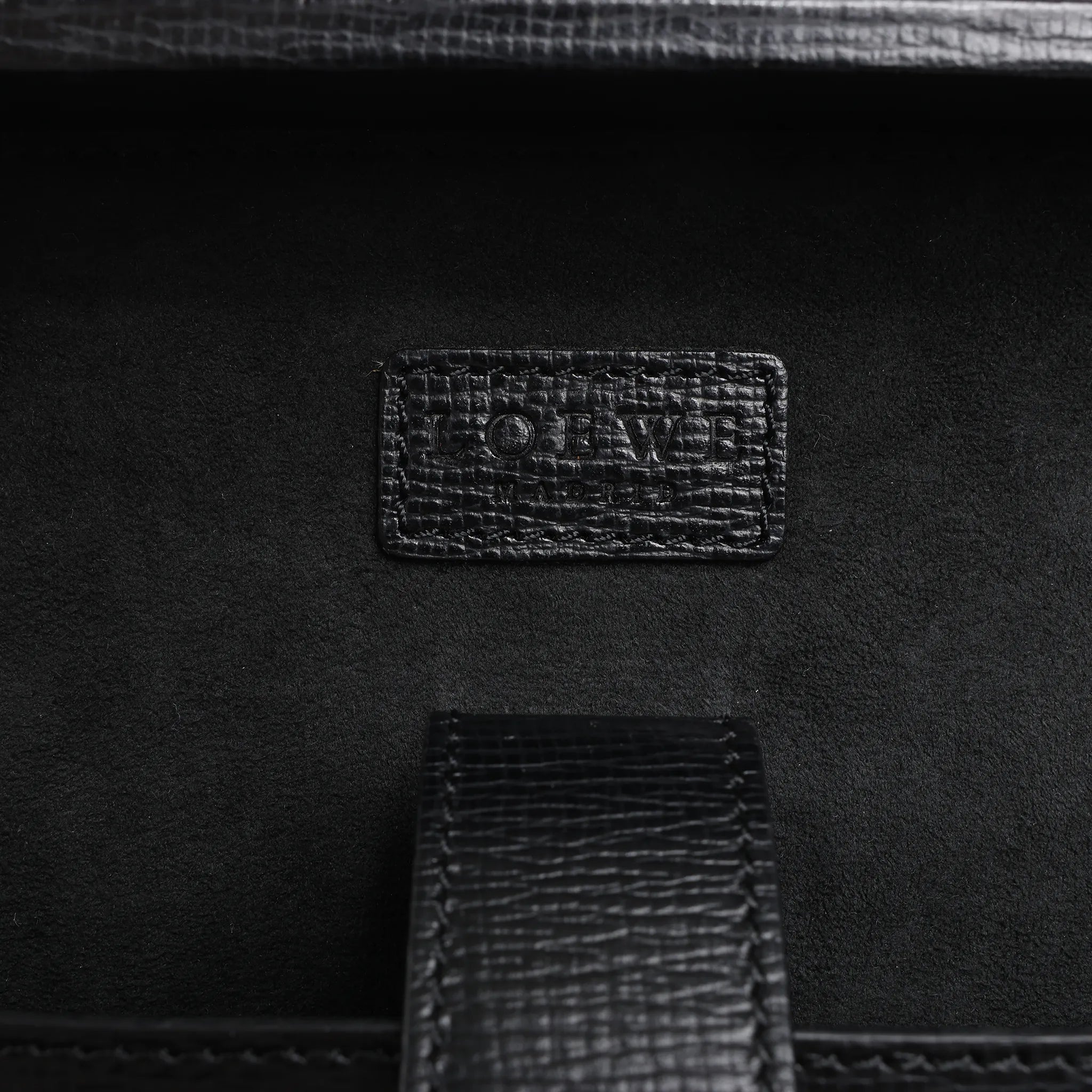 Elevate your business travel with the Loewe Anagram Leather Travel Bag in classic black. Crafted from premium textured leather, this structured case features the iconic Anagram logo and sleek top handle for refined functionality on the go.