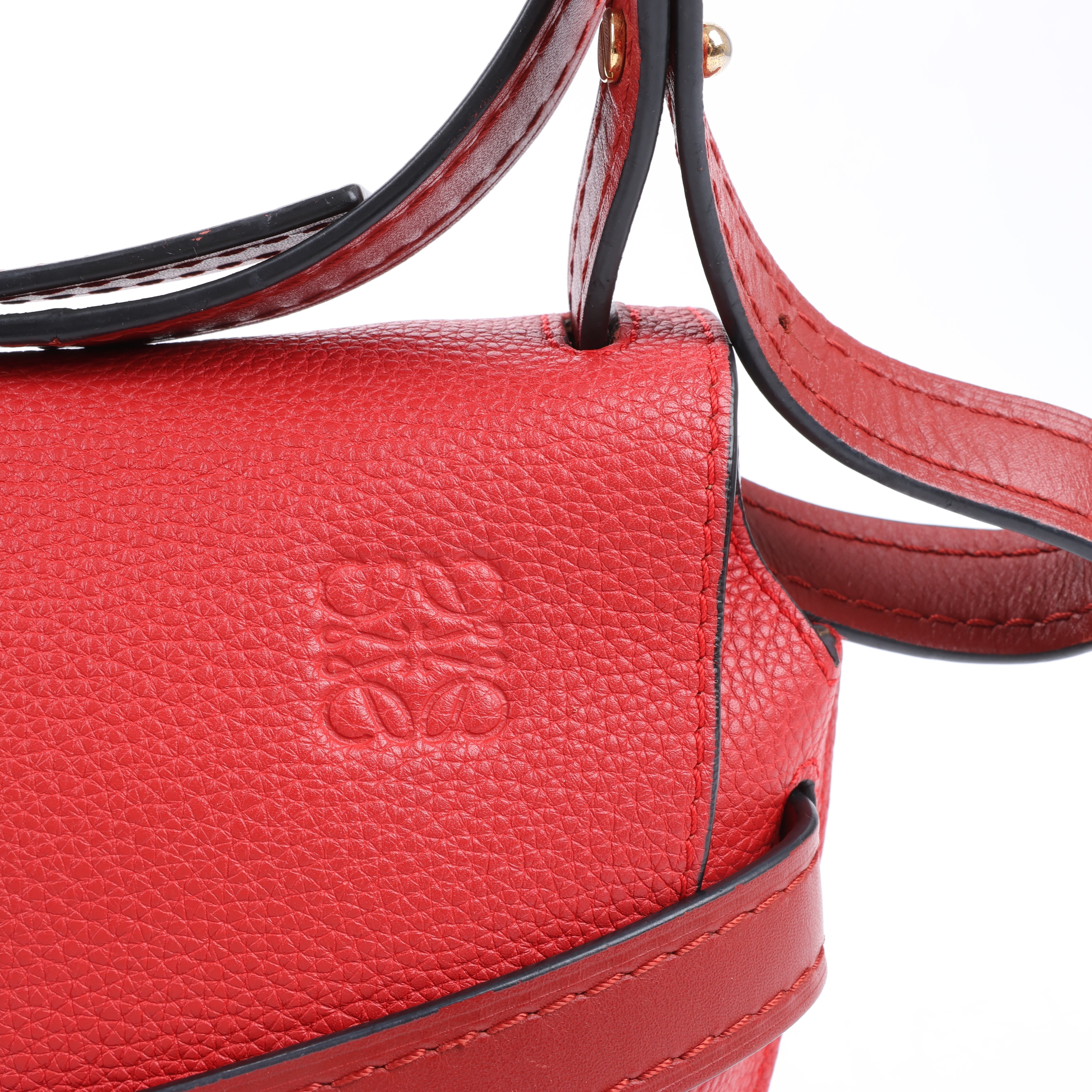 LOEWE Gate Soft Grain Leather Mini Crossbody Bag Scarlet Red Burnt Red Secondhand