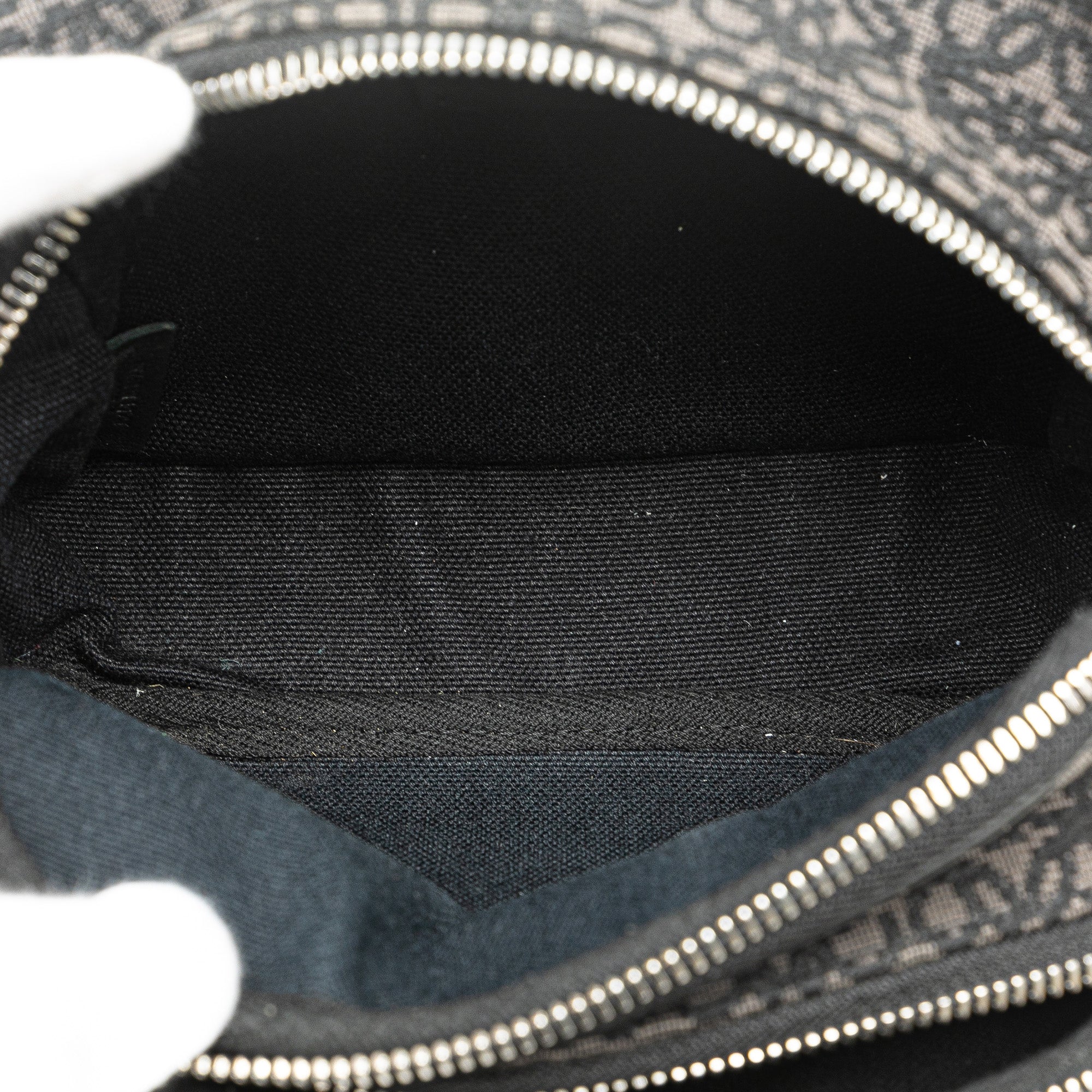 This crossbody bag features a canvas body, a flat shoulder strap, a top zip closure, and an exterior front zip pocket. Retail Price: 1790.00