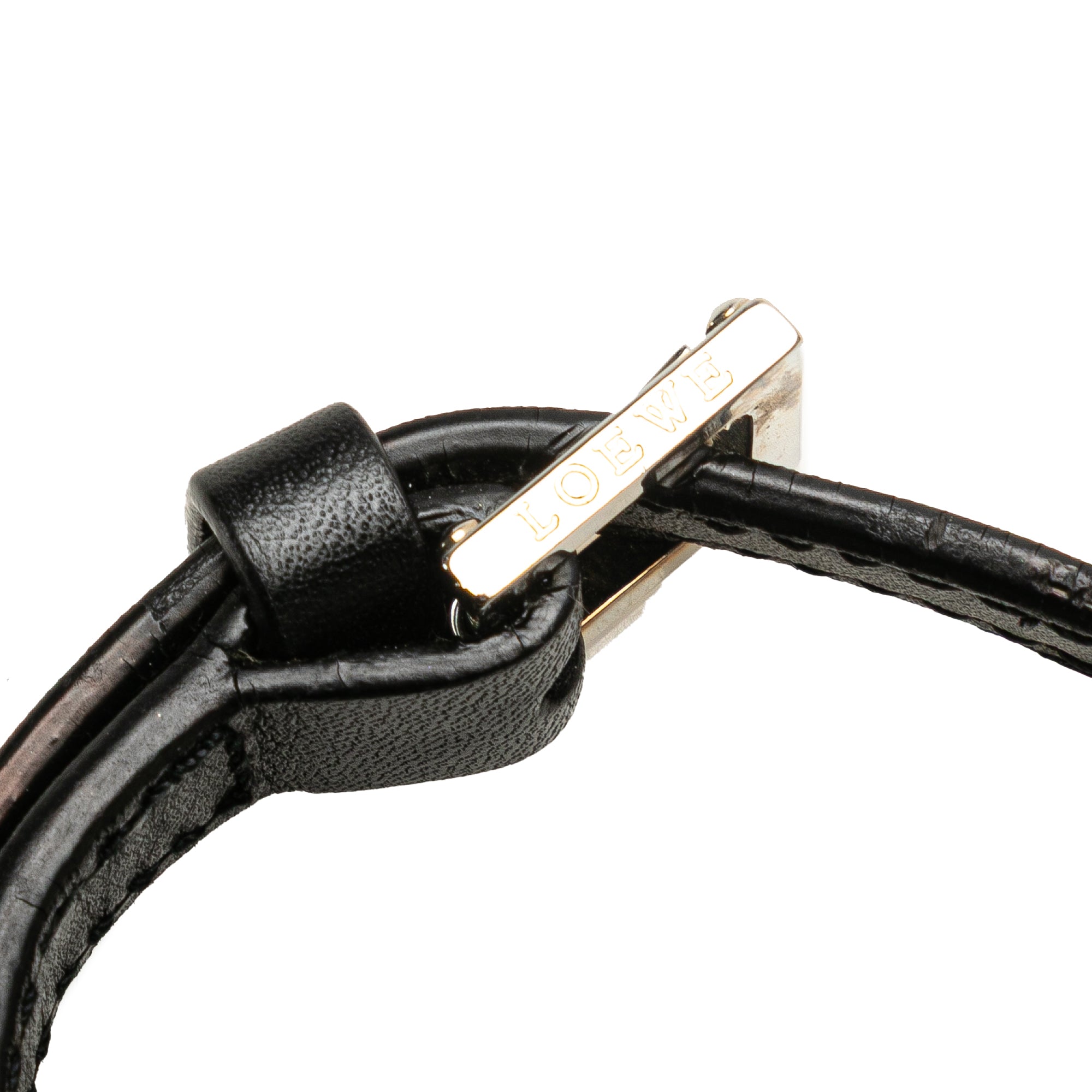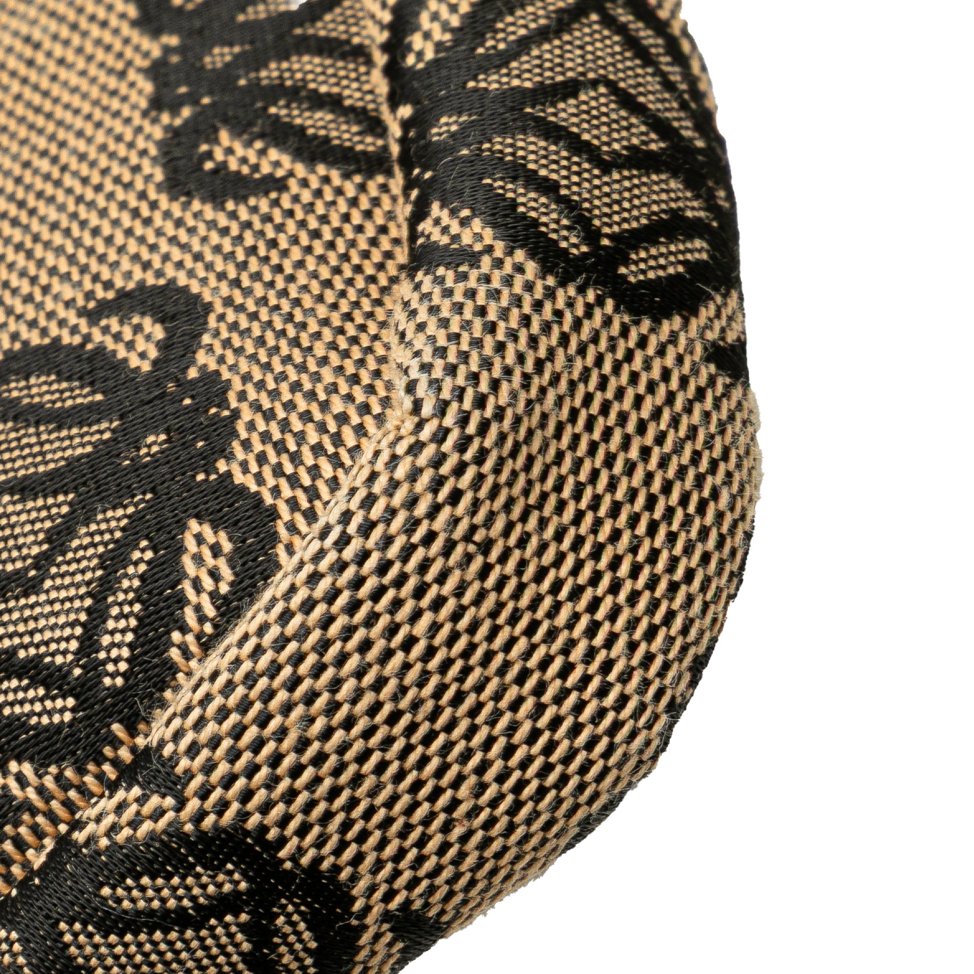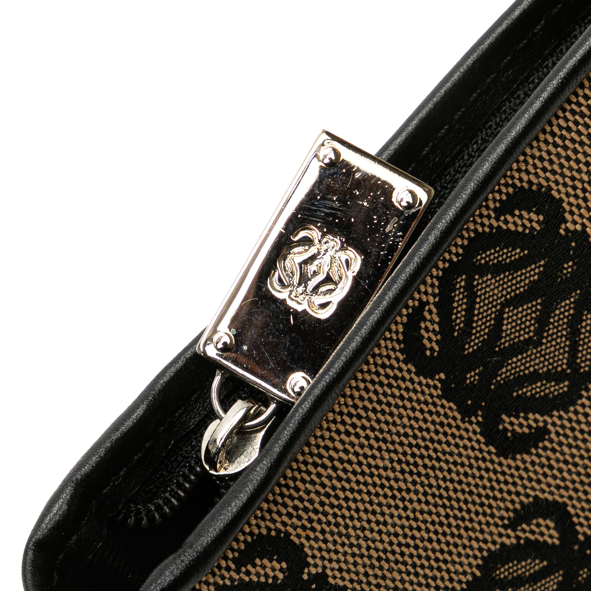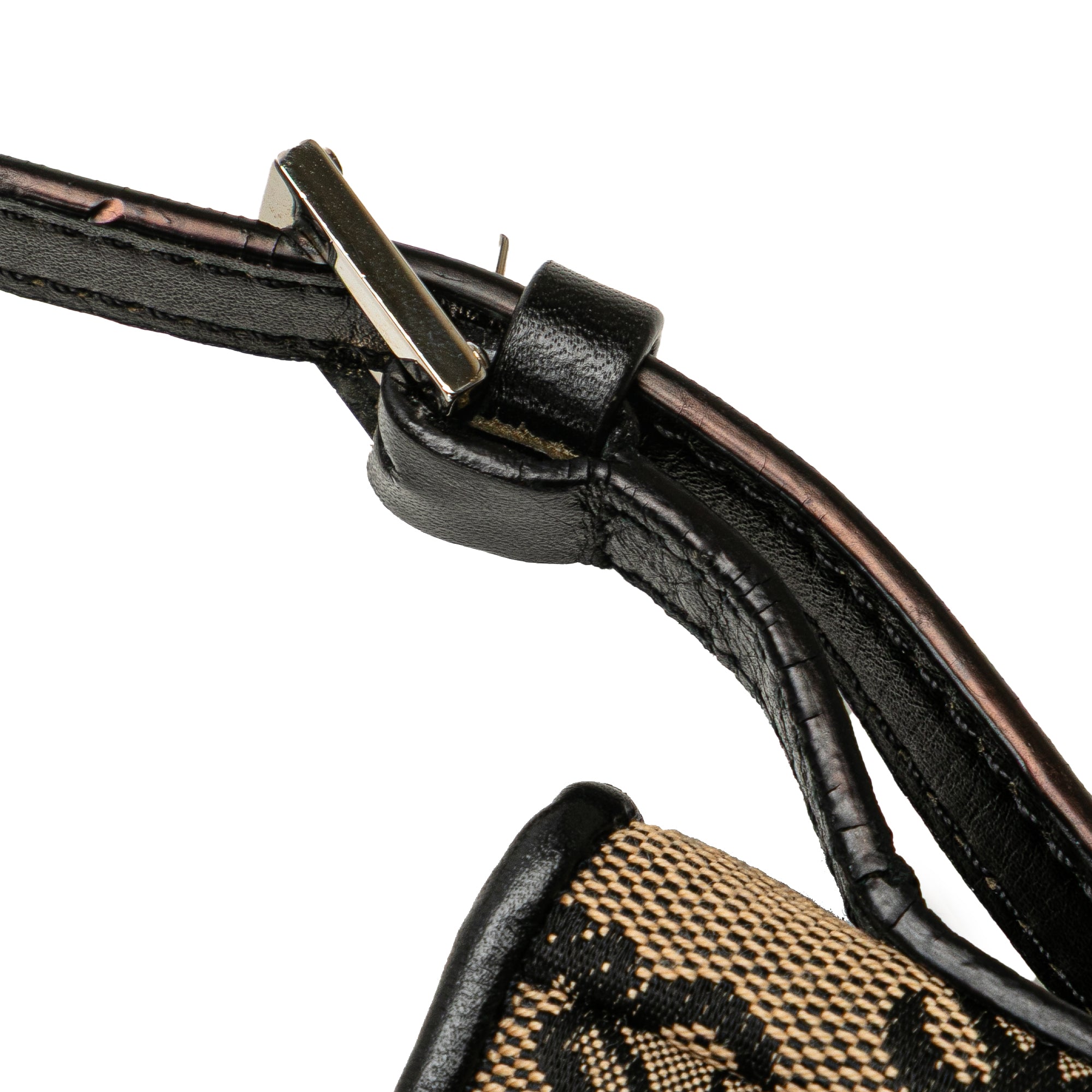 This shoulder bag features a canvas body with leather trim, a flat leather shoulder strap, and a top zip closure. Inclusion: Dust bag. Retail Price: 800.00