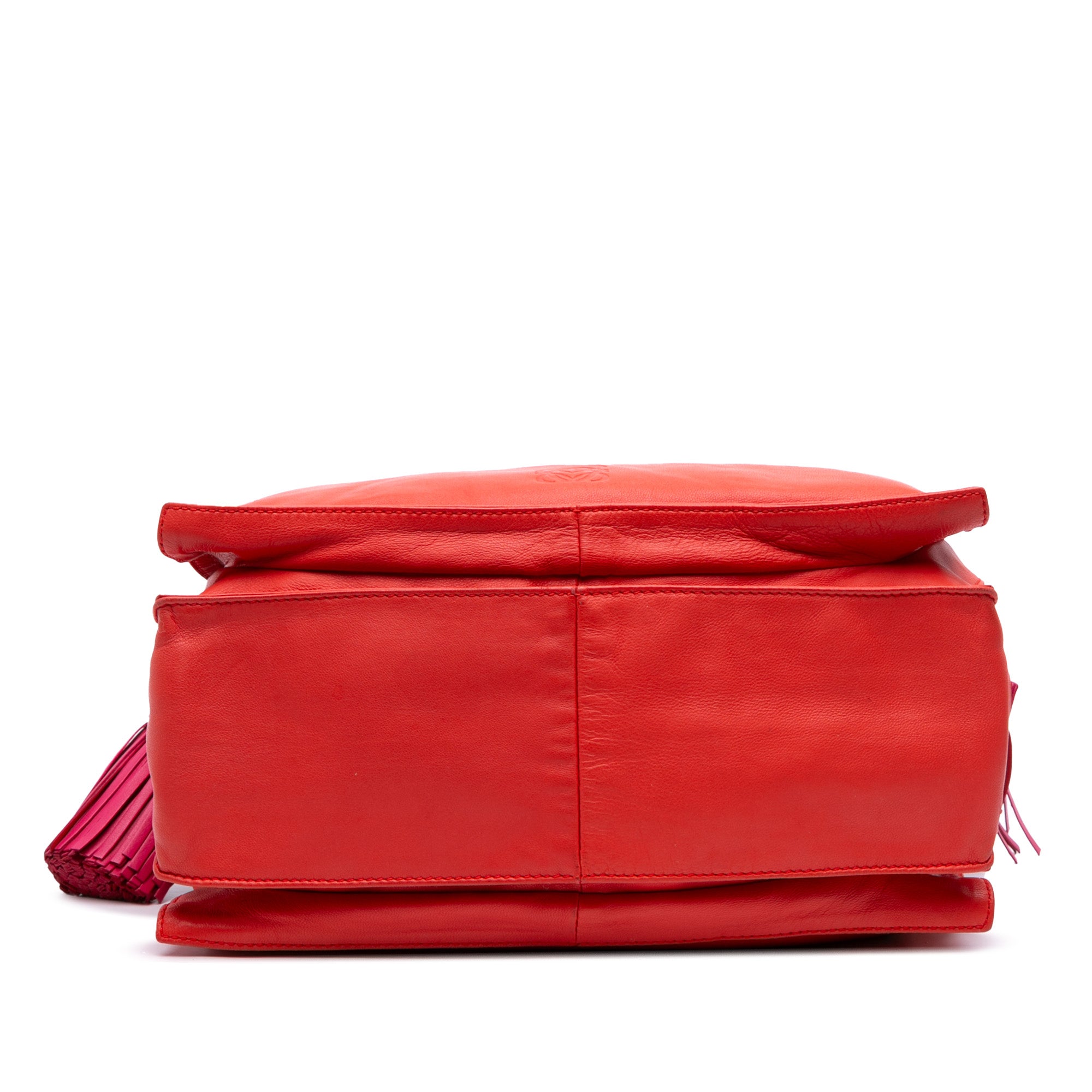 The Flamenco crossbody bag features a leather body with tassel details, a flat leather strap, a top snap closure, and an interior zip pocket. Retail Price: 1890.00