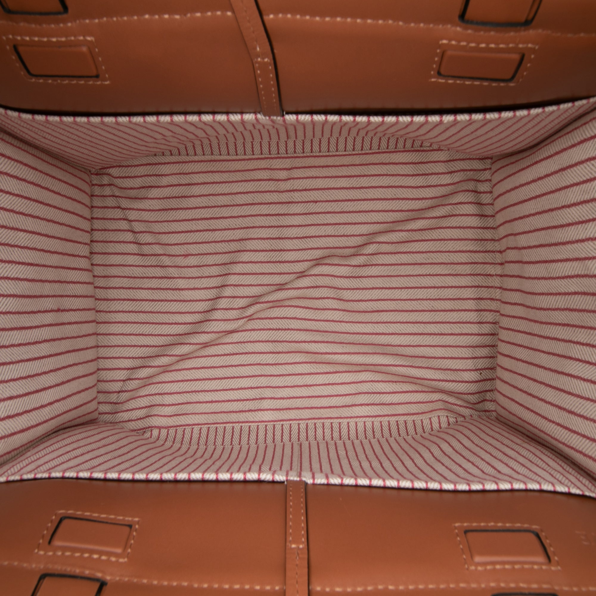 This tote bag features a canvas body with leather top panel, flat leather straps, an open top with leather tie closure, and an interior slip pocket. Inclusion: Dust bag. Retail Price: 1850.00