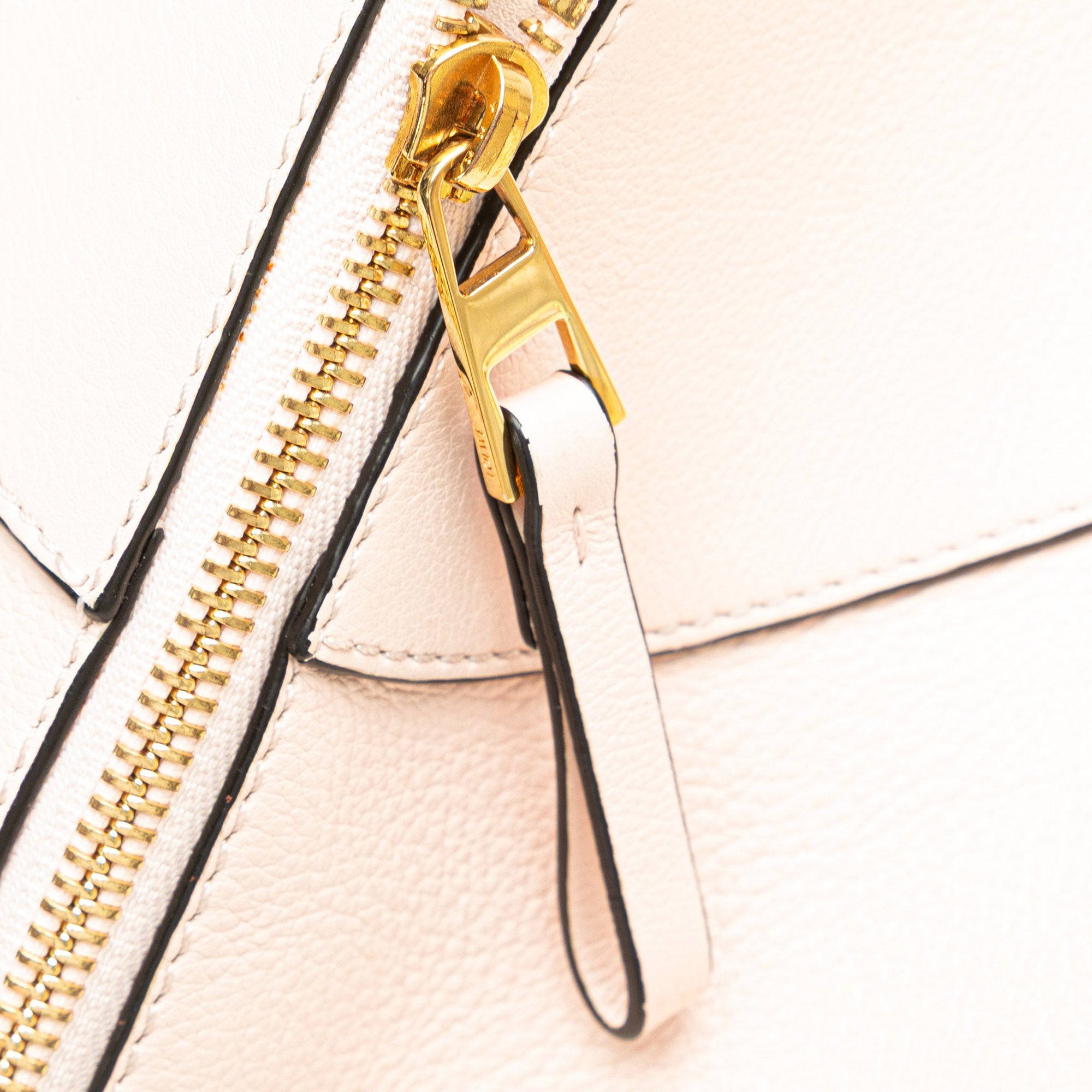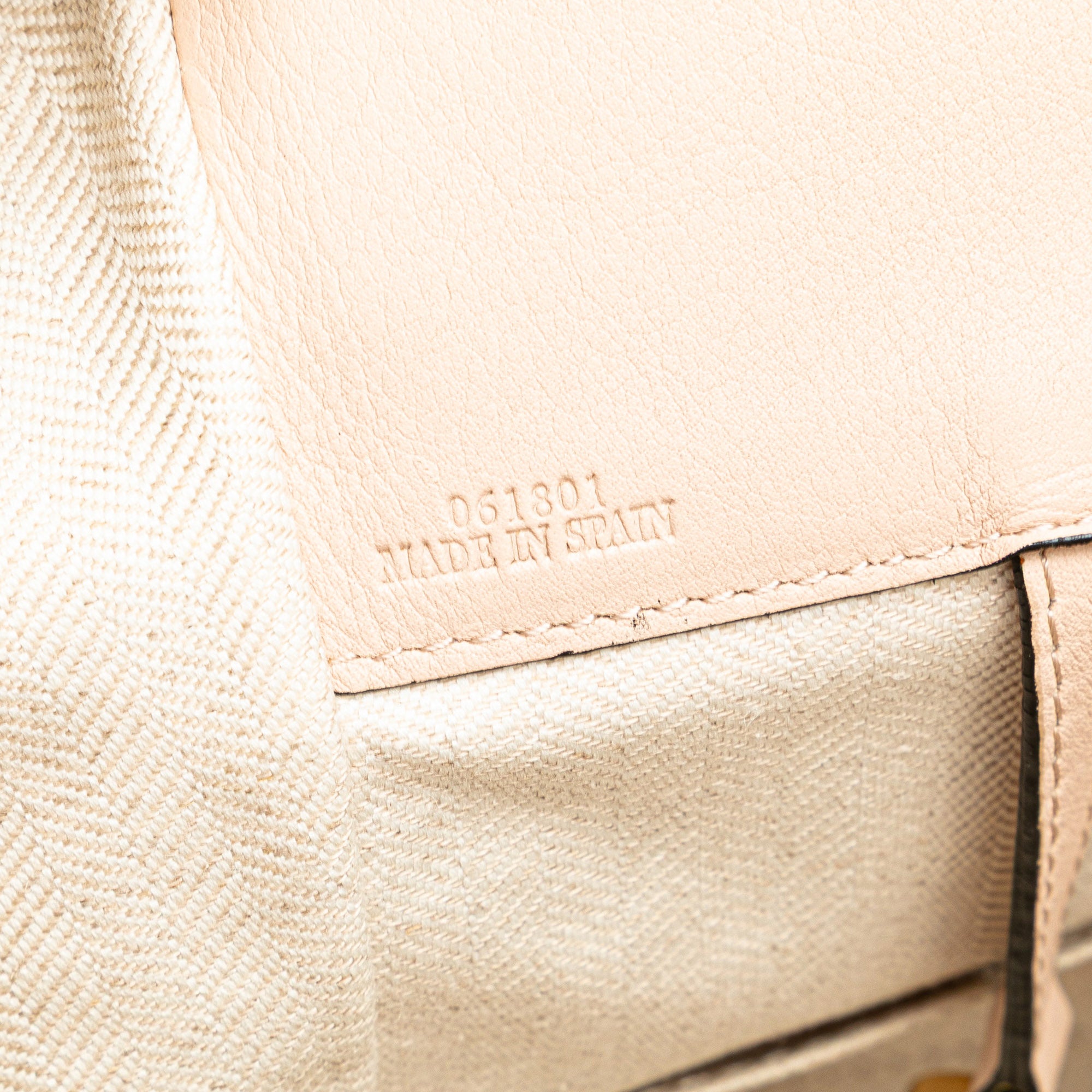 The Hammock features a leather body with side zip details, flat leather handles, a detachable flat shoulder strap, an open top, an exterior zip pocket, and interior slip pockets. Retail Price: 3400.00