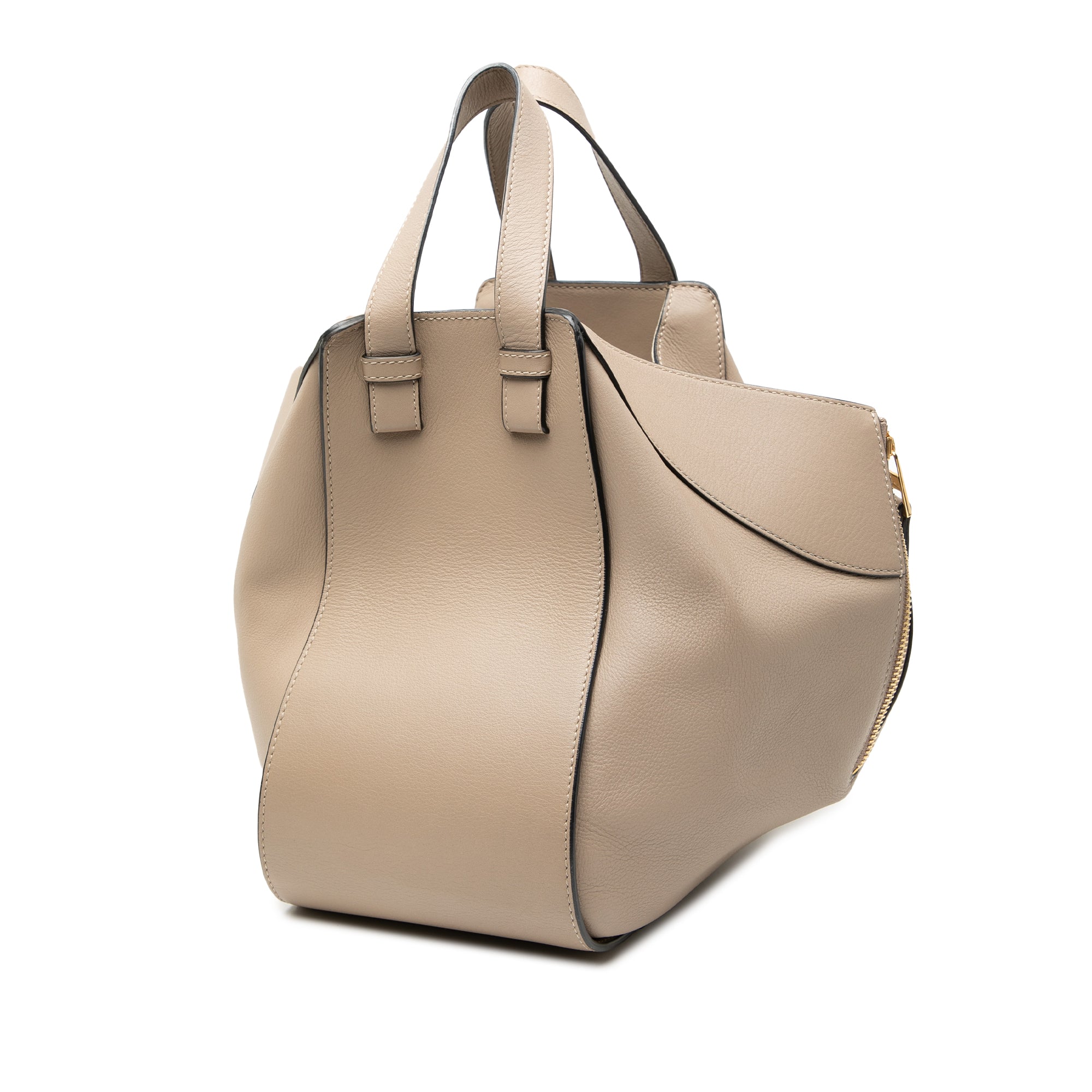 The Hammock features a leather body, flat leather top handles, a detachable and adjustable flat leather shoulder strap, an open top with lobster claw clasp closure, side zipper extenders, an exterior zip pocket, and interior slip pockets. Inclusion: Dust bag. Retail Price: 2560.00