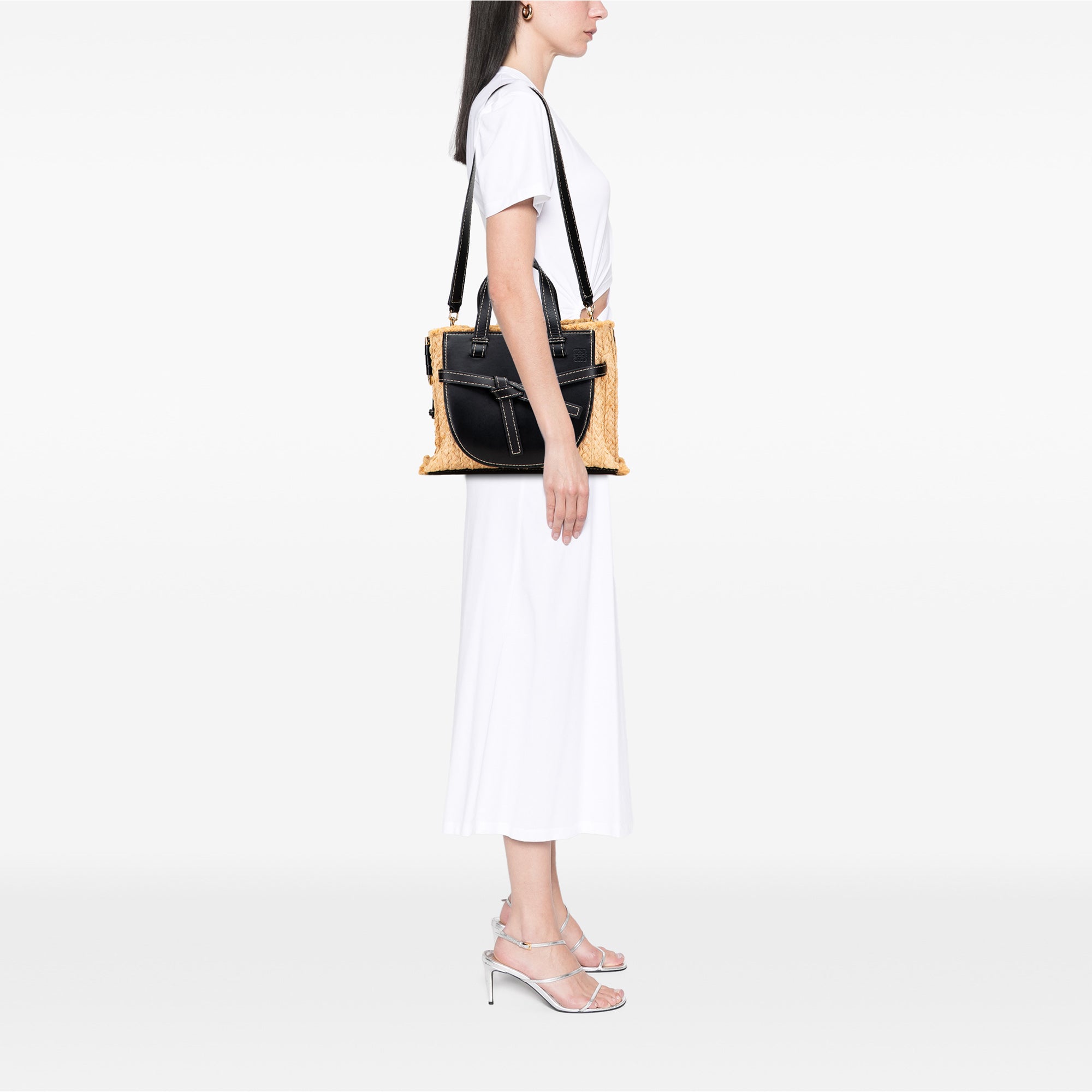 LOEWE Small Raffia and Leather Gate Top Handle Bag