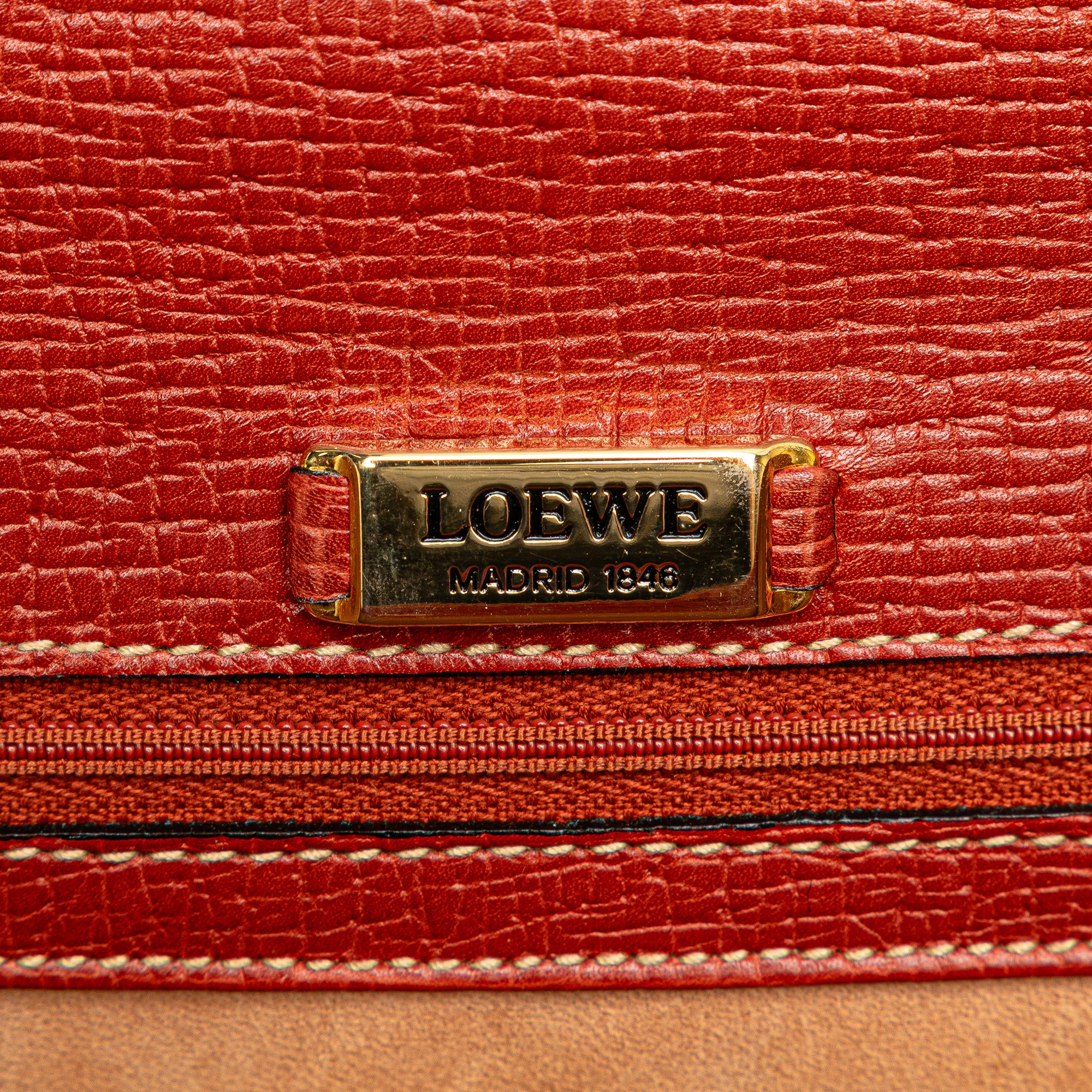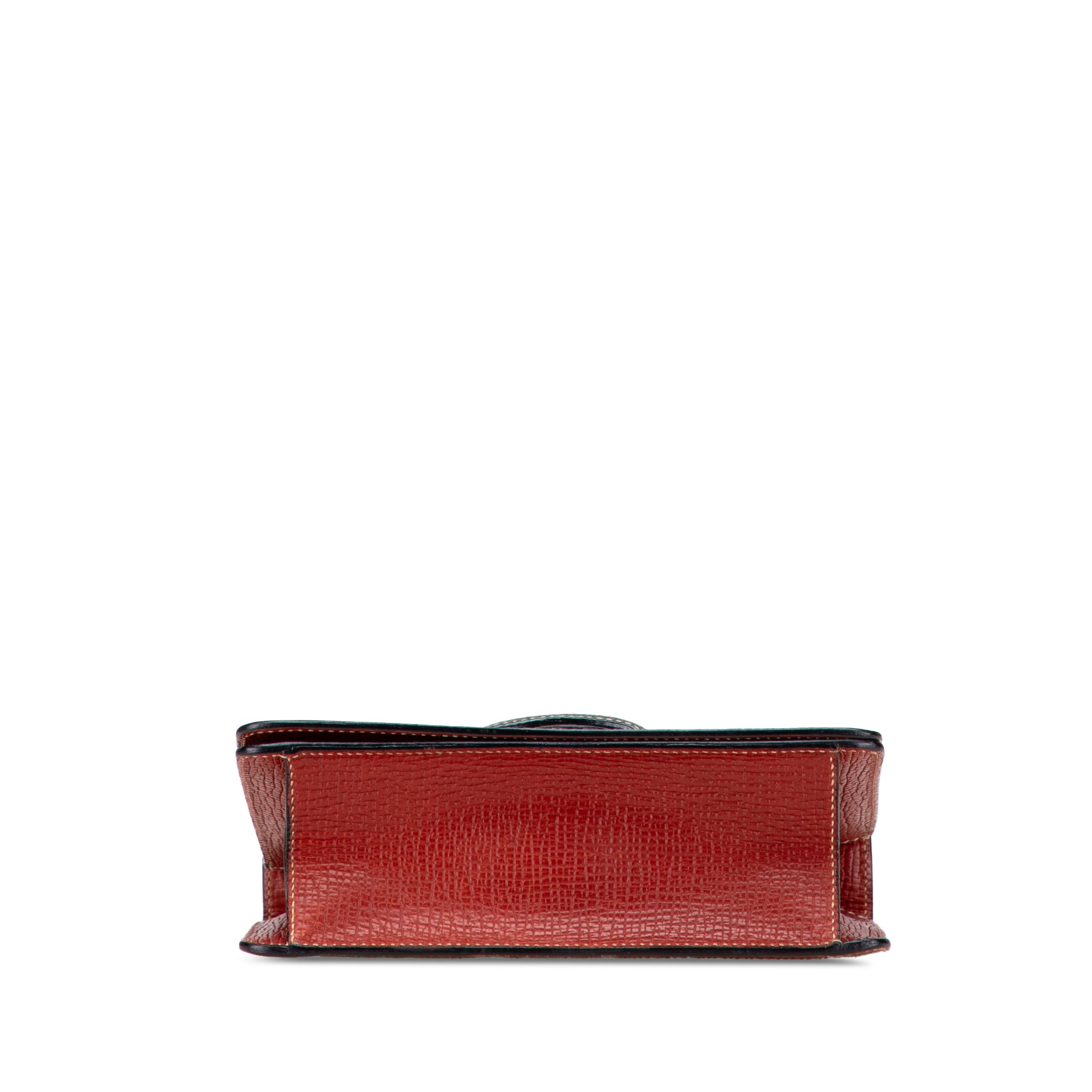 This handbag features a leather body, a rolled top leather handle, a front flap with magnetic snap closure, and an interior zip pocket. Retail Price: 1990.00