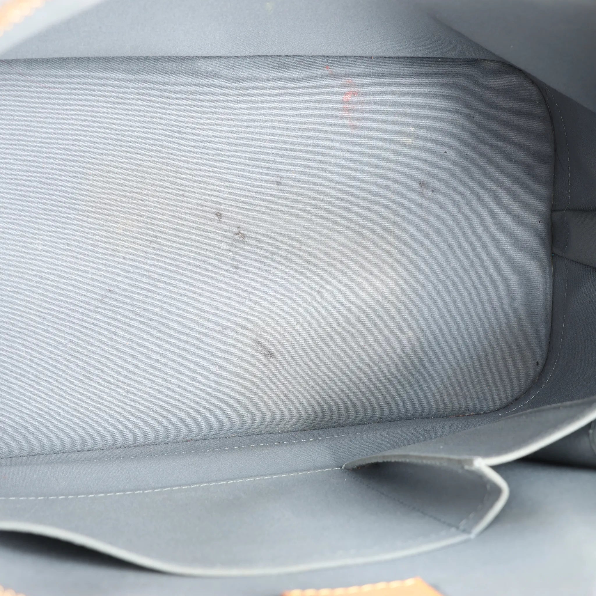 Brand: Louis VuittonModel: AlmaSize: GMWidth: 39 cmHeight: 28.5 cmExterior Condition: Very goodInterior Condition: Very goodCondition Details: This exterior is in good shape, but has some scratches. The handles are firm and in excellent condition. The hardware is crisp and very bright with hairline scratches. The interior is in good condition with some stains. Date code: MI2161.Colour: GreenInterior Colour: BlueHardware Colour: Gold Material: Patent LeatherComes With: Padlock (keys are missing)