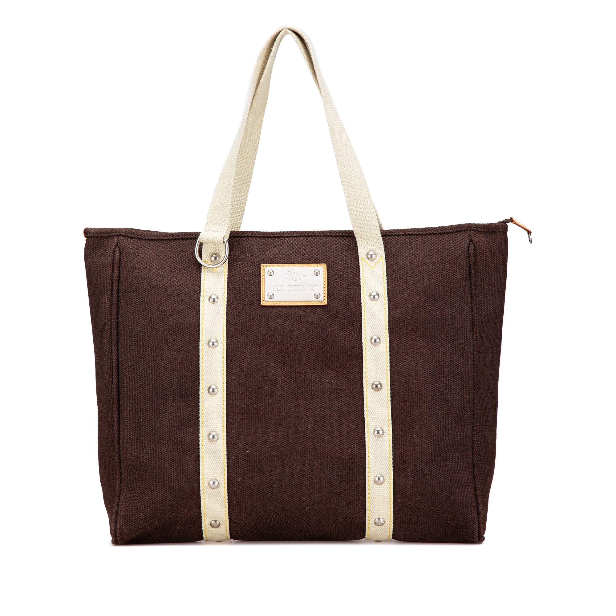 The Antigua Cabas GM features a canvas body, flat shoulder straps, a top zip closure, and an interior slip pocket. Retail Price: 1100.00