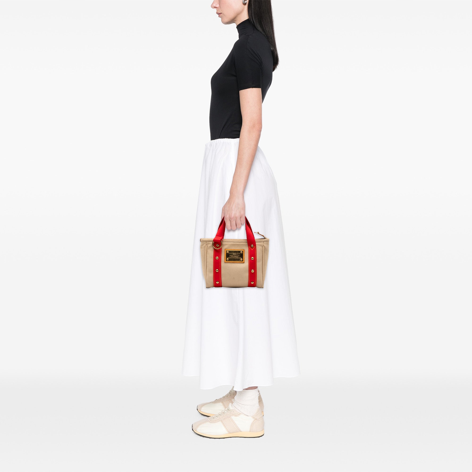 The Antigua Cabas PM features a canvas body, flat handles, a top zip closure, and an interior slip pocket. Retail Price: 725.00