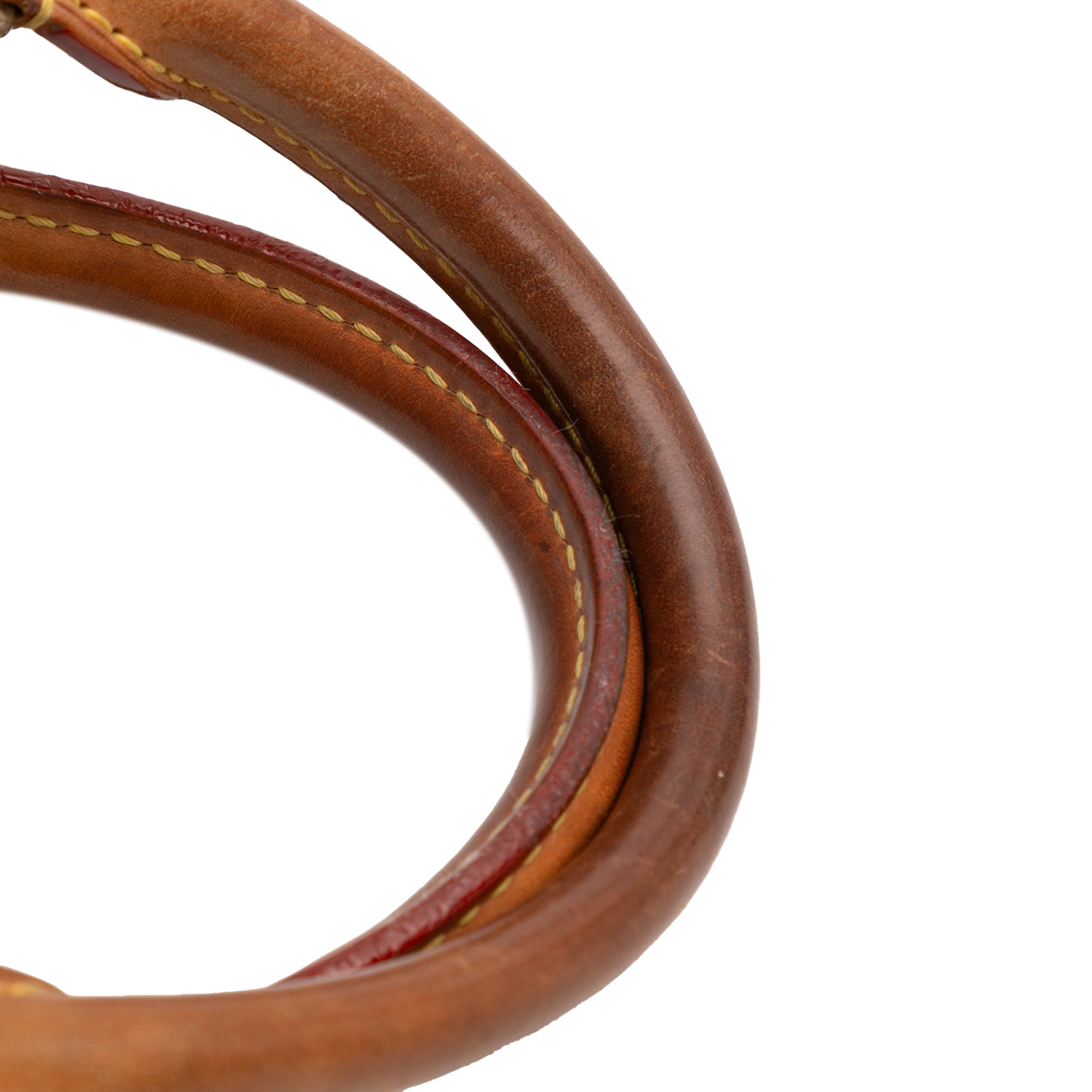 The Speedy 30 features a damier canvas body with vachetta leather trim, rolled vachetta leather handles, a top zip closure, and an interior pocket. Retail Price: 1550.00