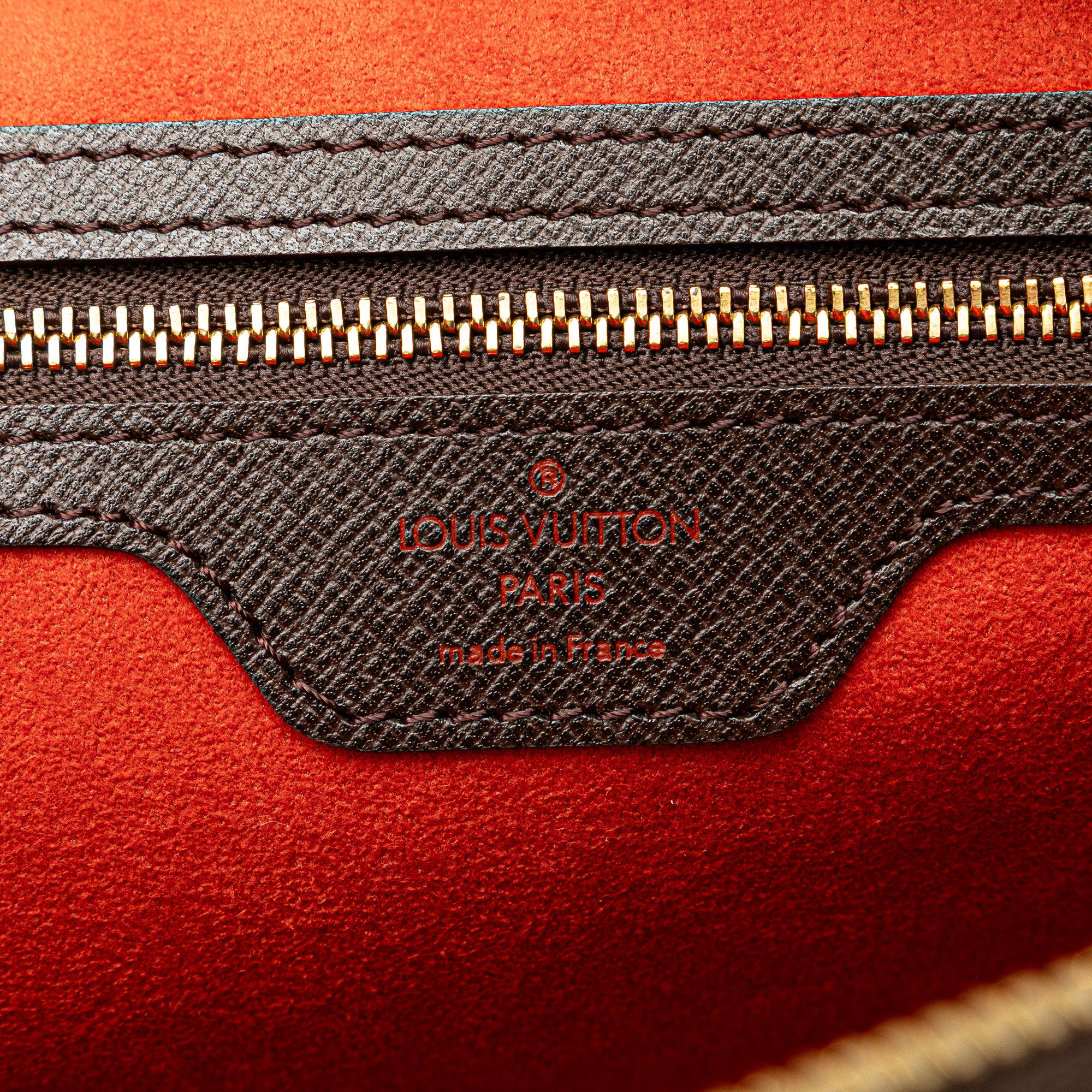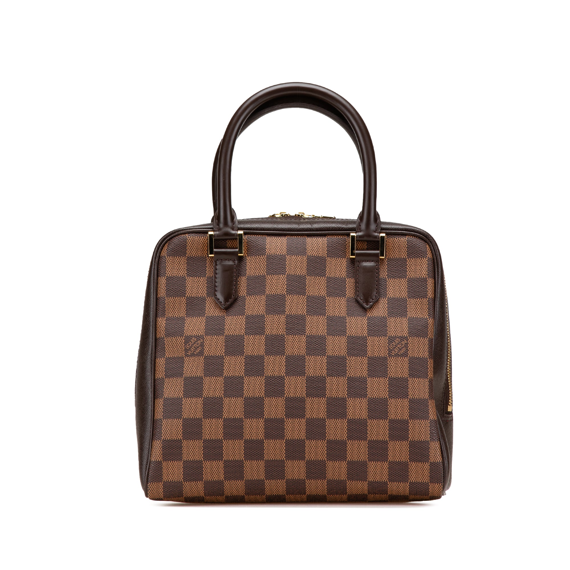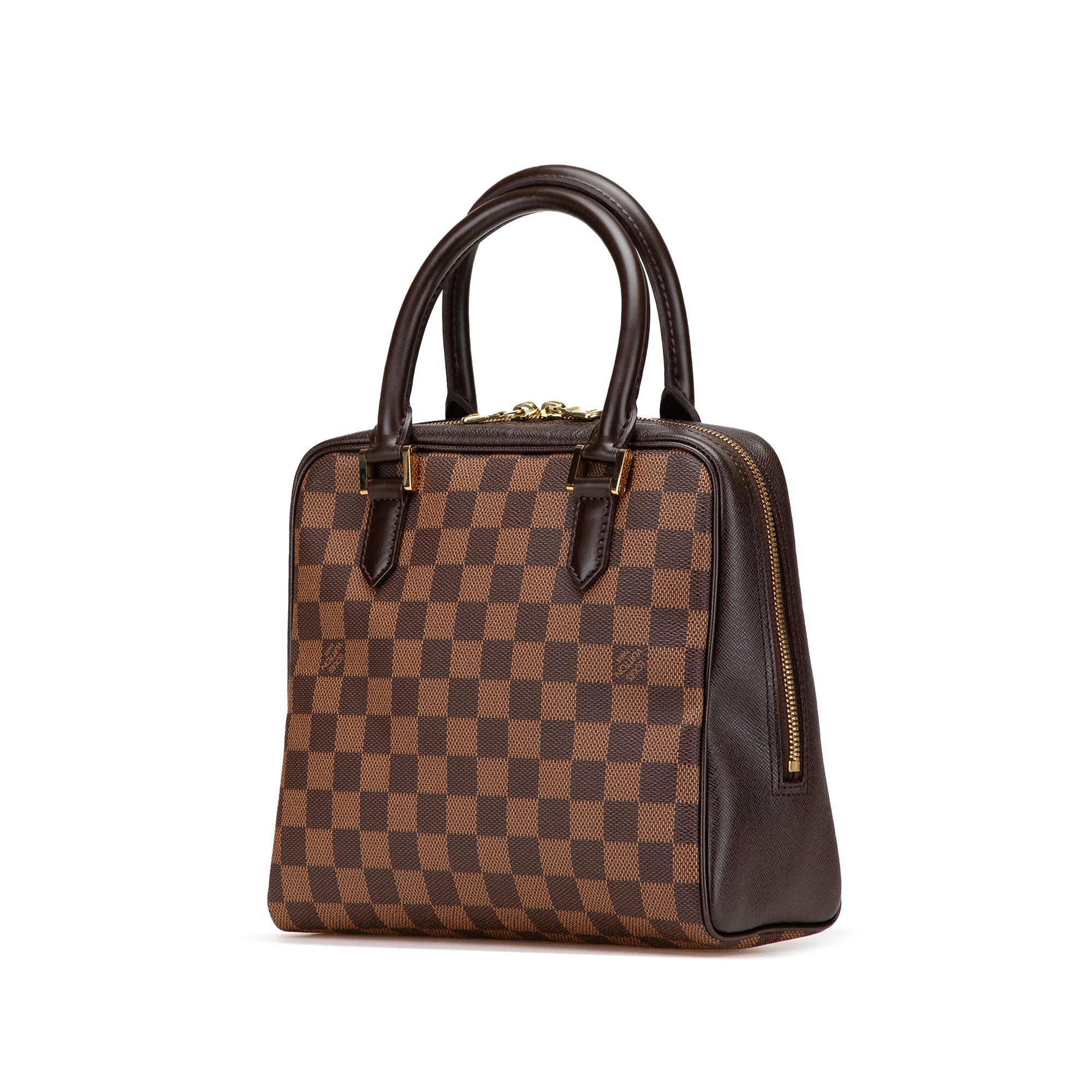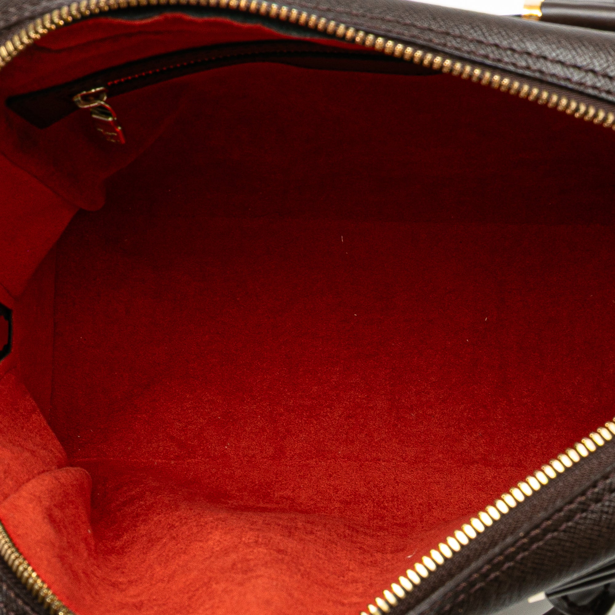 The Brera features a damier ebene canvas body with leather trim, rolled leather handles, a top zip closure, and an interior zip pocket. Retail Price: 1135.00