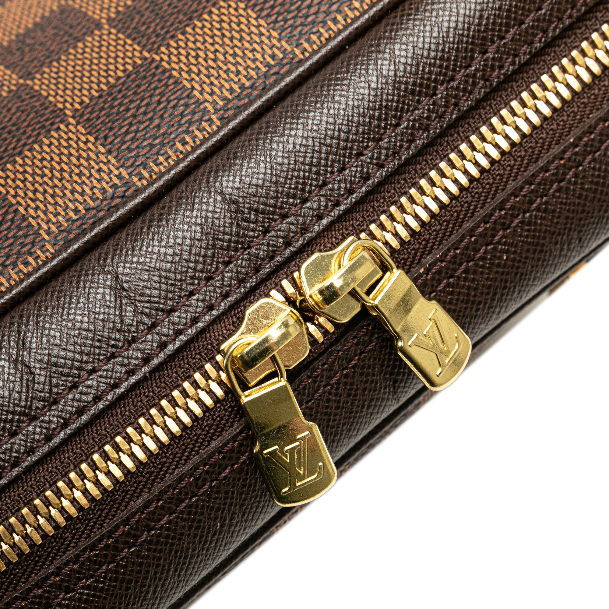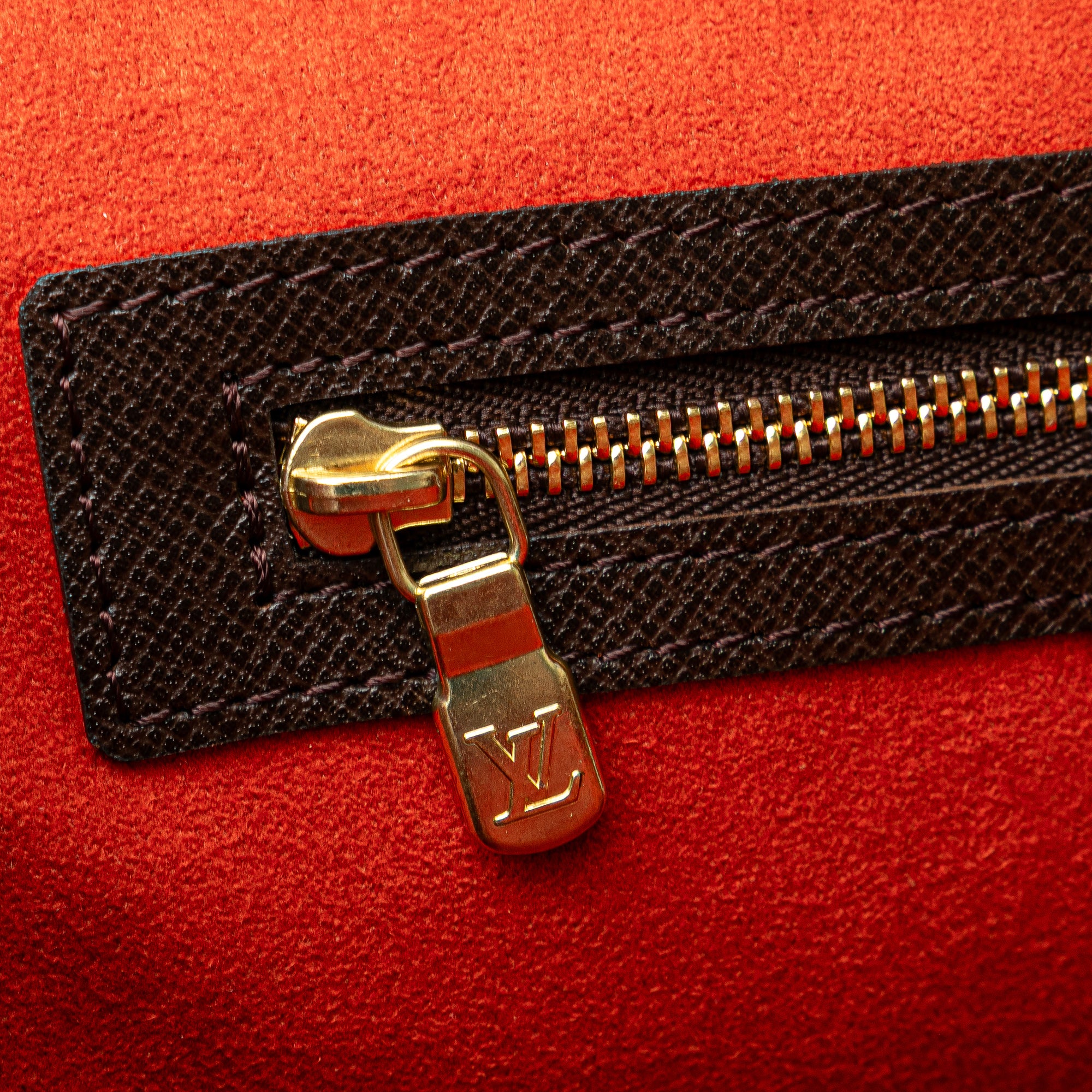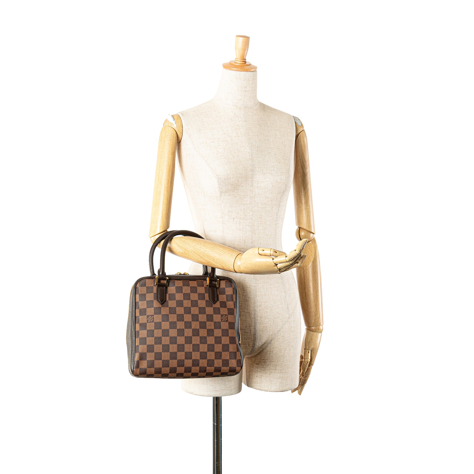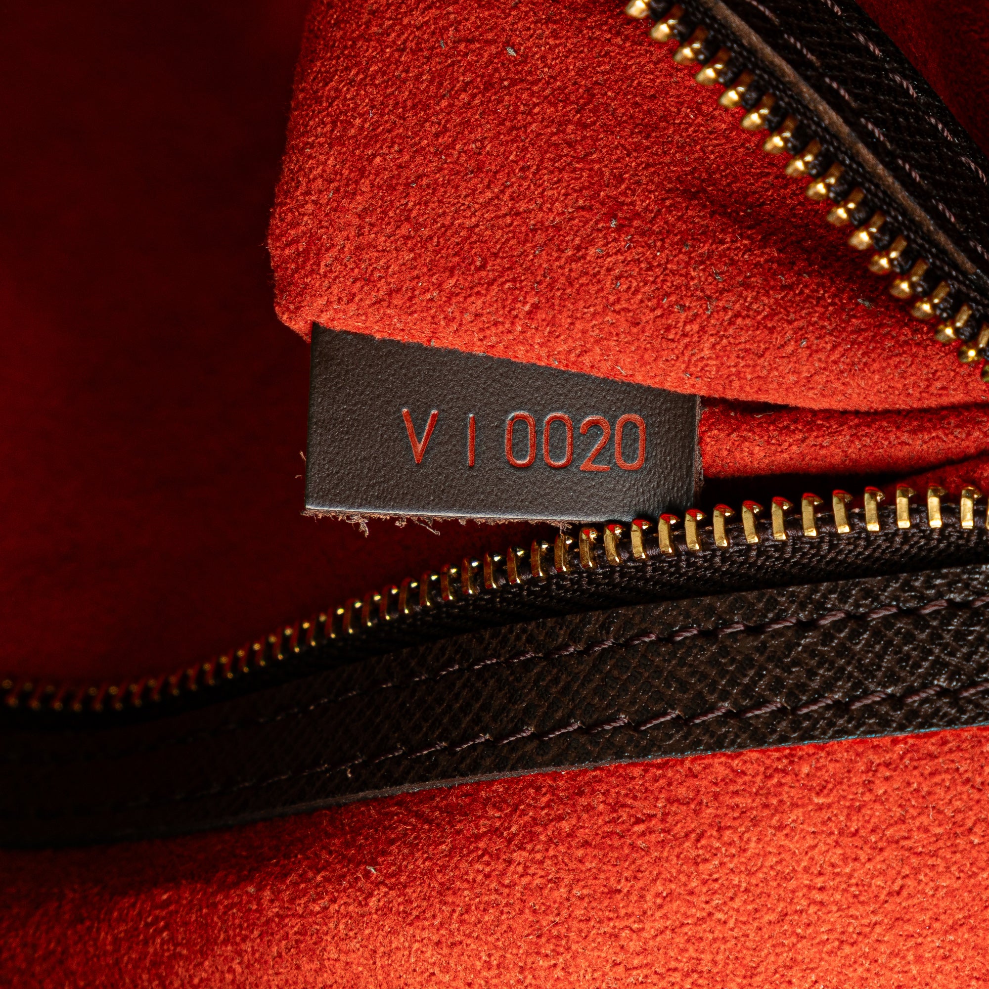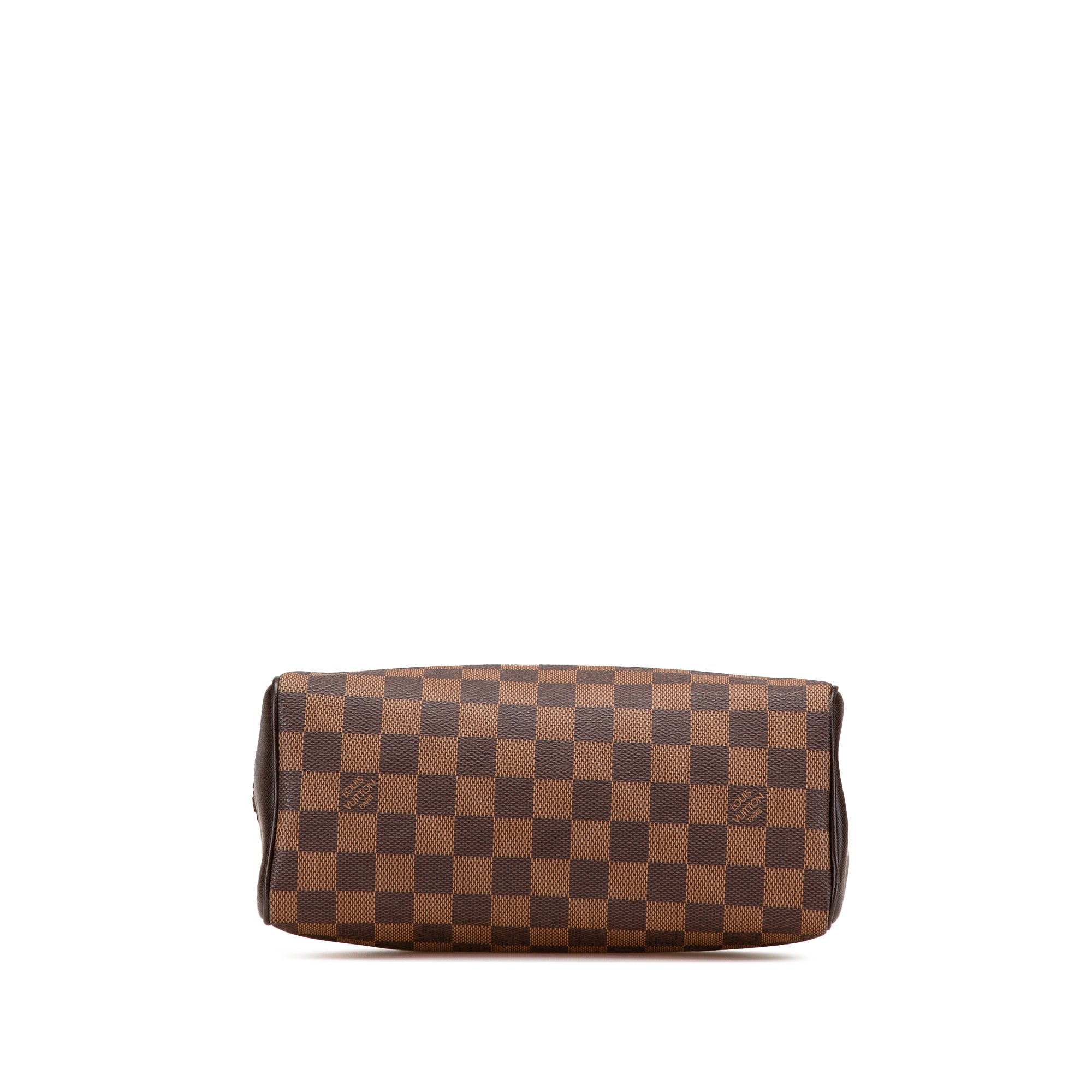 The Brera features a damier ebene canvas body with leather trim, rolled leather handles, a top zip closure, and an interior zip pocket. Retail Price: 1135.00