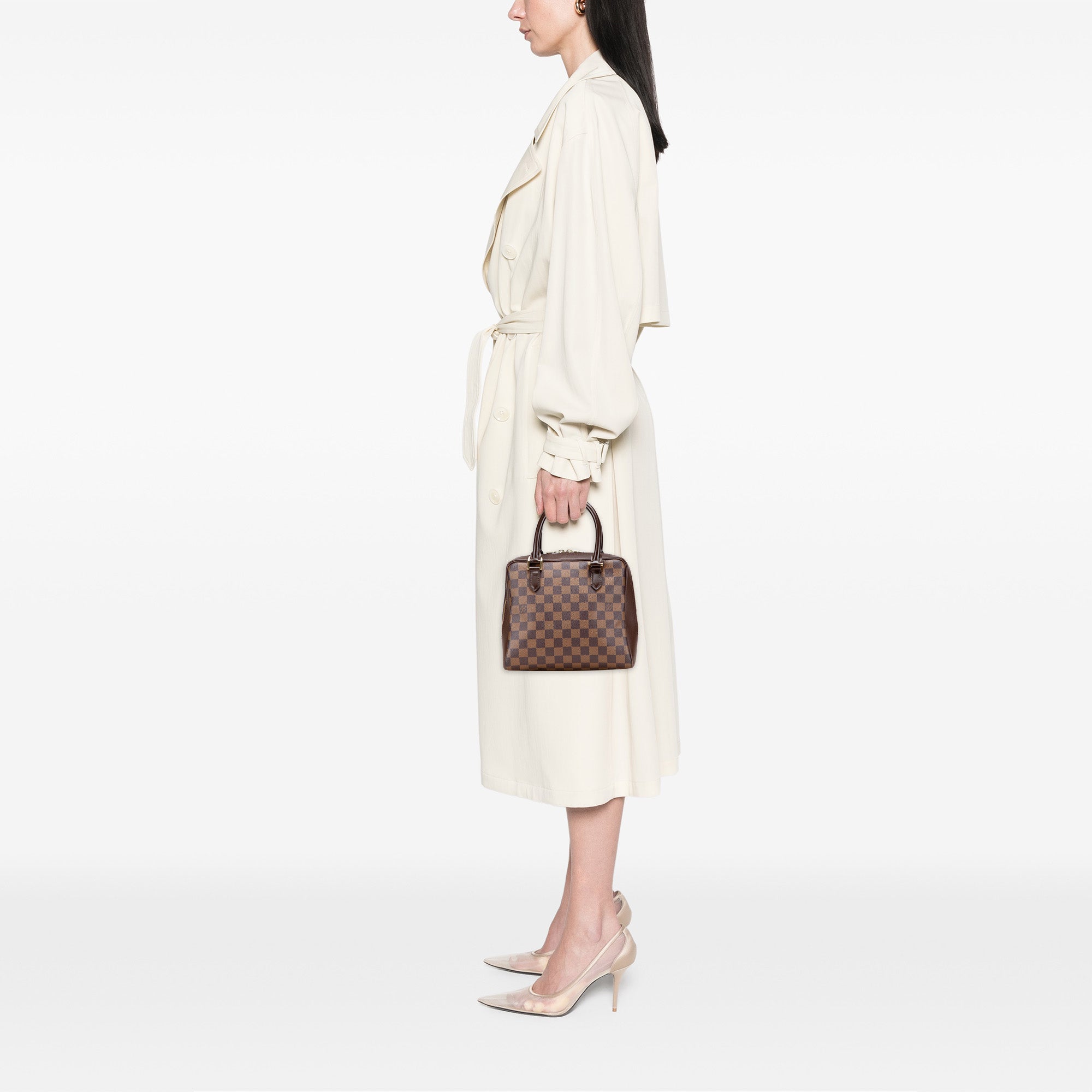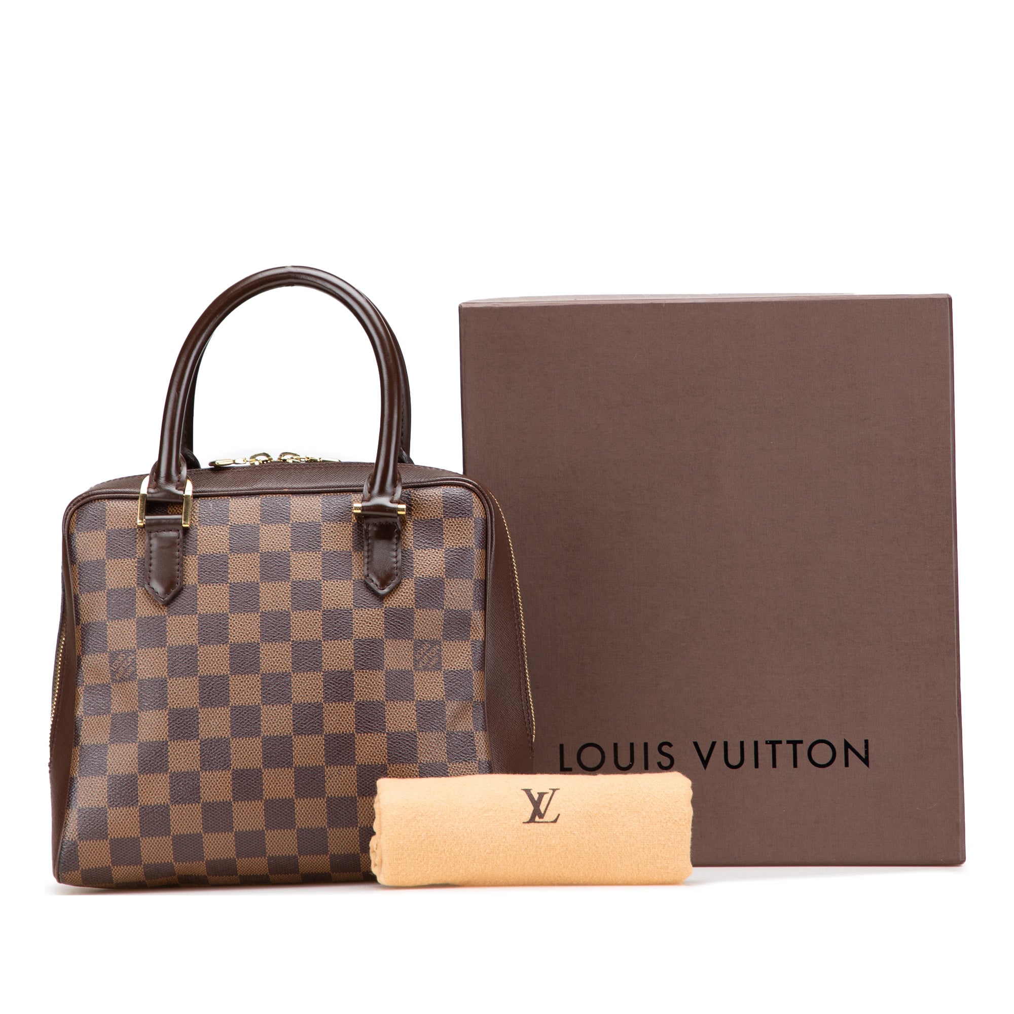 The Brera features a damier ebene canvas body with leather trim, rolled leather handles, a top zip closure, and an interior zip pocket. Inclusion: Dust bag, box. Retail Price: 1040.00