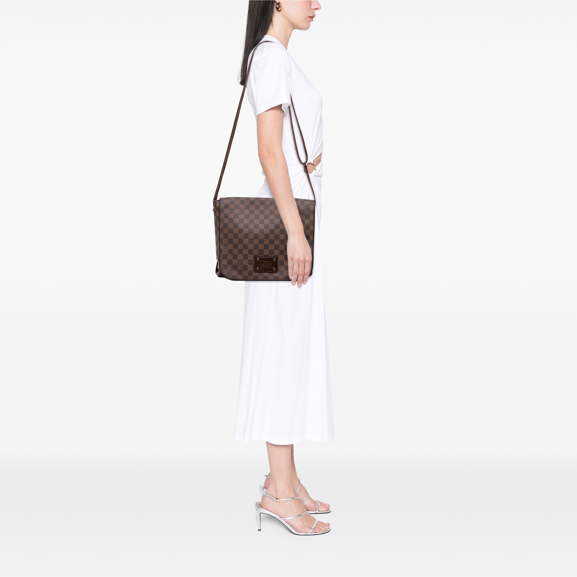 The Brooklyn features a damier canvas body, an adjustable flat strap, a front flap with magnetic closure, an exterior back zip pocket, and interior slip pockets. Retail Price: 1385.00