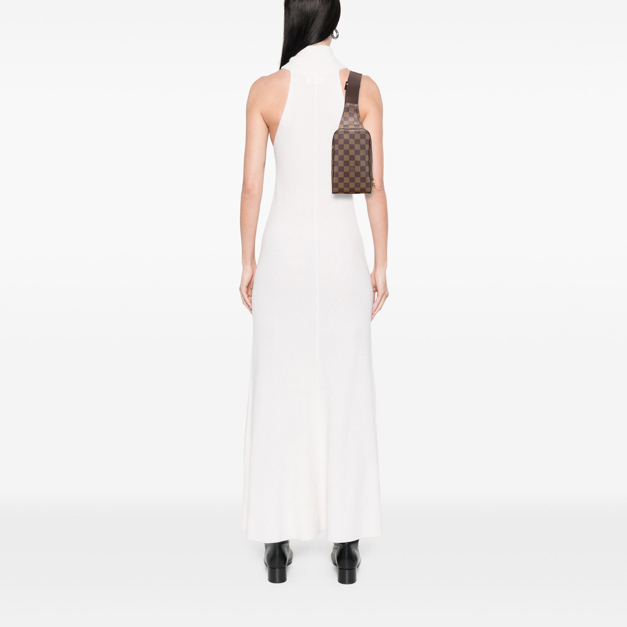 The Geronimos features a damier canvas body, an adjustable flat strap, a top zip closure, and an exterior front slip pocket. Retail Price: 1605.00