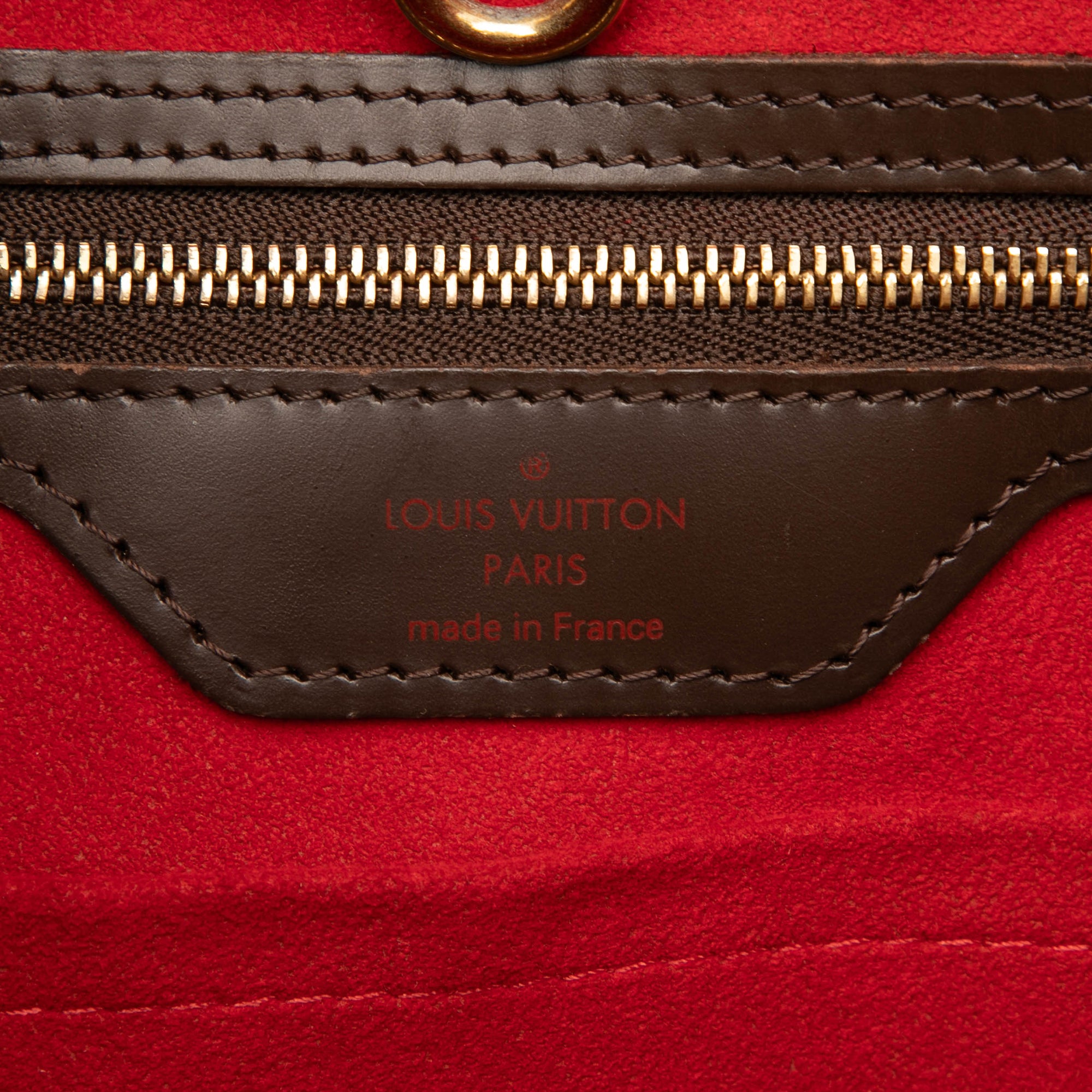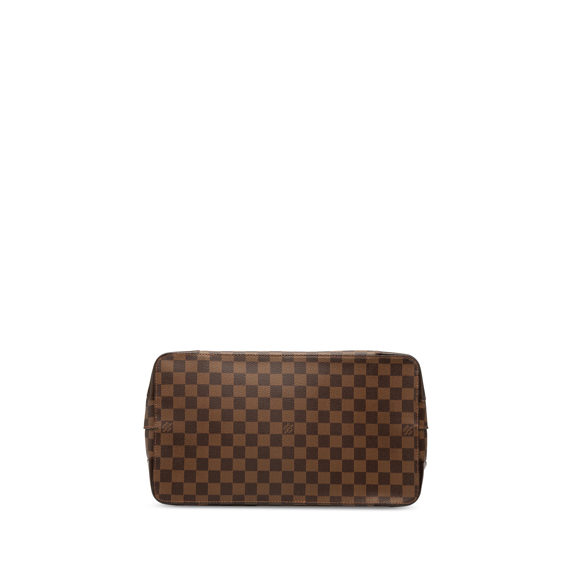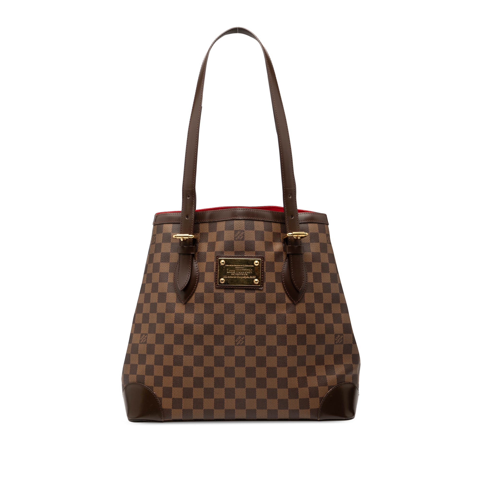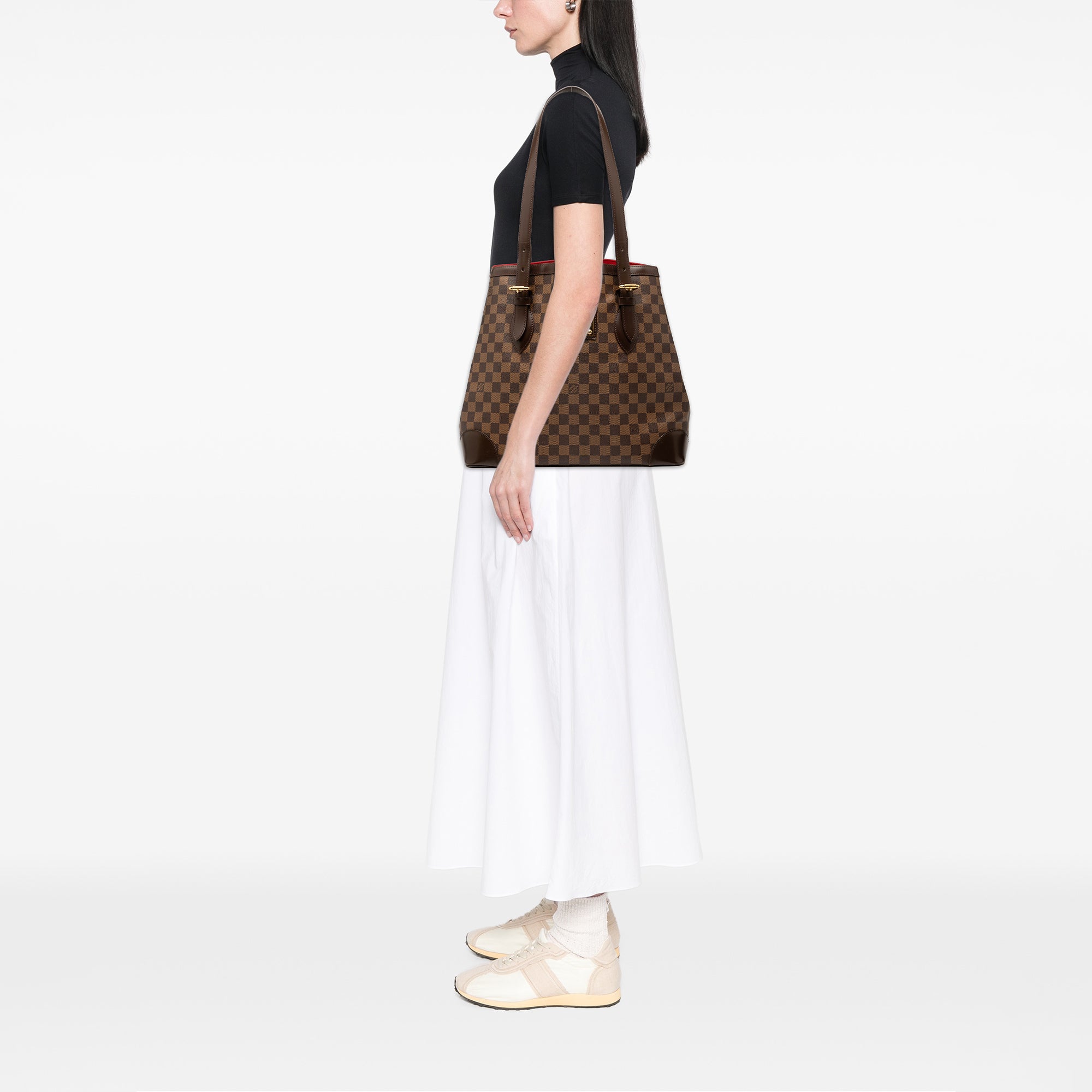 The Hampstead GM features a damier canvas body with leather trim, adjustable flat leather shoulder straps, an open top with hook closure, and interior zip and slip pockets. Retail Price: 1470.00