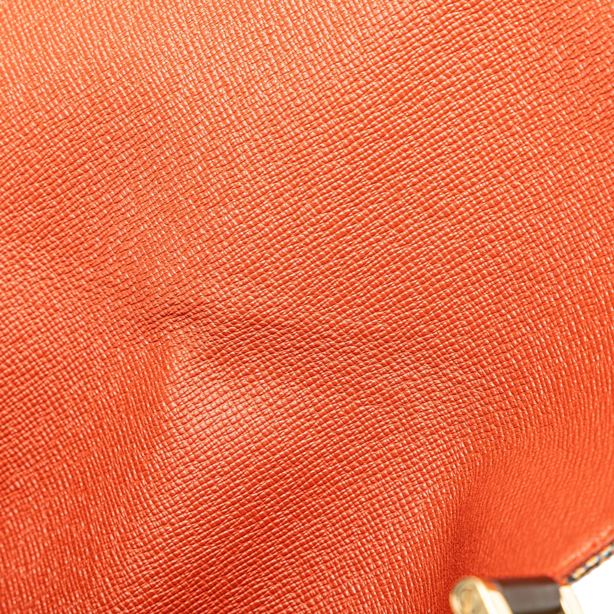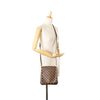 The Musette Salsa features a damier ebene canvas body, an adjustable flat leather shoulder strap, a flap with magnetic snap closure, and an interior slip pocket. Retail Price: 1080.00