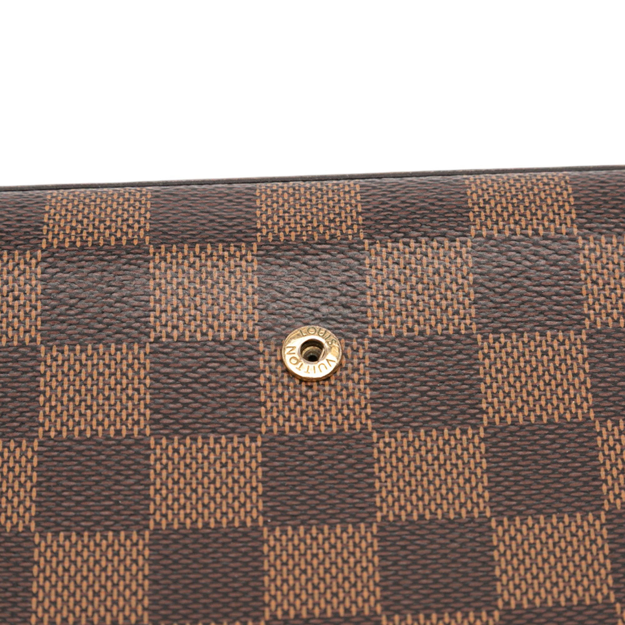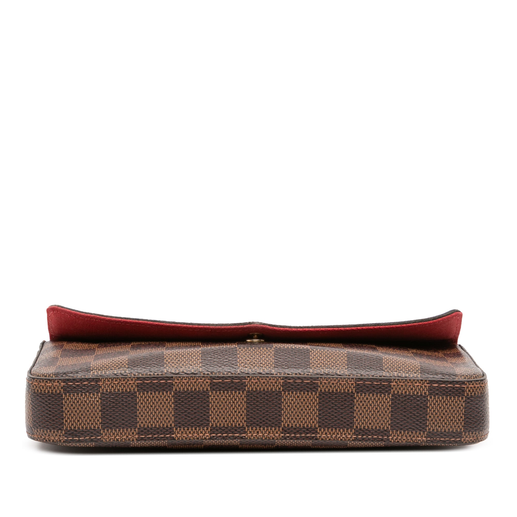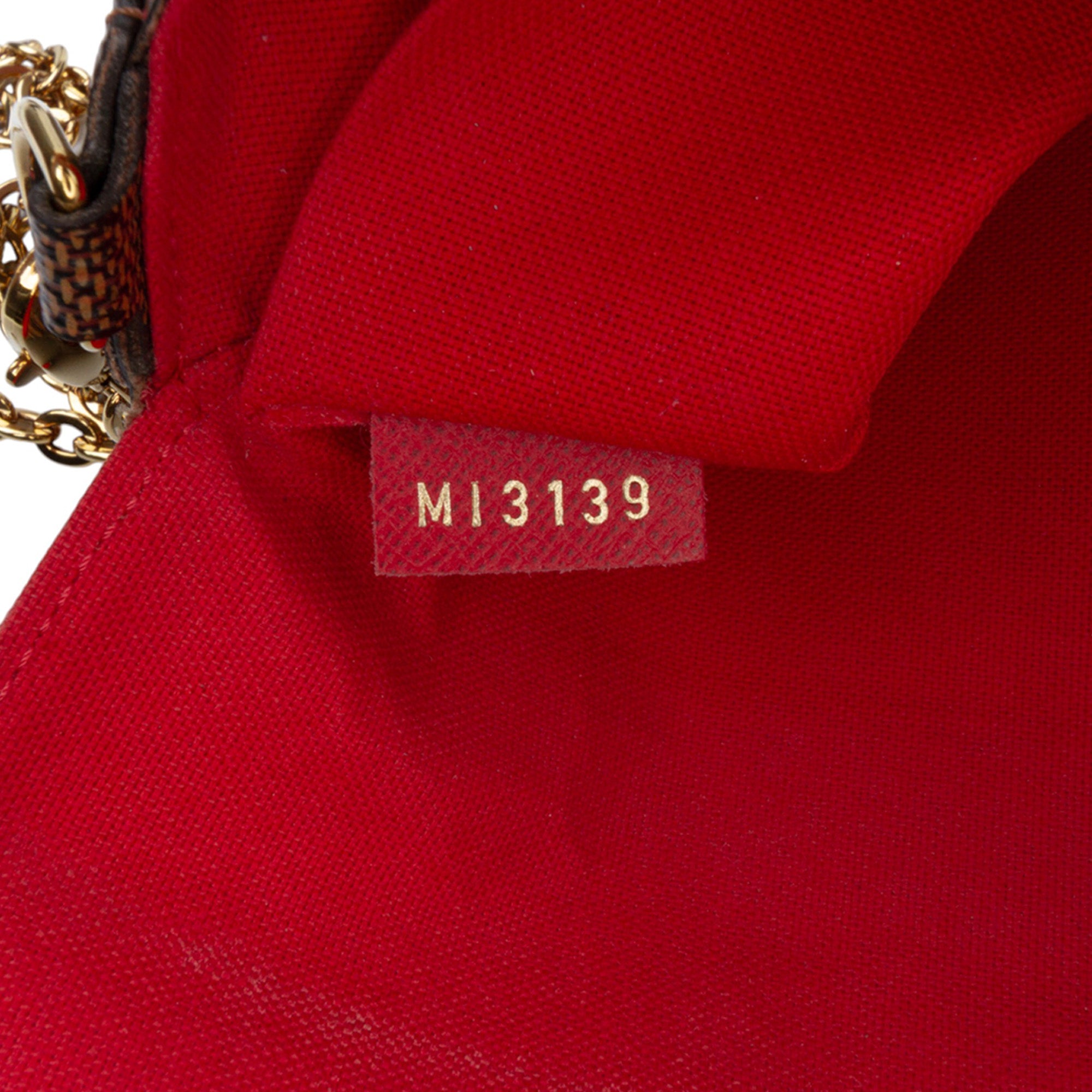 The Pochette Felicie features a damier ebene canvas body, a detachable chain link shoulder strap, a flap with a snap button closure, an interior slip pocket, and pouch inclusions. Inclusion: Dust bag, box. Retail Price: 1790.00