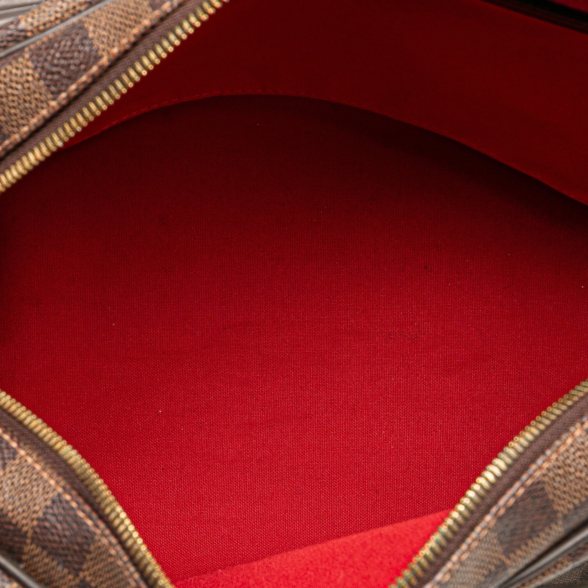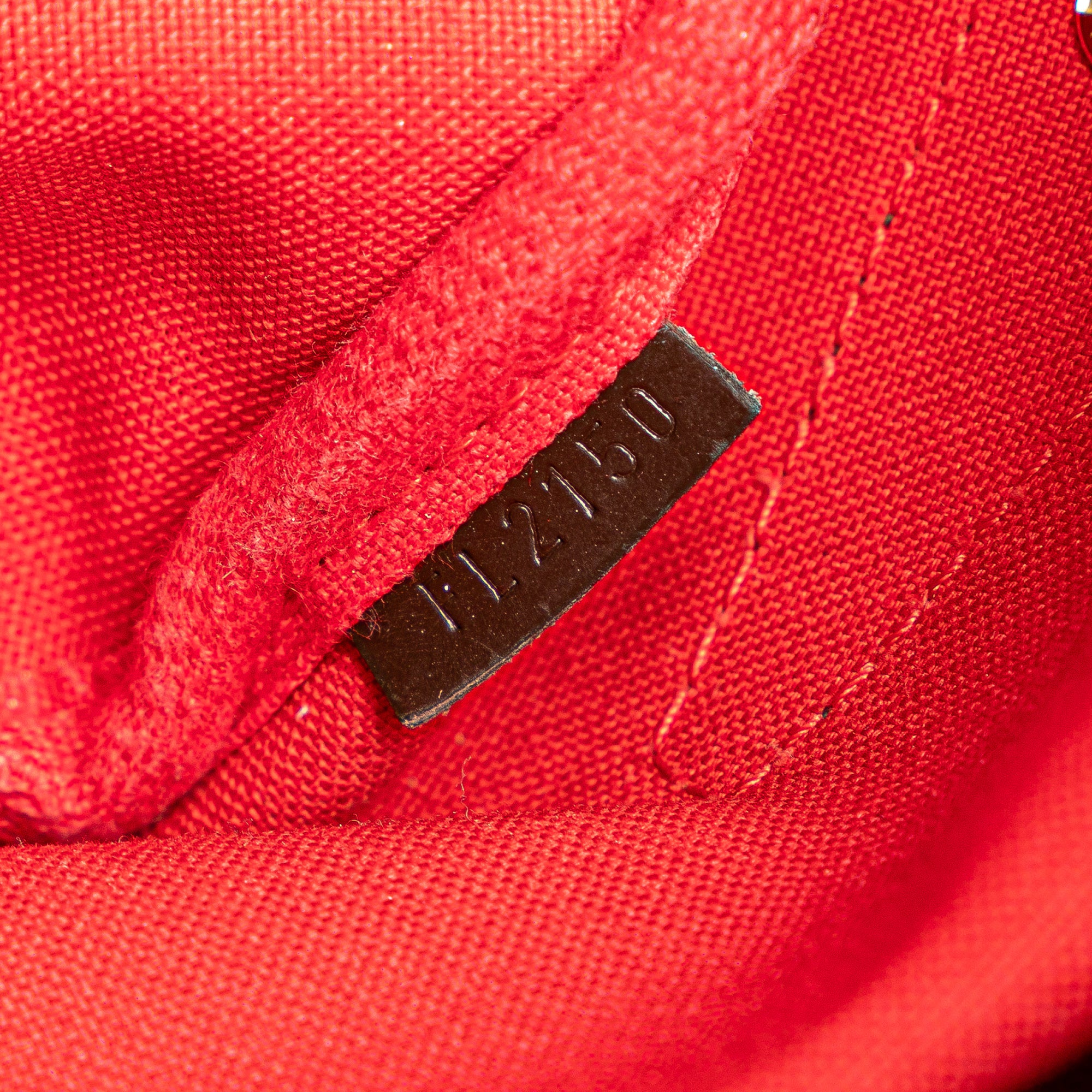 The Rivington GM features a damier ebene canvas body with leather trim, flat leather straps, a two-way top zip closure, and an interior slip pocket. Retail Price: 1500.00
