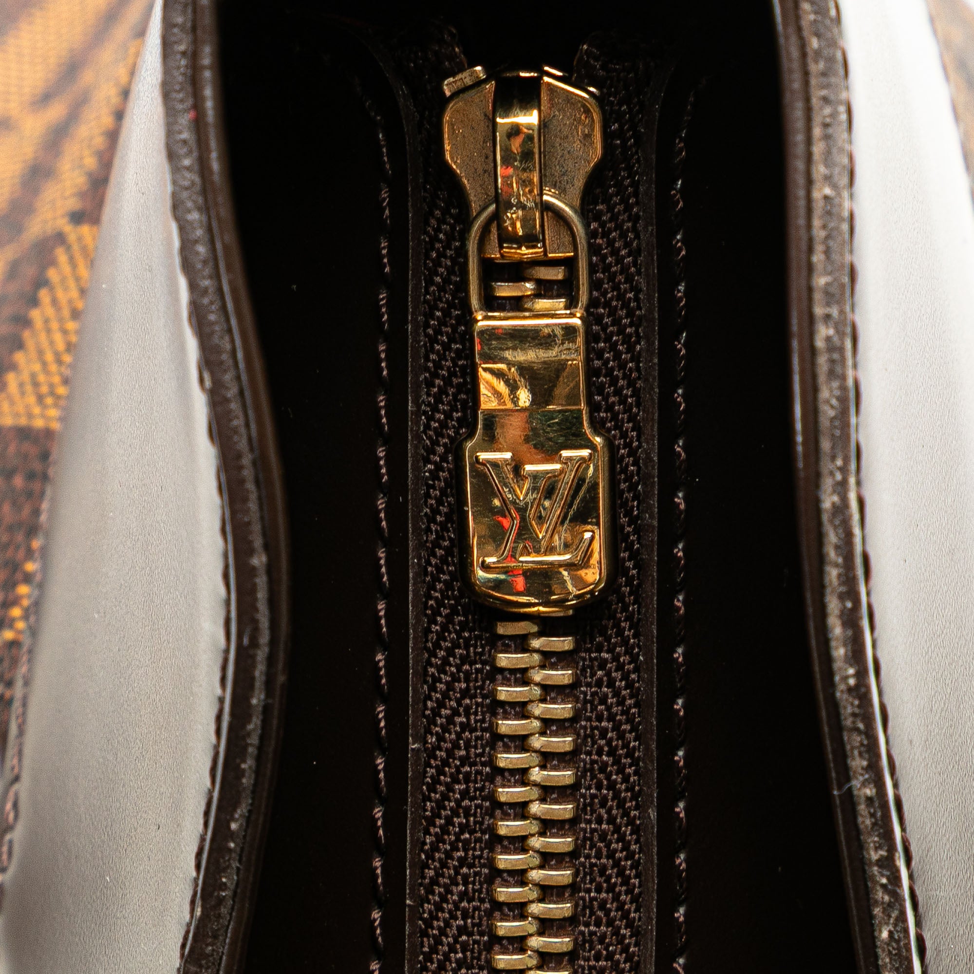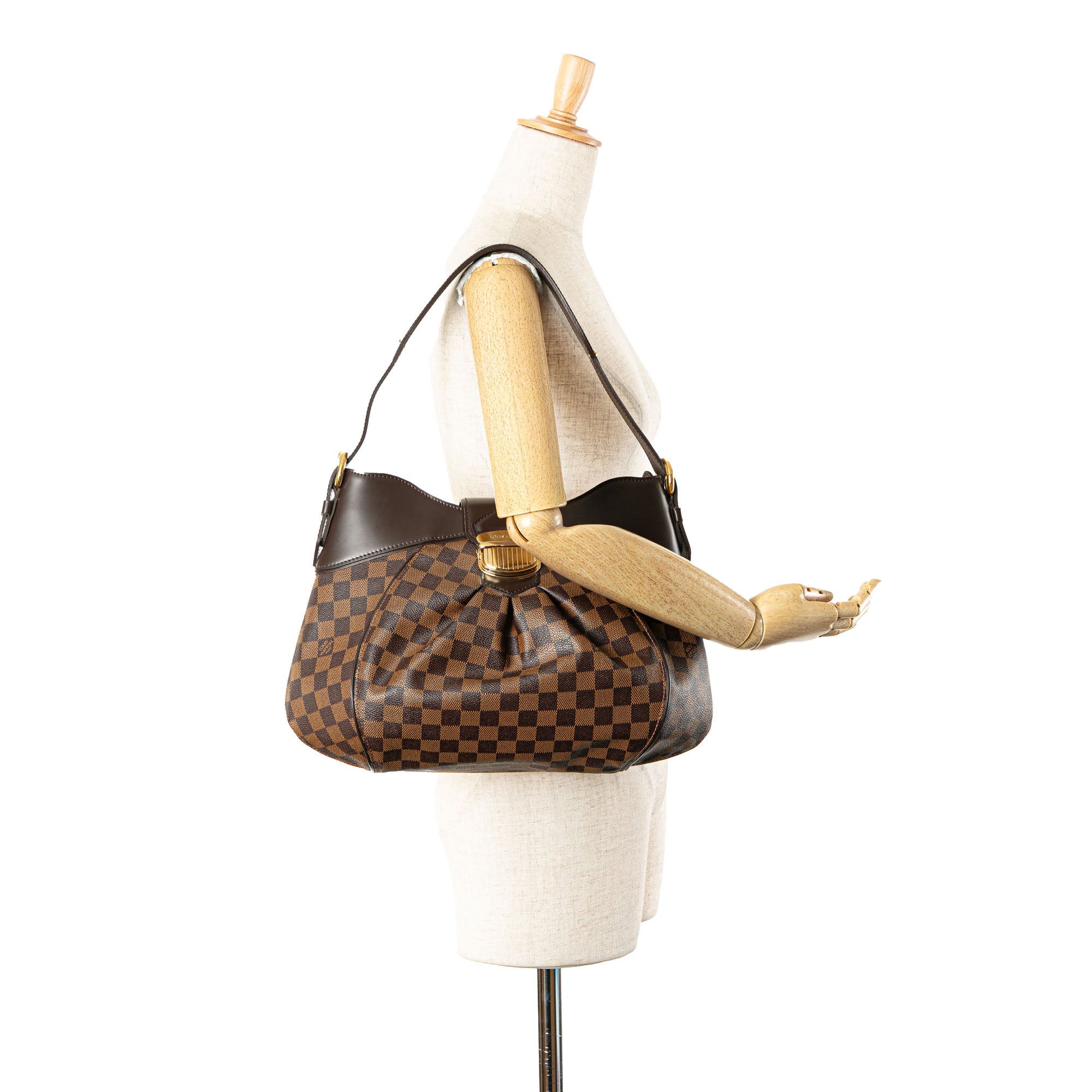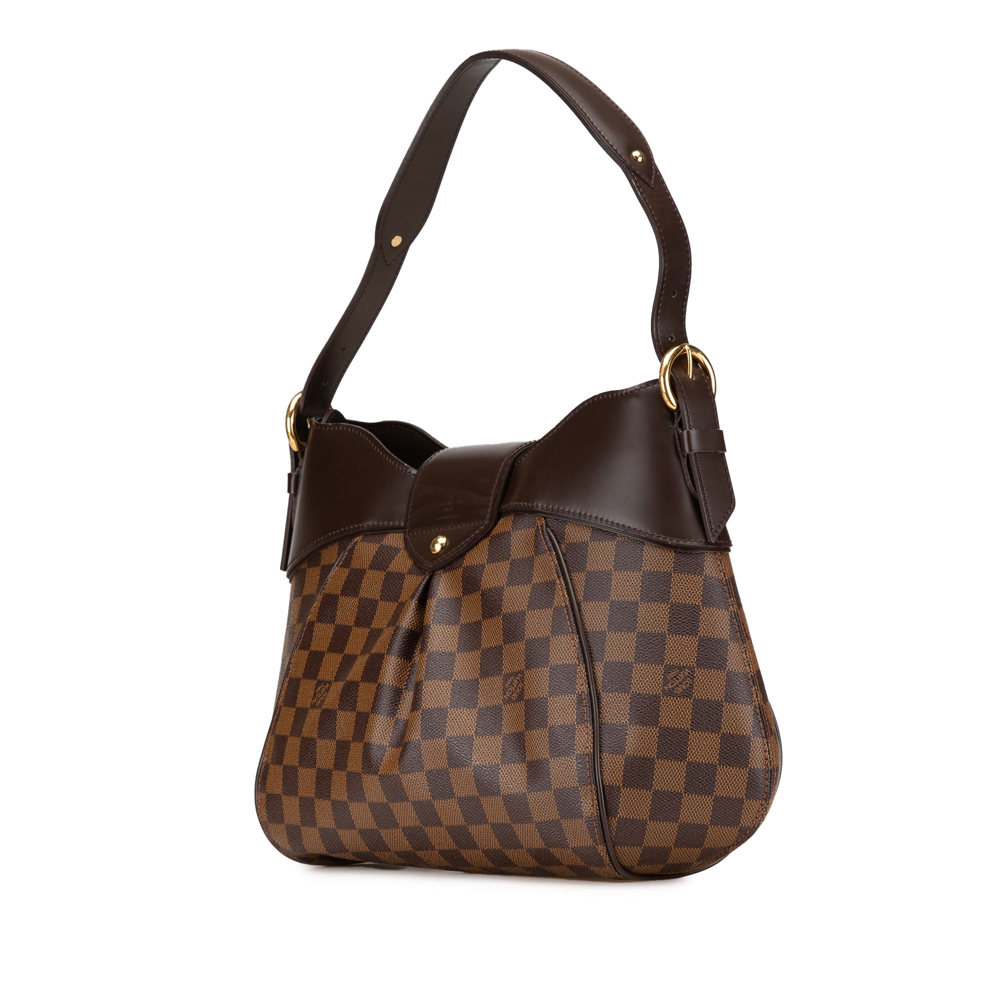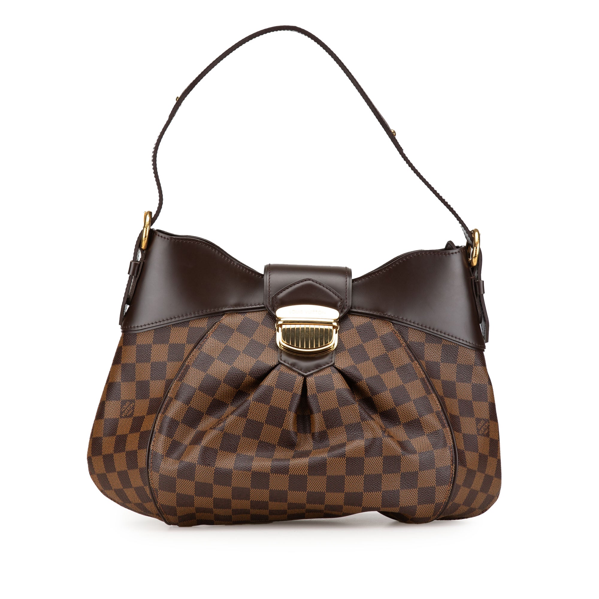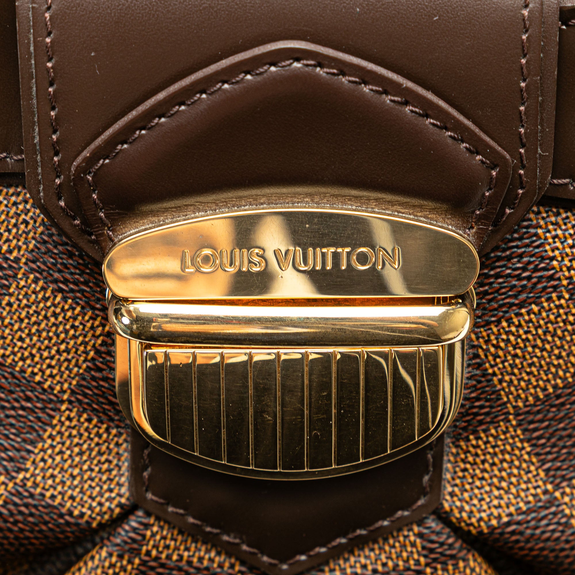 The Sistina MM features a damier ebene canvas body with leather trim, a flat leather strap, a front strap with push lock closure, a zip closure, and interior slip pockets. Inclusion: Dust bag. Retail Price: 2380.00
