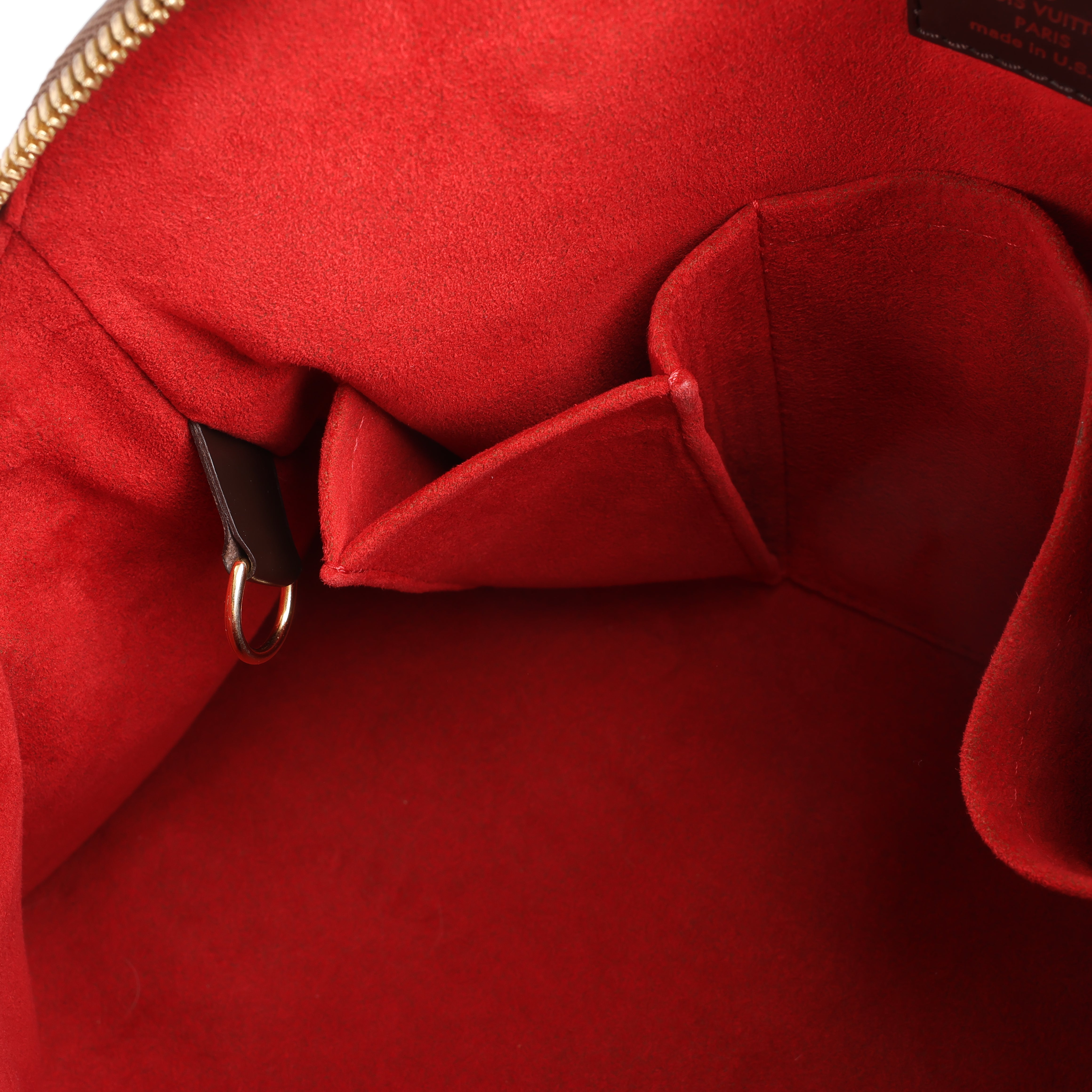 Brand: Louis VuittonModel: Trevi Size: PMWidth: 33.5 cmHeight: 28 cmExterior Condition: Excellent Interior Condition: ExcellentCondition Details: The exterior canvas is clean and in exellent condition. The leather handles and trim are in great condition, but has scratches. Note: The shoulder strap is missing. The hardware is bright and crisp with hairline scratches. The interior is overall in excellent condition. Date code: SD4048Colour: BrownInterior Colour: RedHardware Colour: GoldMaterial: LeatherComes With: -