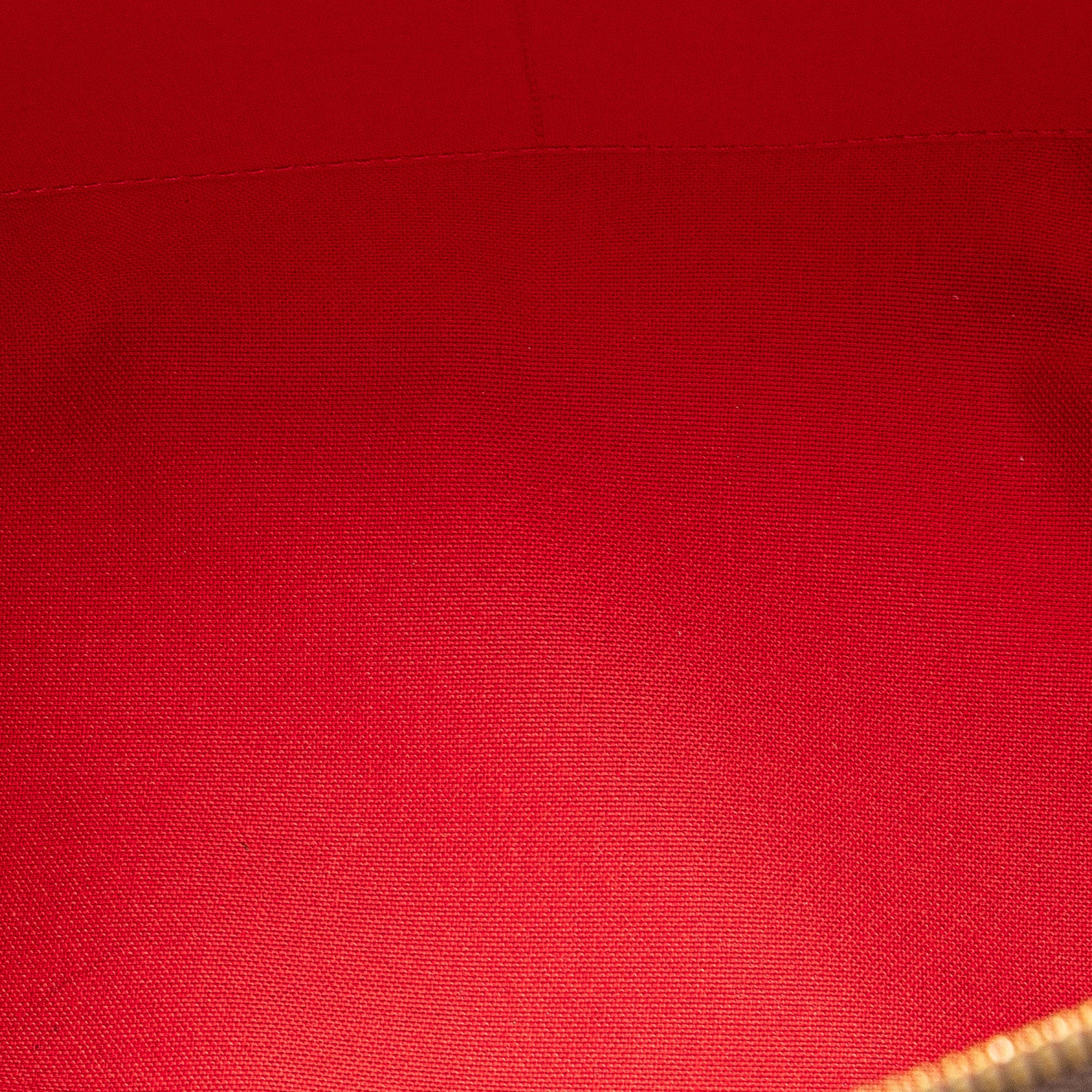 The Westminster features a damier ebene canvas body with leather trim, flat leather straps, a top zip closure, and interior slip pockets. Retail Price: 1650.00