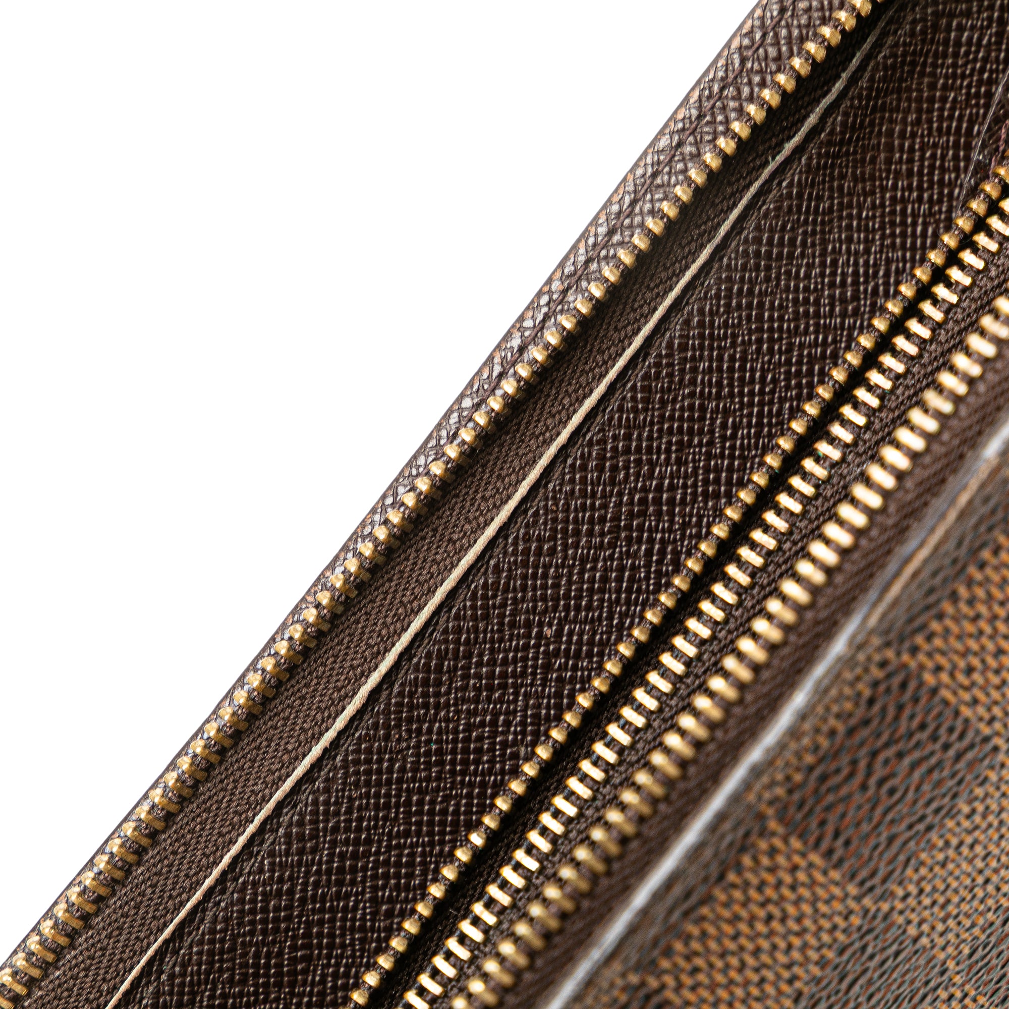 This wallet features a damier canvas body, a zip-around closure, and interior zip and slip pockets. Retail Price: 890.00