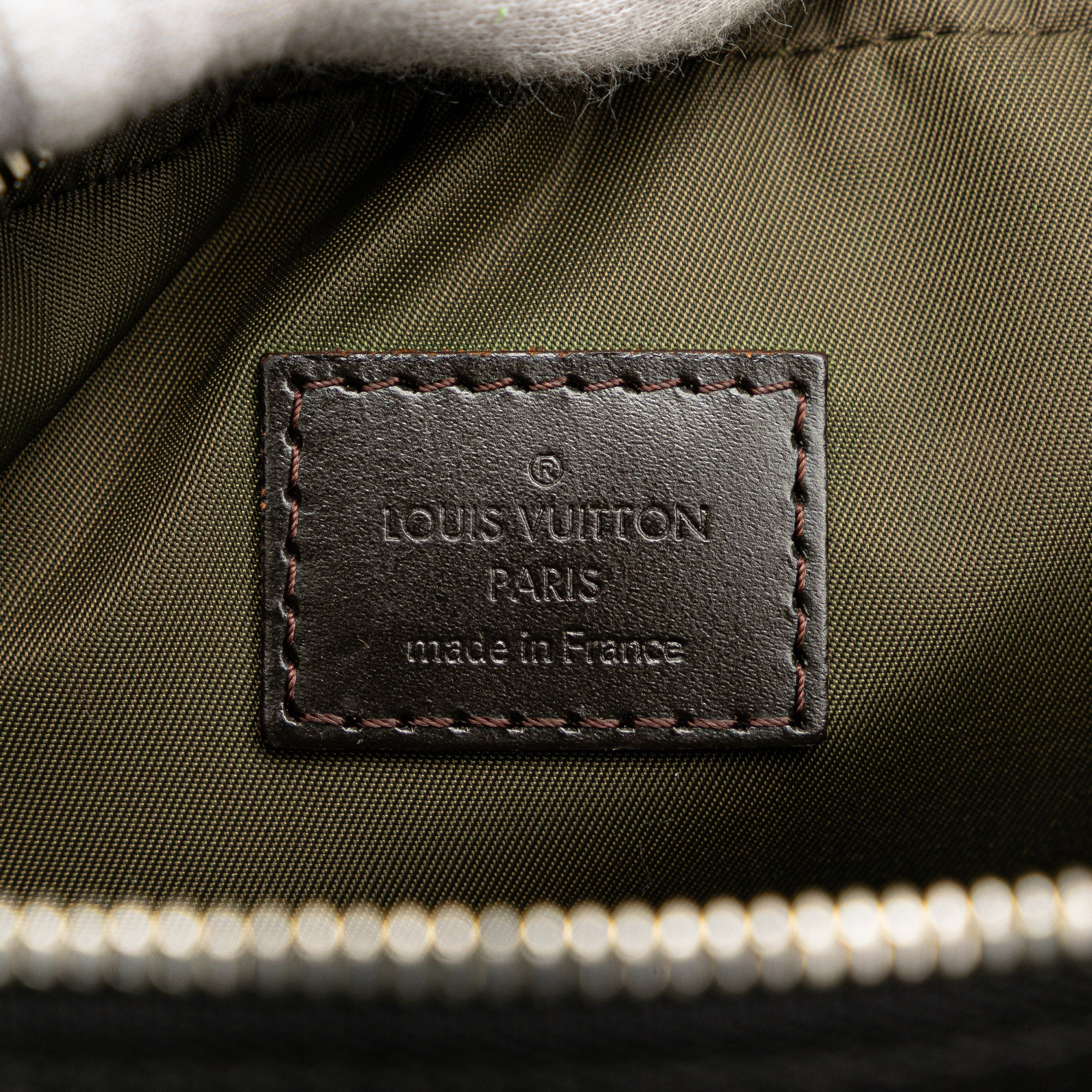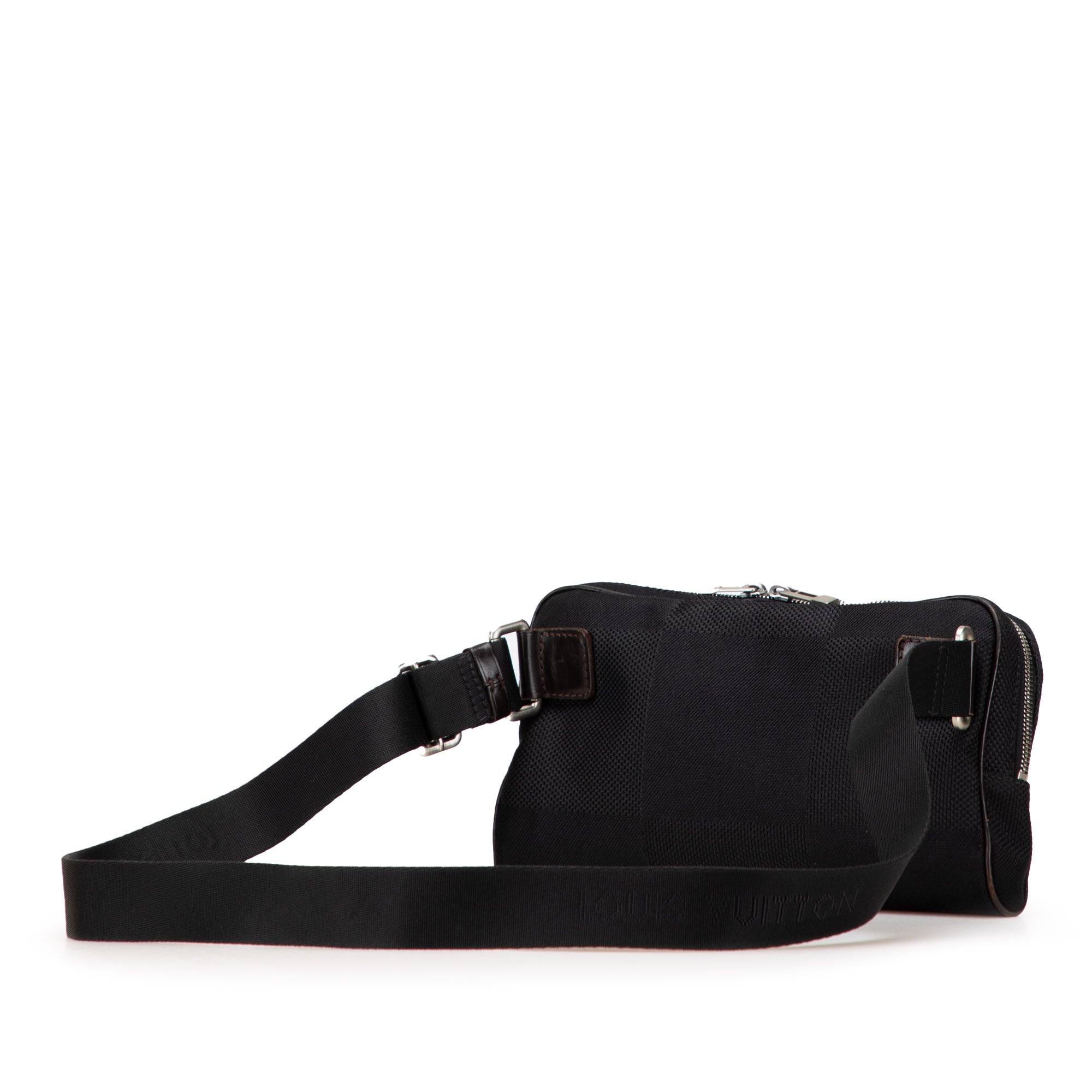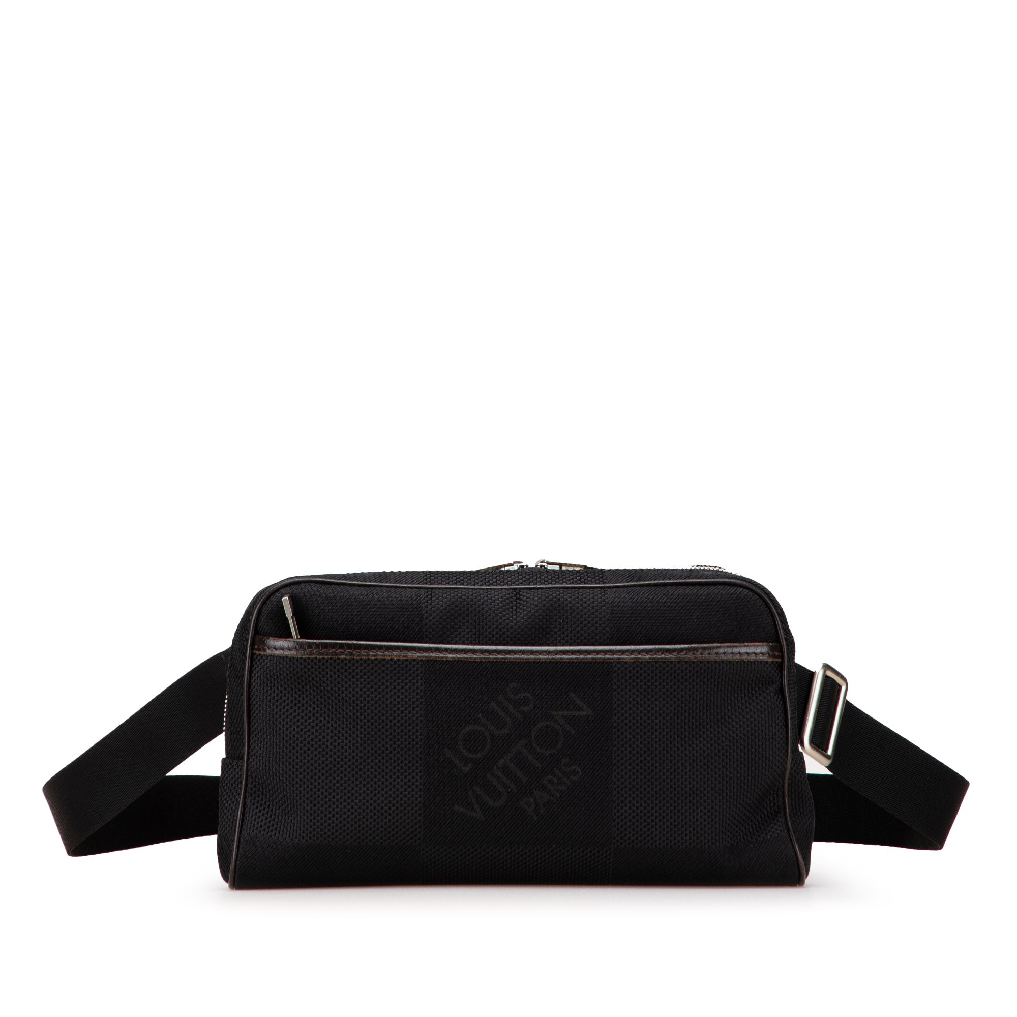 The Acrobat features a damier geant canvas body with leather trim, an adjustable flat waist strap, a top zip closure, an exterior zip pocket, and an interior zip pocket. Retail Price: 1240.00