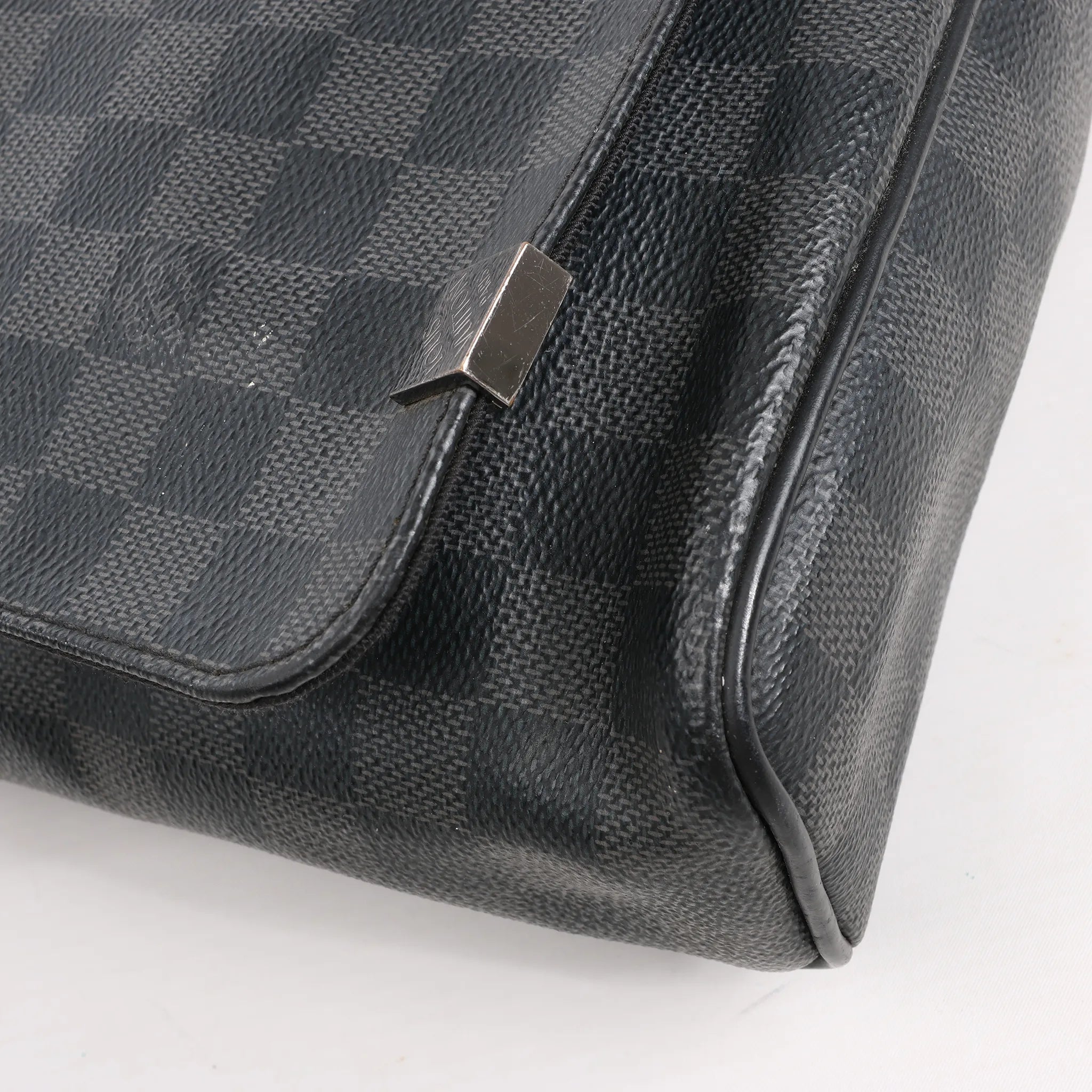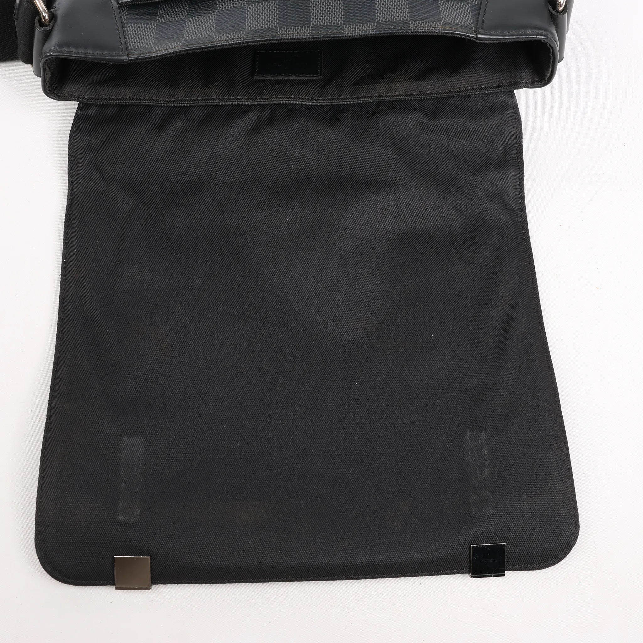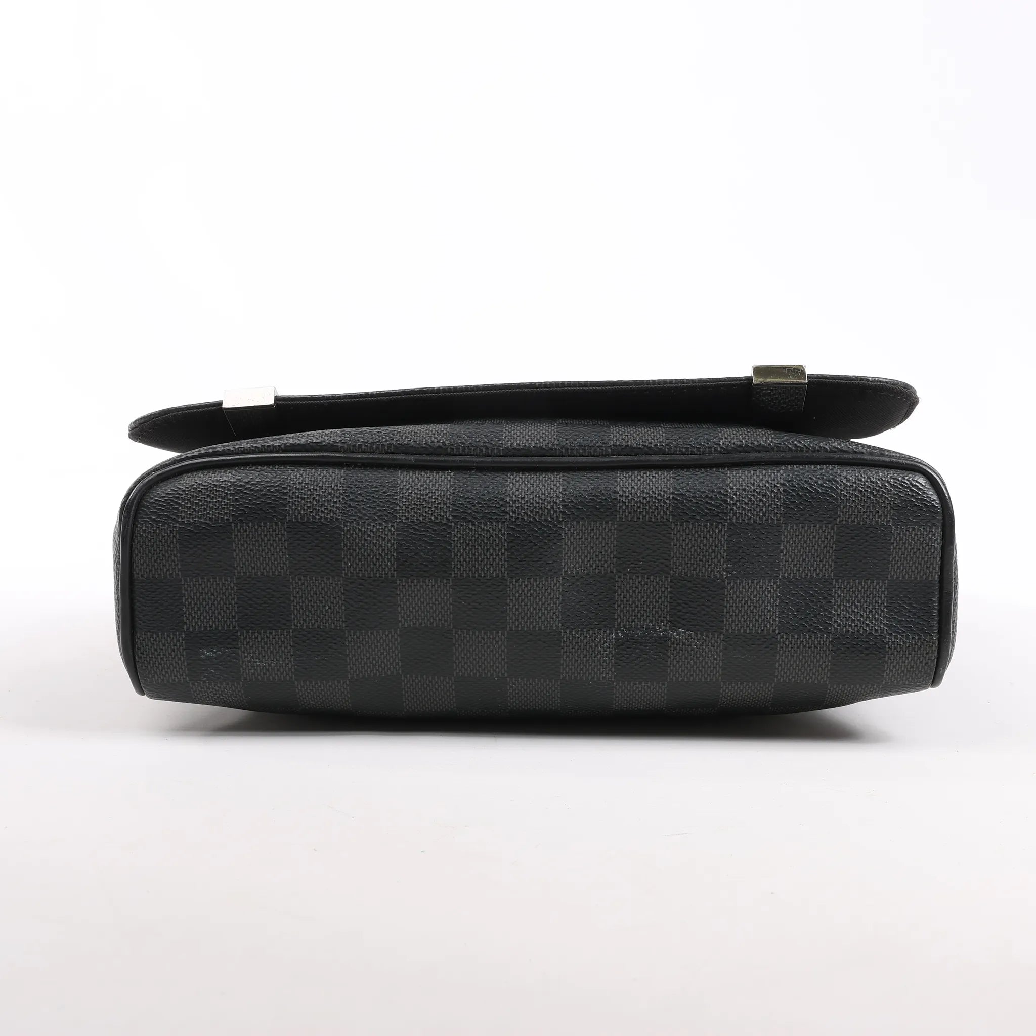 The Louis Vuitton Damier Graphite District PM Messenger Bag (N41028) delivers sleek urban style with everyday function. Crafted from black checkered coated canvas, it features a flap closure, textile-lined interior, and adjustable strap—perfect for on-the-go essentials.Brand: Louis VuittonModel: DistrictSize: PMWidth: 24.5 cmHeight: 20 cmExterior Condition: ExcellentInterior Condition: ExcellentCondition Details: The exterior coated canvas is clean and beautiful and in excellent condition, except a scratch at the front flap. The strap is very good condition. The hardware has scratches. The interior is in great condition, except some stains. The date code is CA0148.Colour: Gray, BlackInterior Colour: BlackHardware Colour: Gold Material: LeatherComes With: -