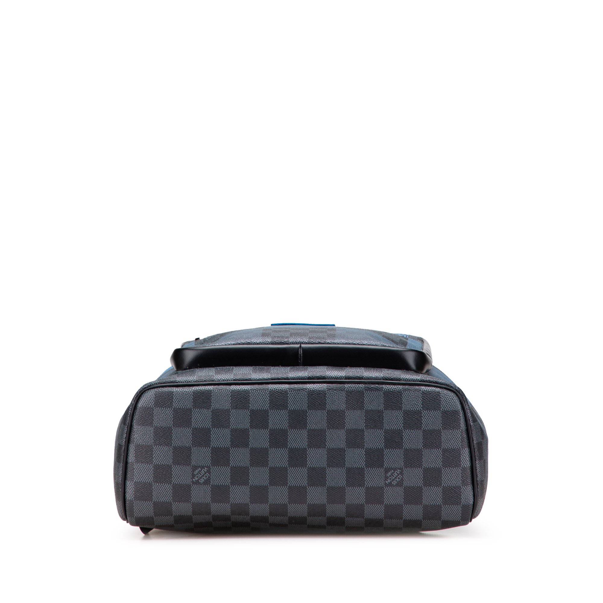The Josh backpack features a damier graphite canvas body with leather trim, a flat top handle, flat back straps, a top zip closure, an exterior front zip pocket, and interior slip pockets. Retail Price: 2260.00