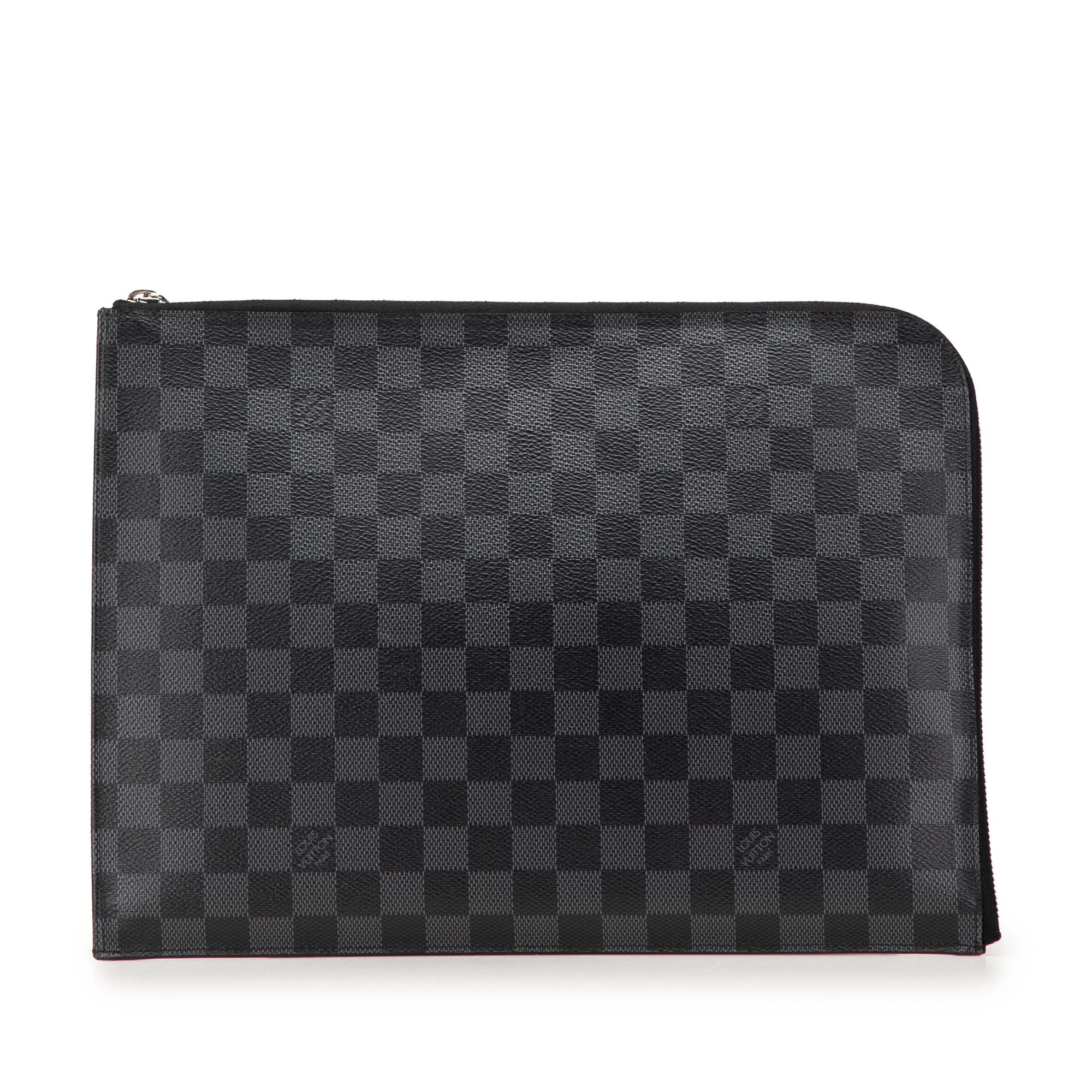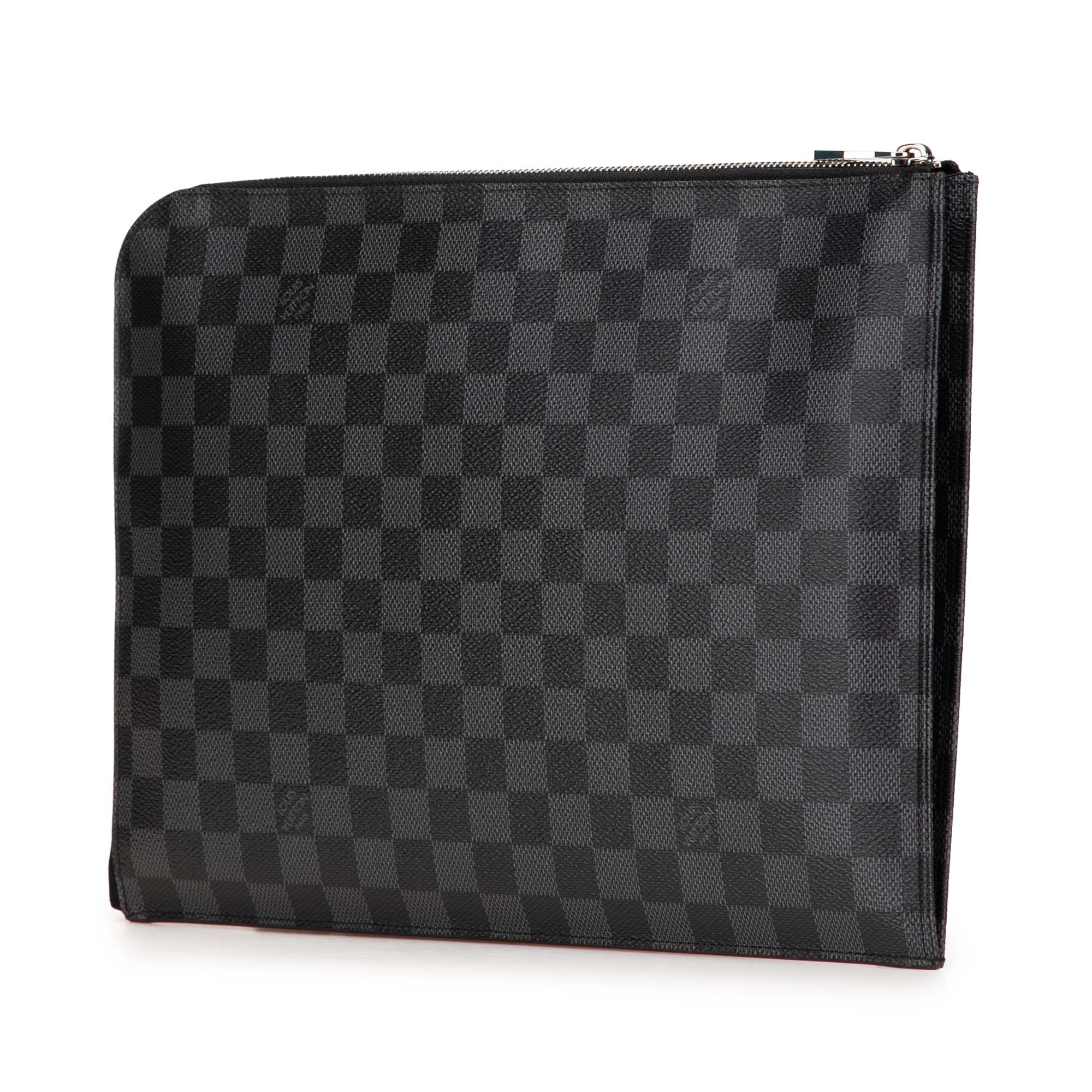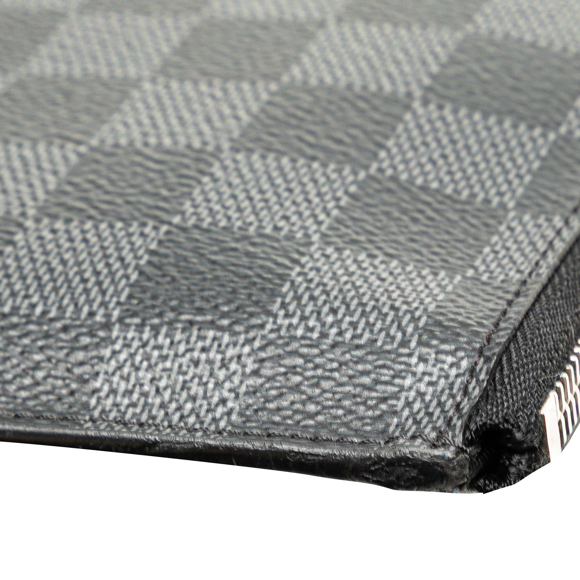 This clutch bag features a damier graphite canvas body, a top zip closure, and an interior slip pocket. Inclusion: box. Retail Price: 950.00