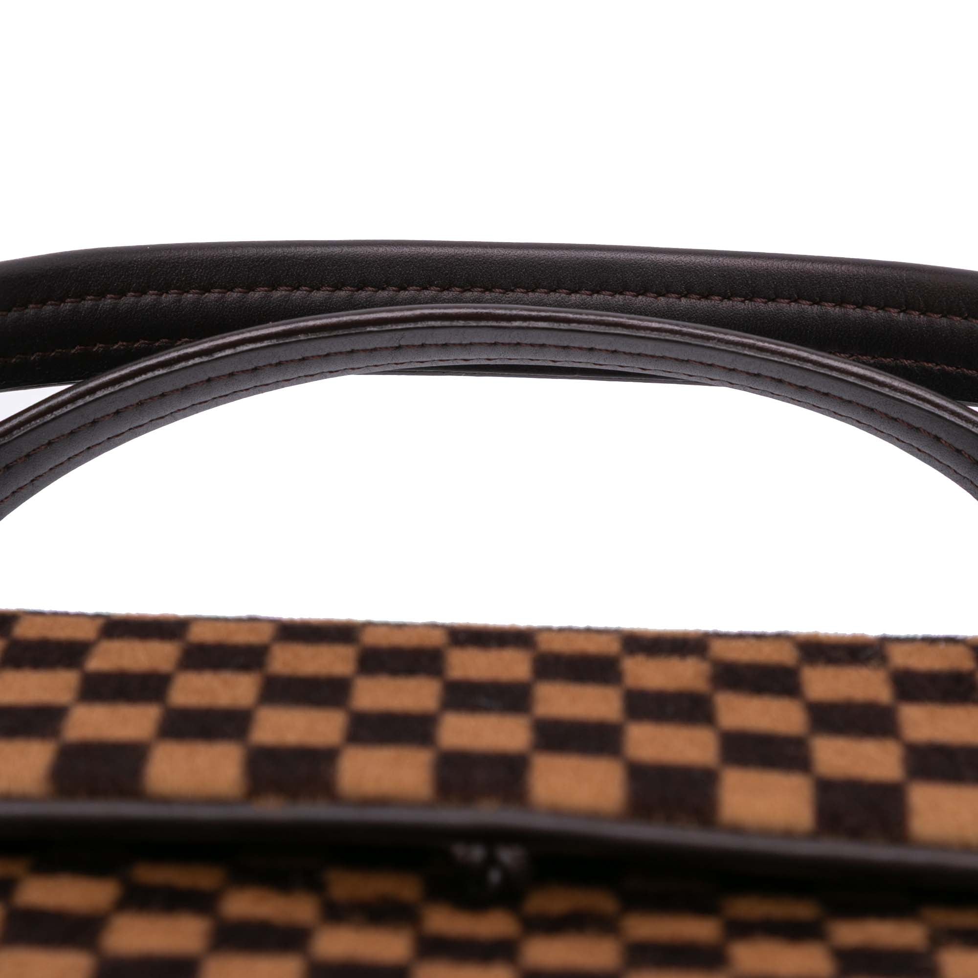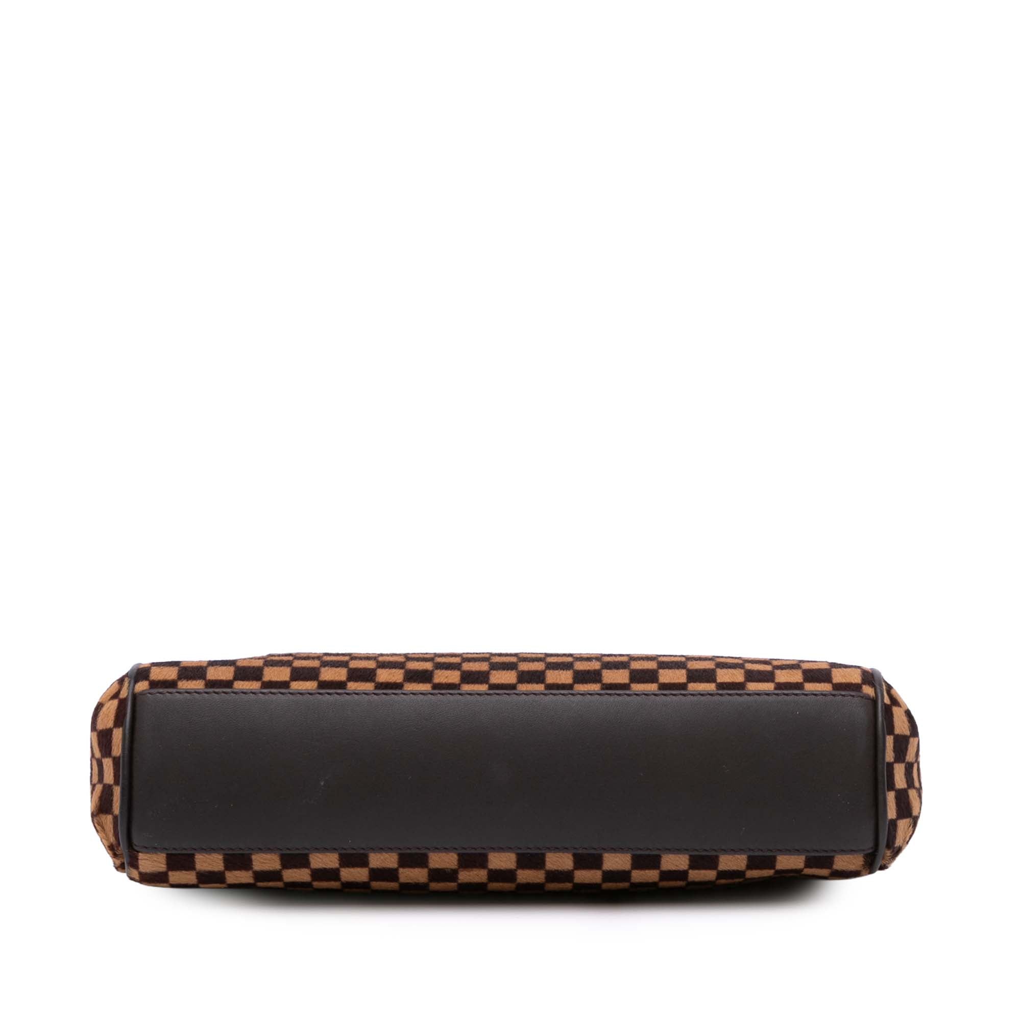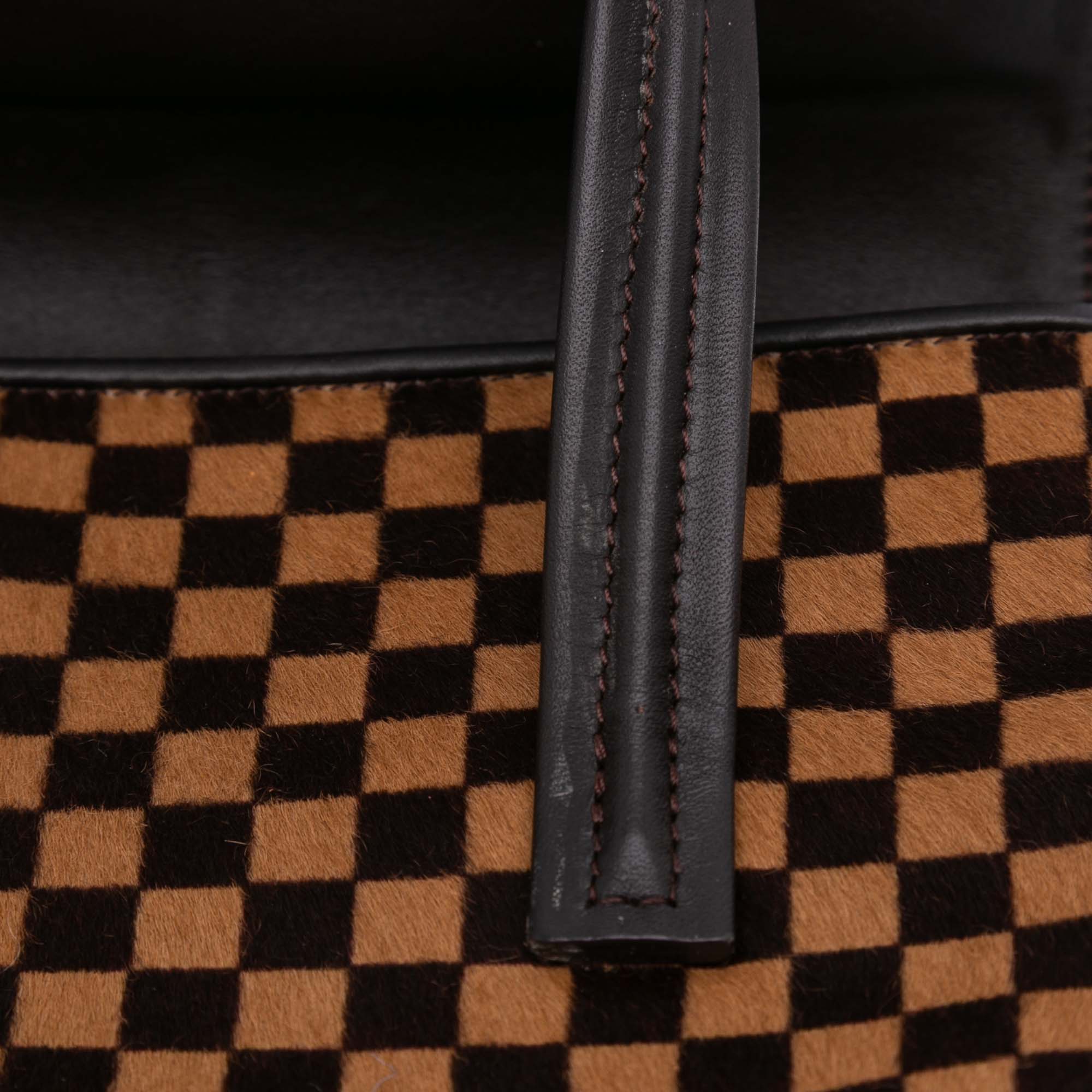 The Damer Sauvage Lionne features a damier sauvage pony hair body, flat leather handles, a front flap with tassels and a magnetic closure, an exterior back slip pocket, and an interior open pocket. Retail Price: 1108.00