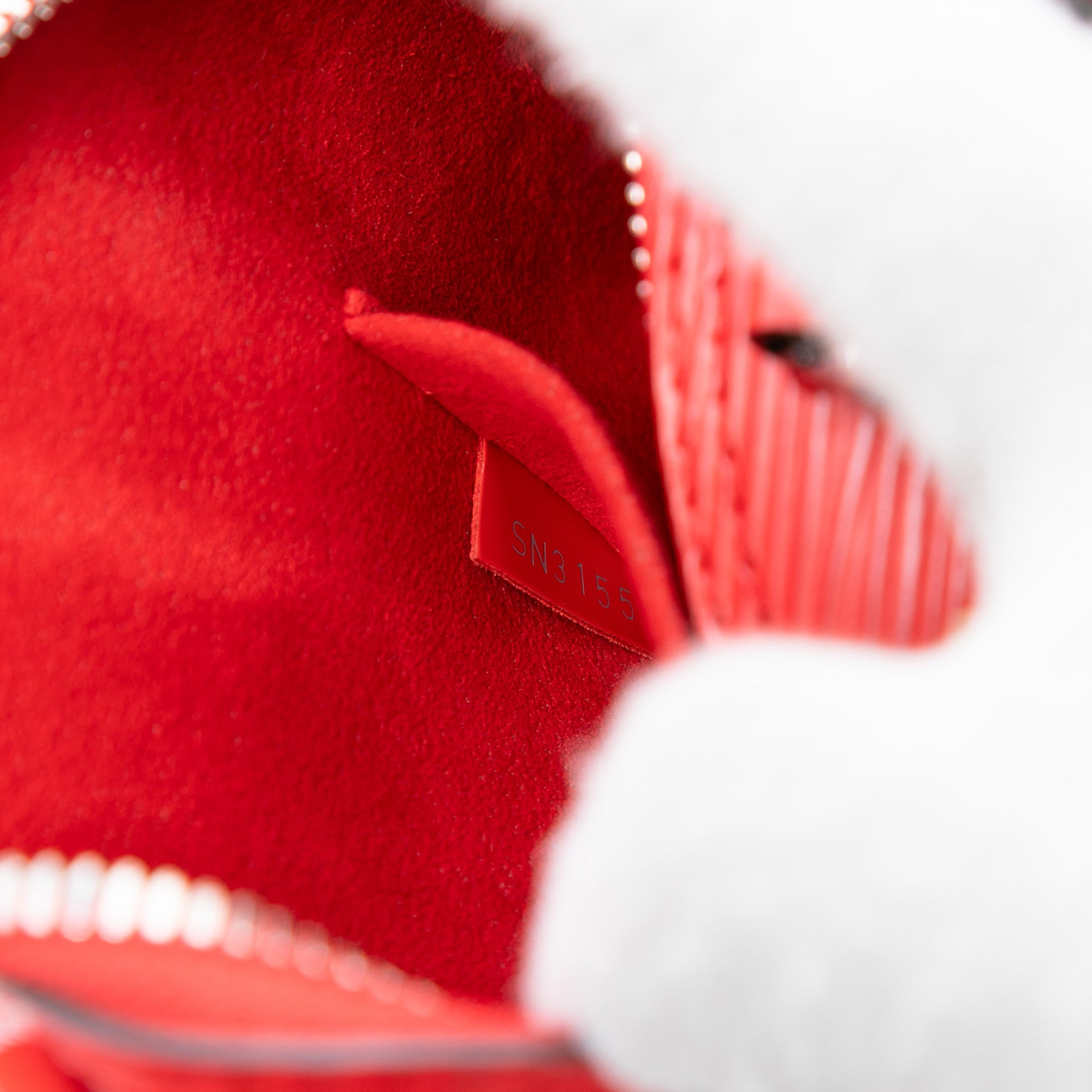 The Alma BB features an epi leather body, rolled top handles, a detachable flat leather strap, a top zip closure, and an interior slip pocket. Retail Price: 2150.00