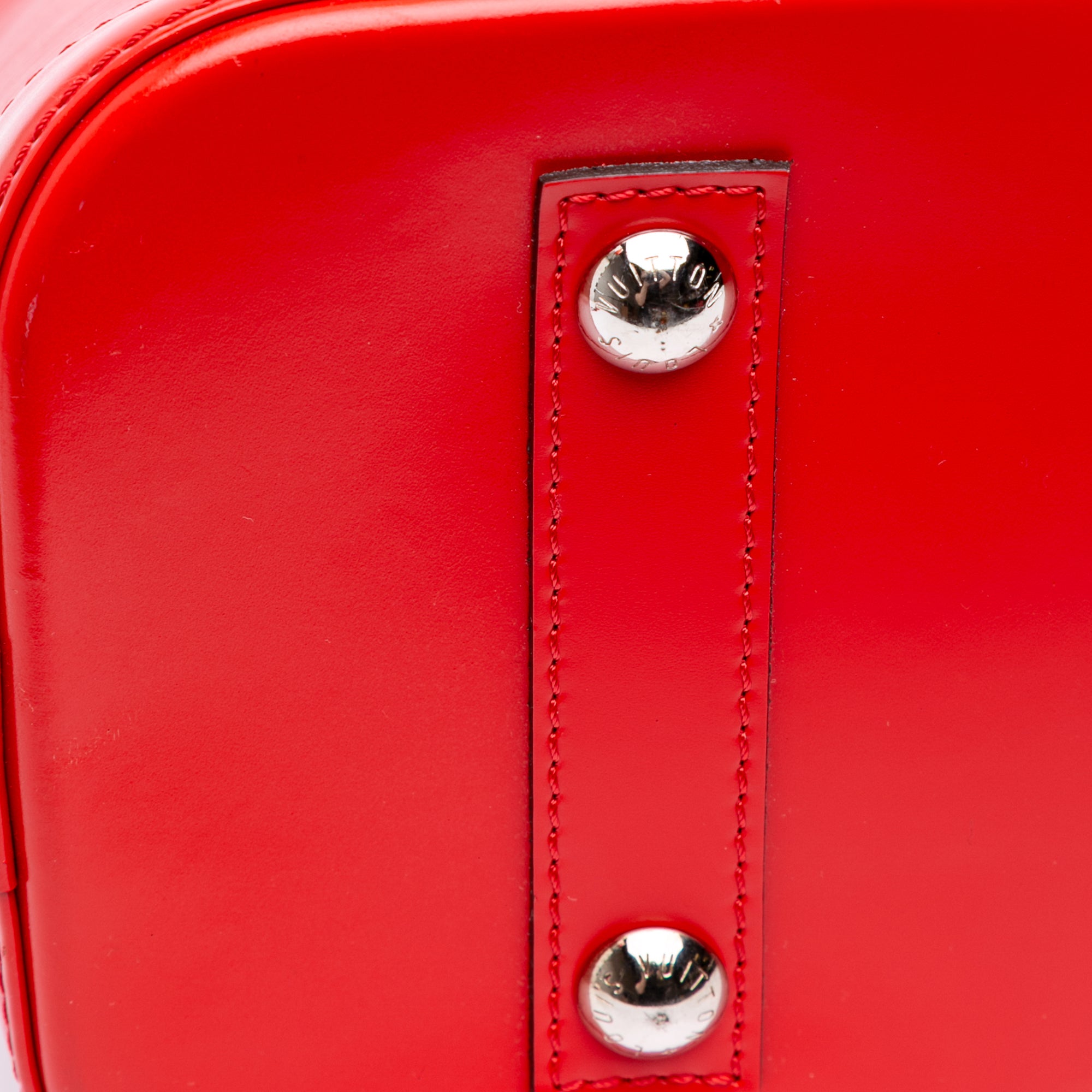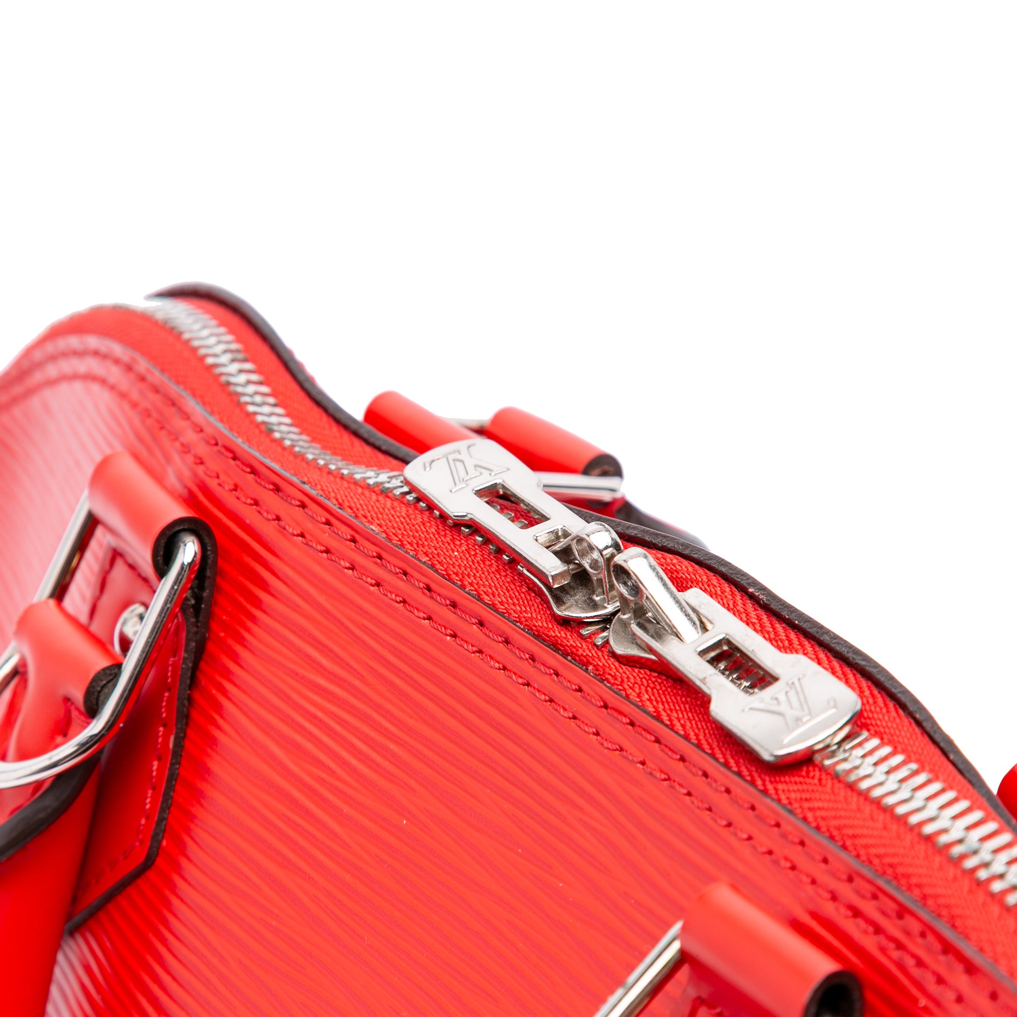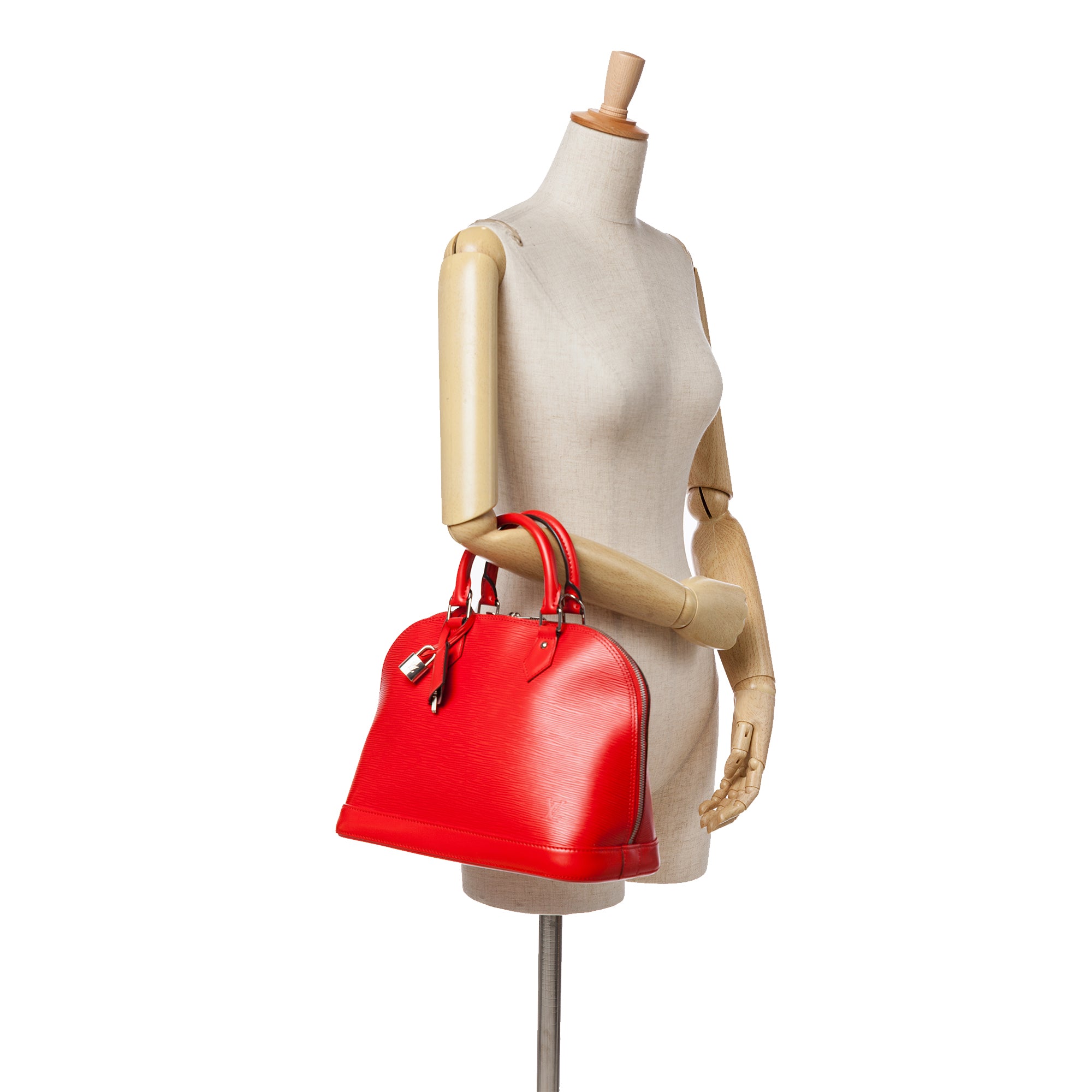 The Alma PM features an epi leather body, rolled leather handles, a top zip closure, and an interior slip pocket. Retail Price: 2650.00