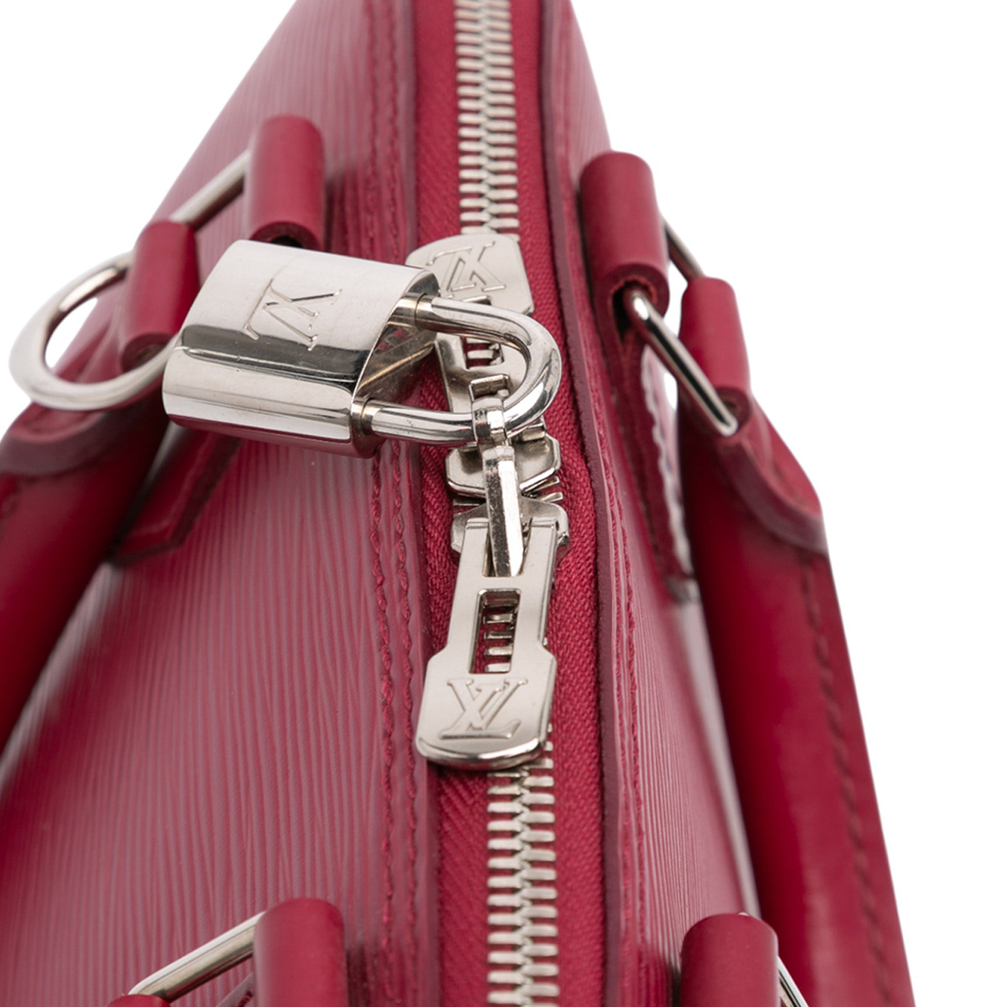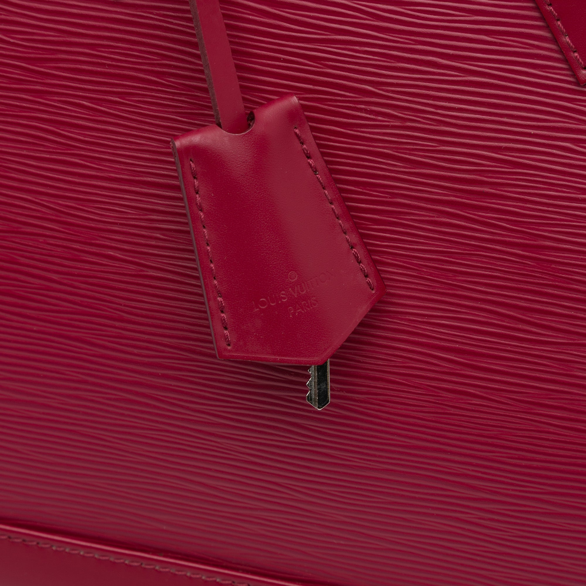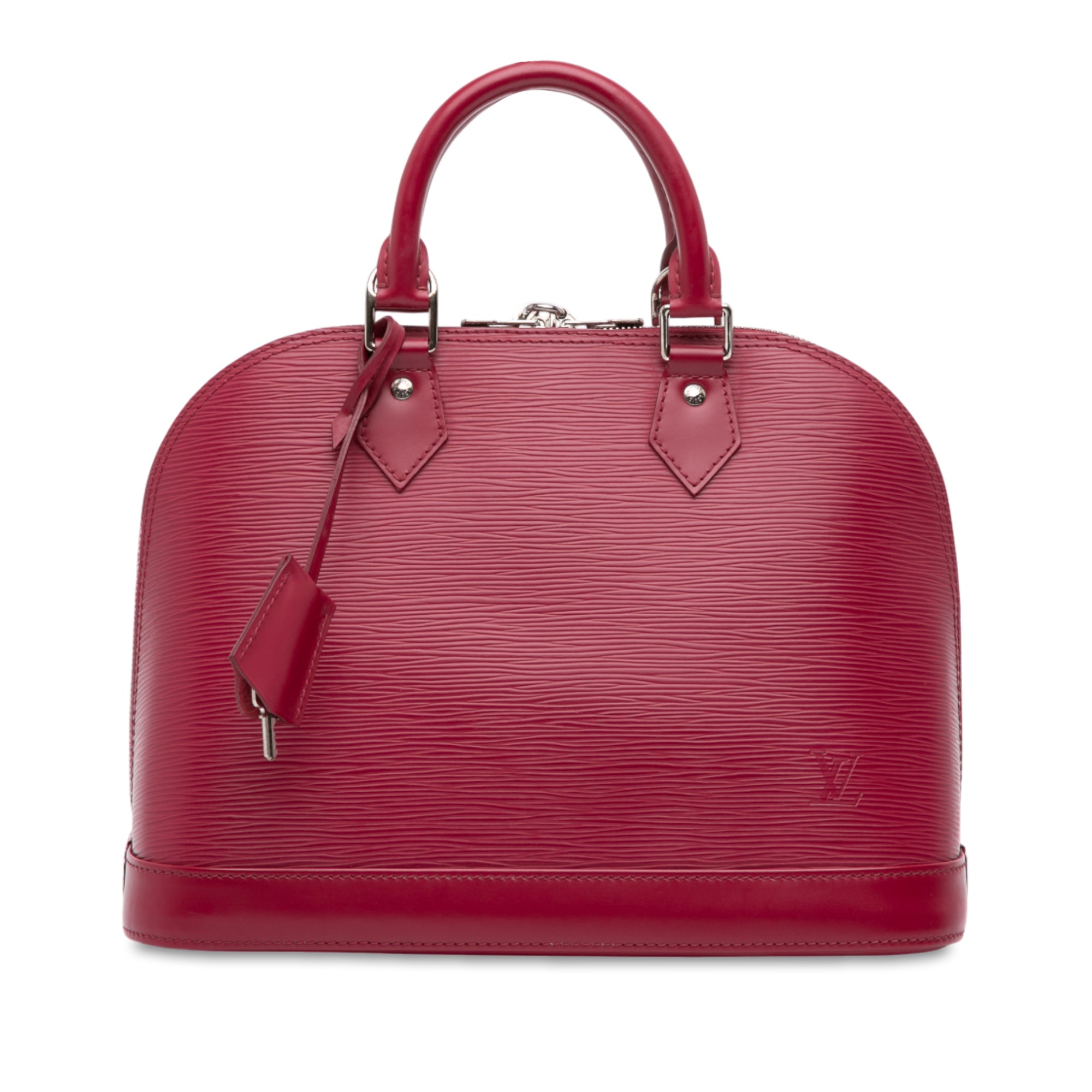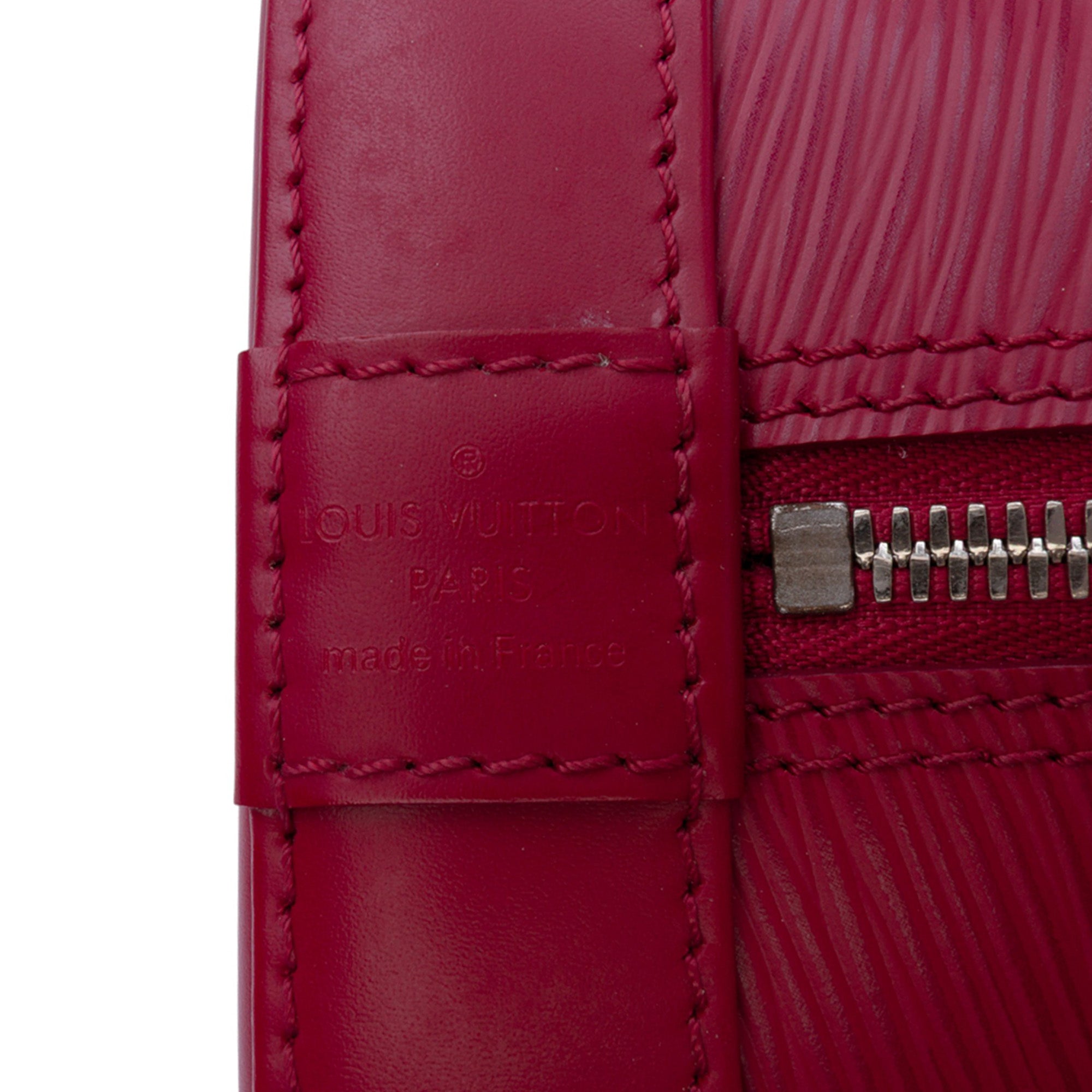 The Alma PM features an epi leather body, rolled leather handles, a top zip closure, and an interior slip pocket. Retail Price: 2650.00