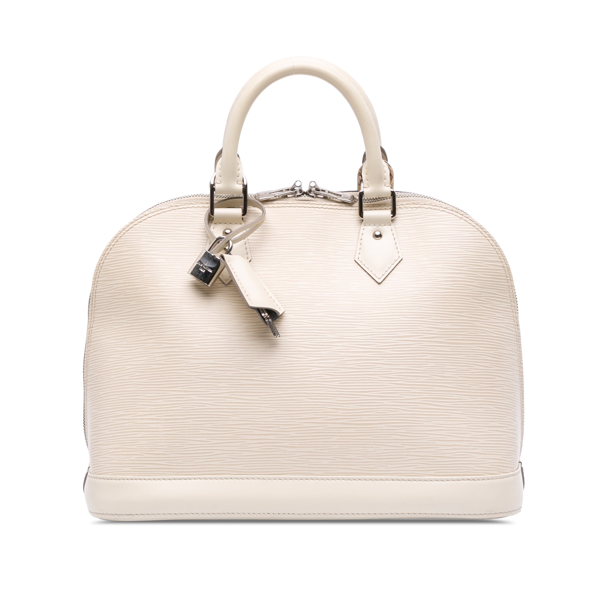 The Alma PM features an epi leather body, rolled leather handles, a top zip closure, and an interior slip pocket. Retail Price: 2620.00