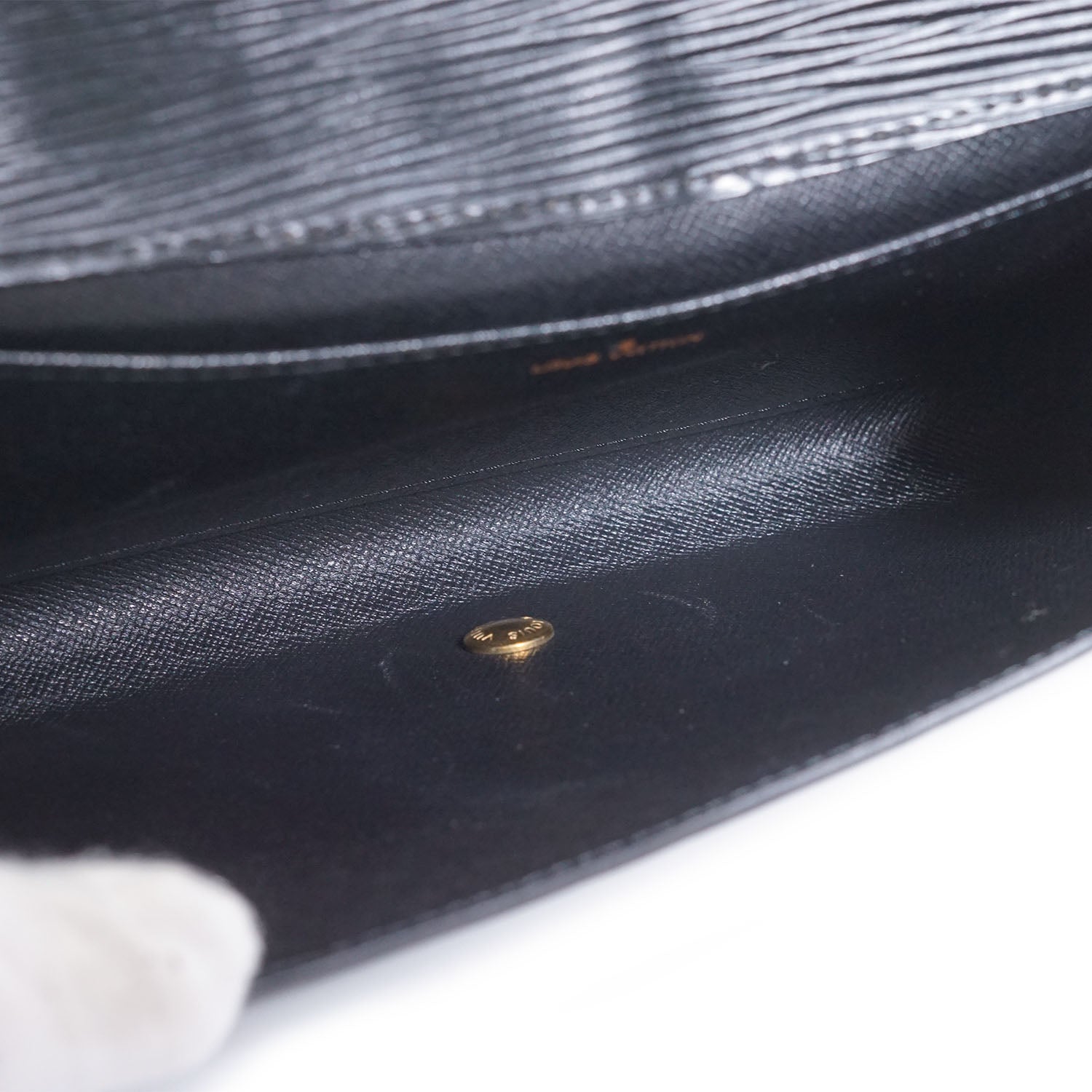 Epi Art Deco Clutch Black Epi leatherDepth: 3cmHeight: 13cmWidth: 22.5cmWidth at Top: 19cmCOutside Rank: BInside Rank: BCStain: Some white stains throughout the insideScratch: Visible scratches (peeling) throughout the inside/inside pocket/back pocketPeeling: Some peeling/powdering on the inside pocket/back pocket, some leather cracking along the front flap edgesWorn: Visible signs of wear on the inside, some signs of wear on the outsideOdor: No odor presentInclude: Dust bagSerial code: .V.I.0930SKU: 7060139